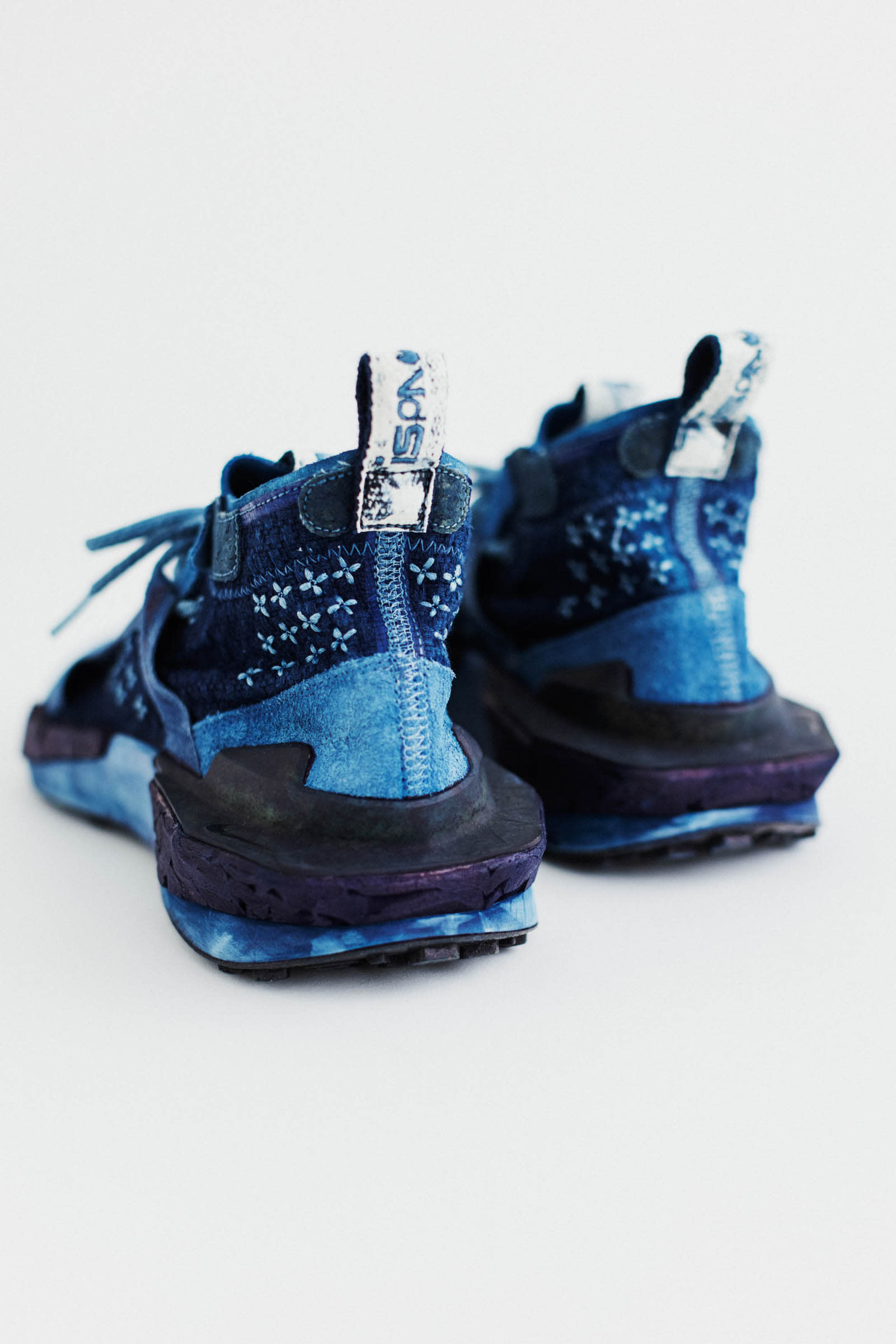 BUAISOU位於日本德島,是一家專門從事藍染工藝的團體。由於染色過程完全由手工完成,因此沒有兩雙鞋會有相同的色調或圖案。除了深藍色的外表外,其上層還繡有十字形圖案,鞋身的做舊設計讓整雙鞋更有味道。