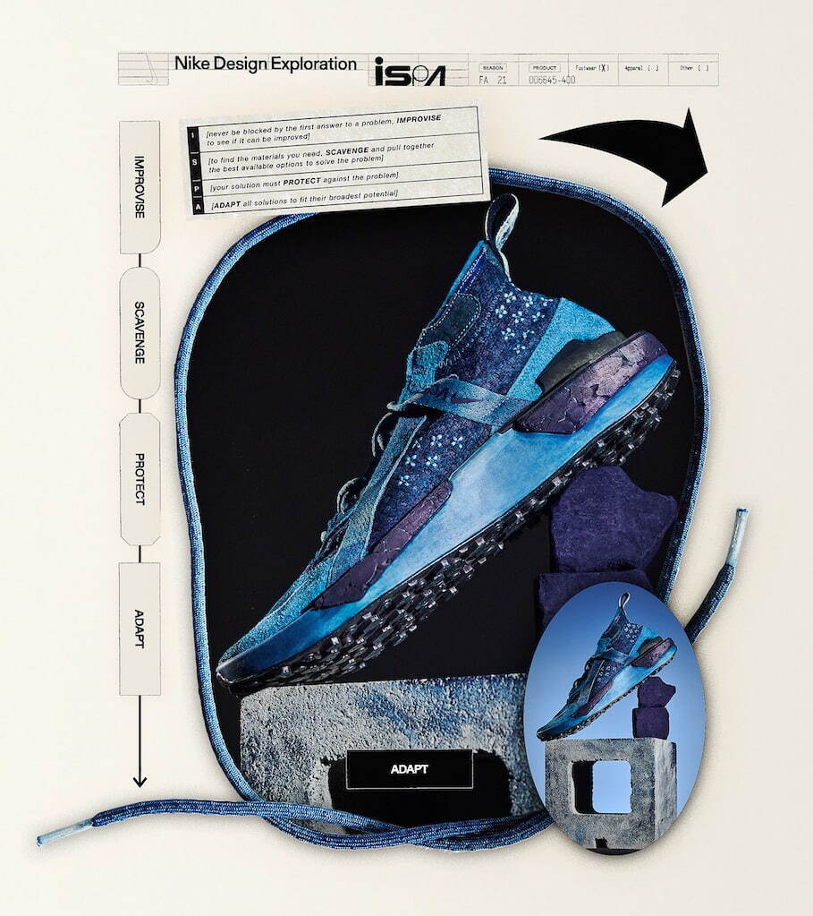 Nike的ISPA 系列,代表著“即興創作、清理、保護和適應”,通過重新構想運動鞋的輪廓來探索鞋類。