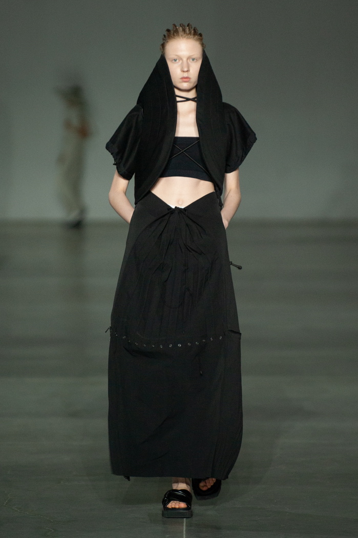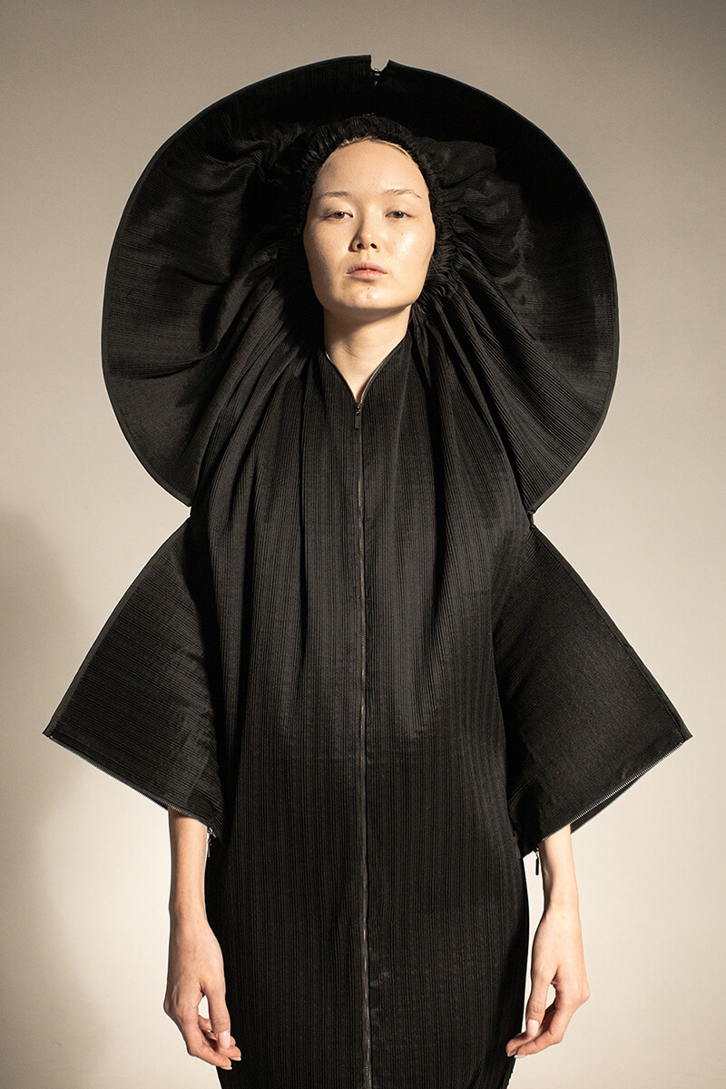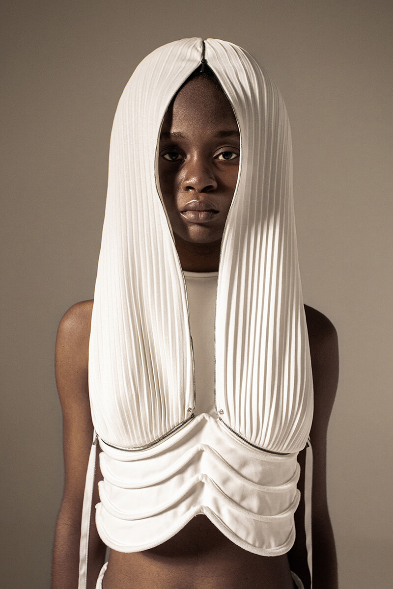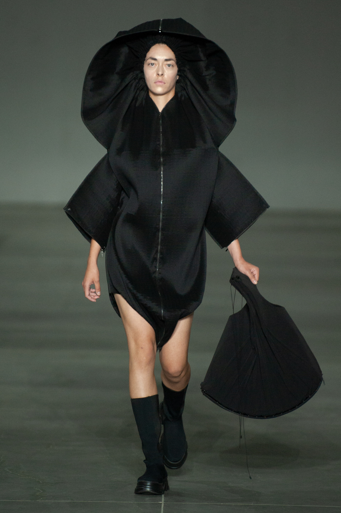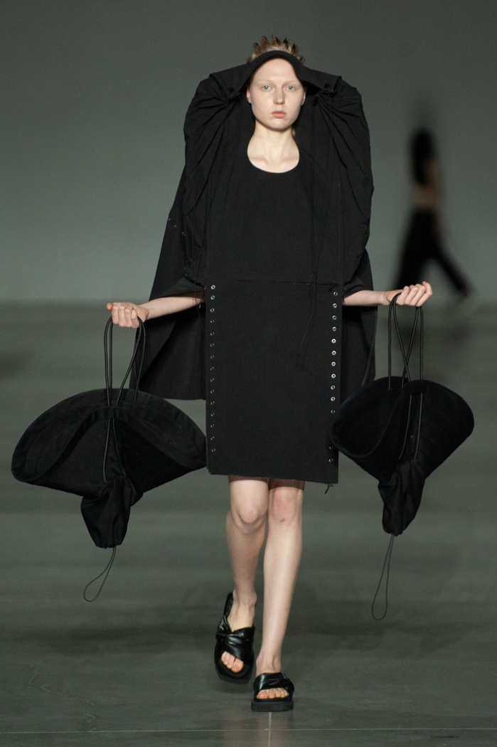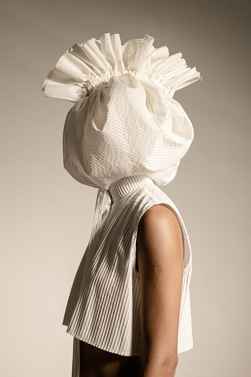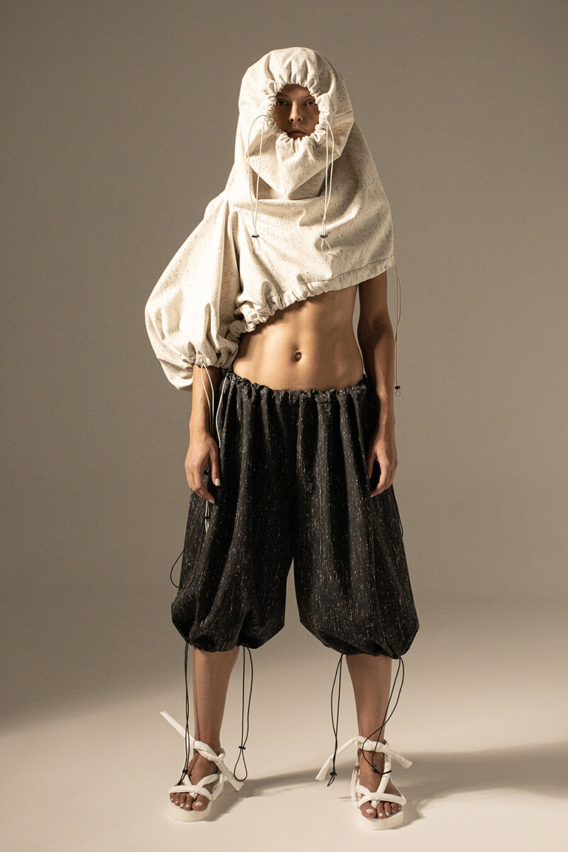 在DZHUS SS22多用途服裝和配飾系列中,Irina Dzhus諷刺了人類對外表的刻板印象和誇張樂觀的新趨勢。 DZHUS 解構適合人體的裁縫版型,並將可識別的剪裁元素融入服裝細節,最終將之轉變為包袋和頭飾。