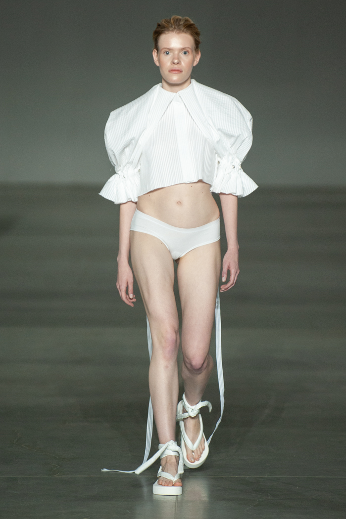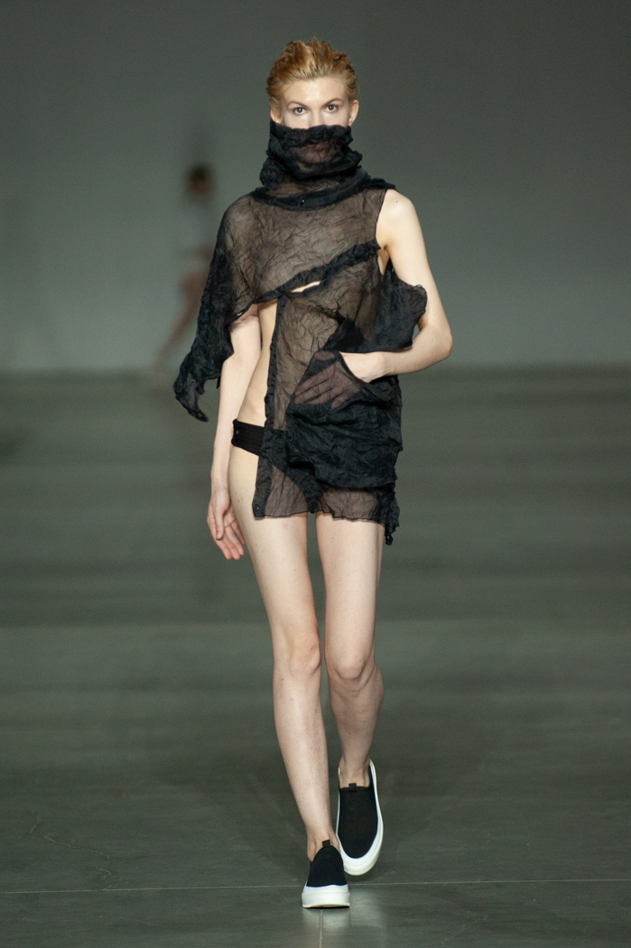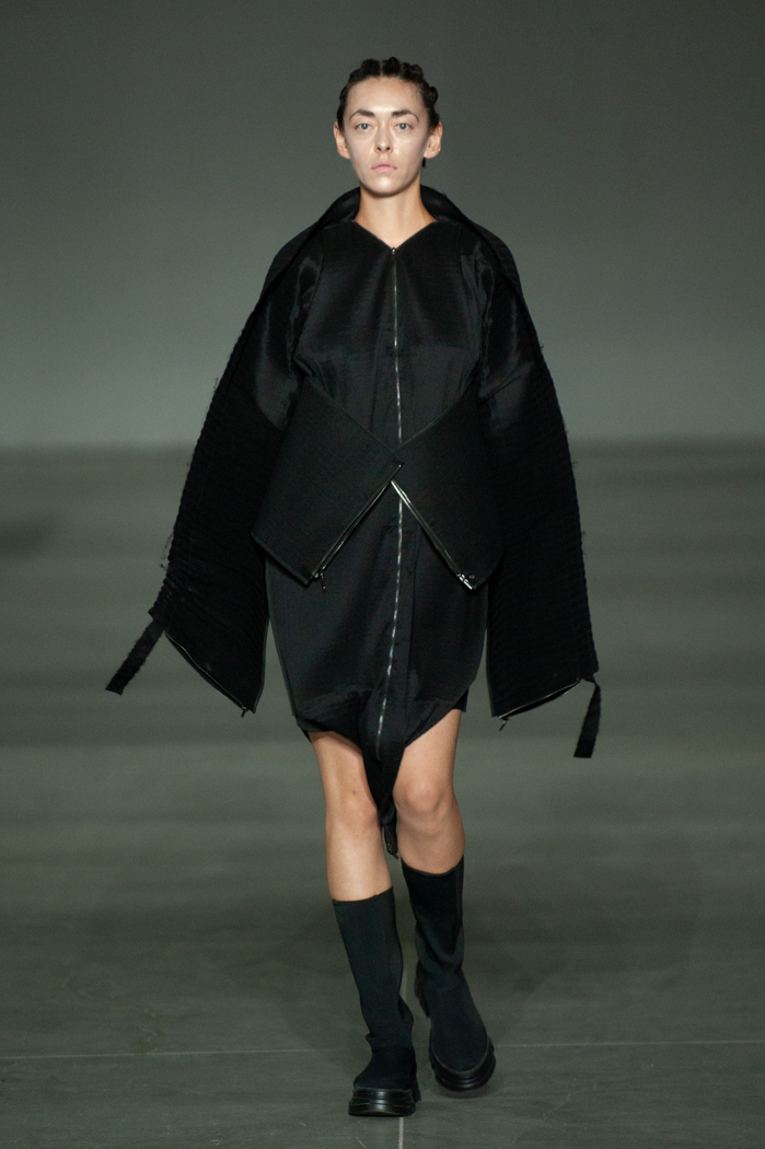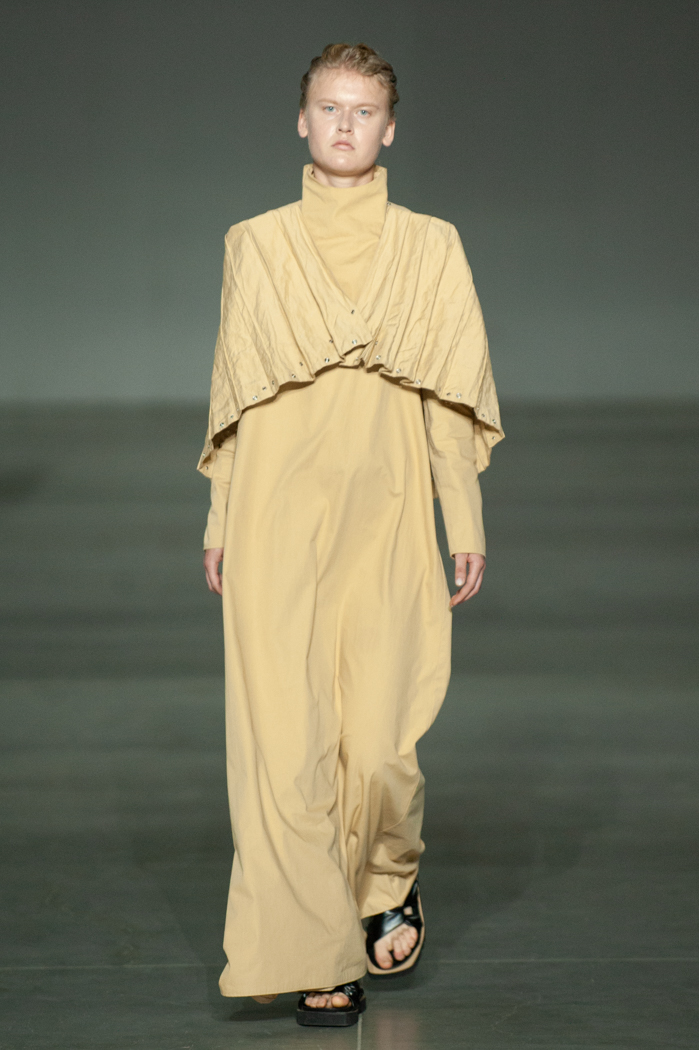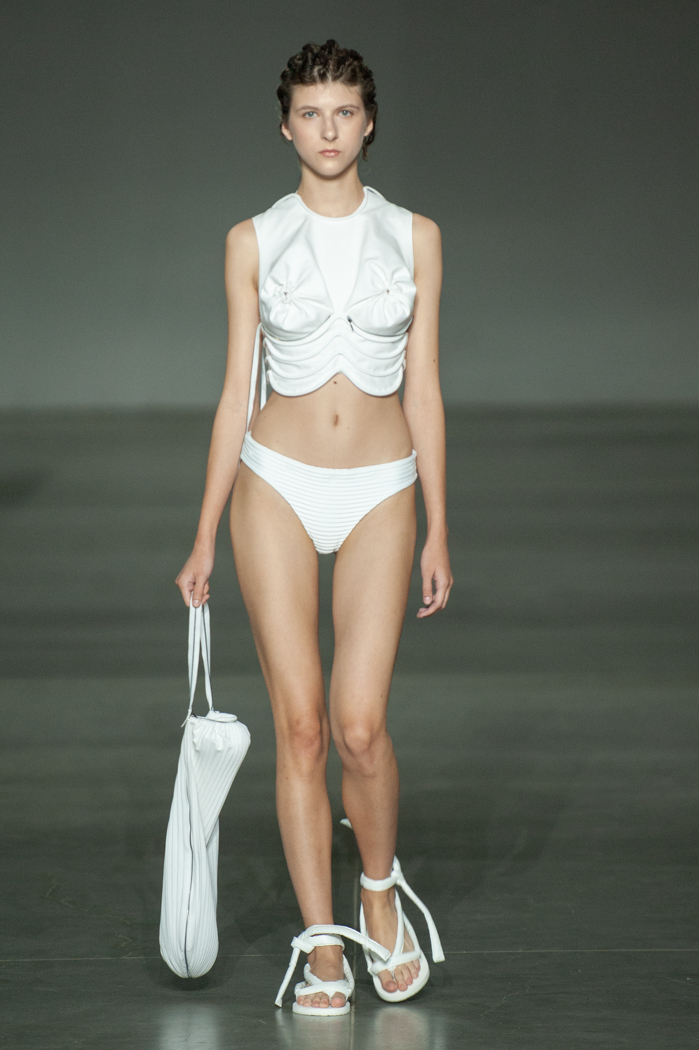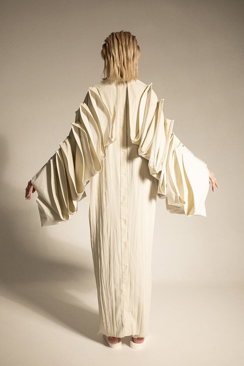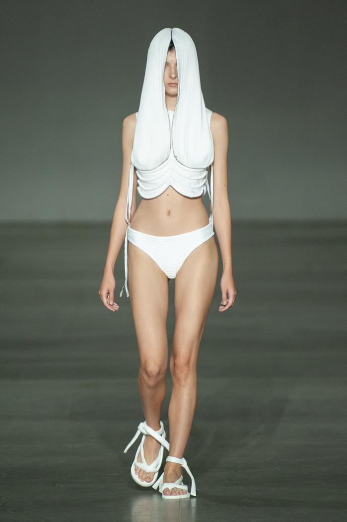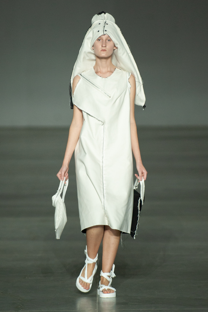在DZHUS SS22多用途服裝和配飾系列中,Irina Dzhus諷刺了人類對外表的刻板印象和誇張樂觀的新趨勢。 DZHUS 解構適合人體的裁縫版型,並將可識別的剪裁元素融入服裝細節,最終將之轉變為包袋和頭飾。