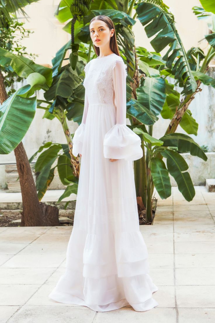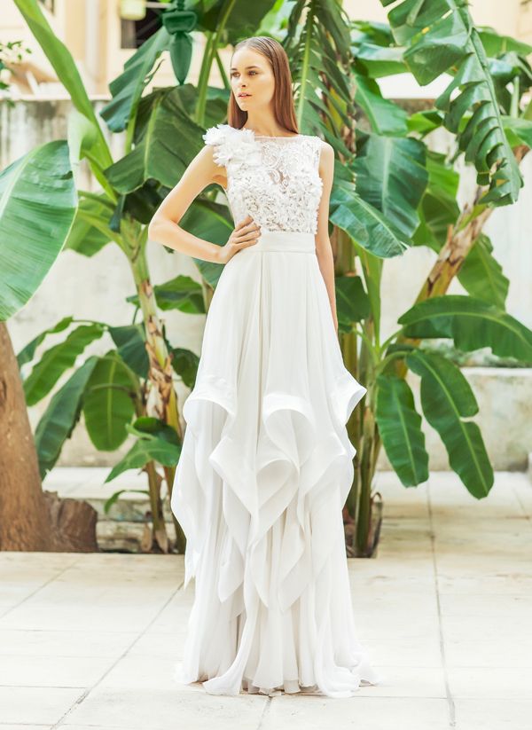 來自希臘的婚紗設計師Christos Costarellos做出來的婚紗,就是道道地地的地中海風情,波西米亞風、希臘女神優雅風