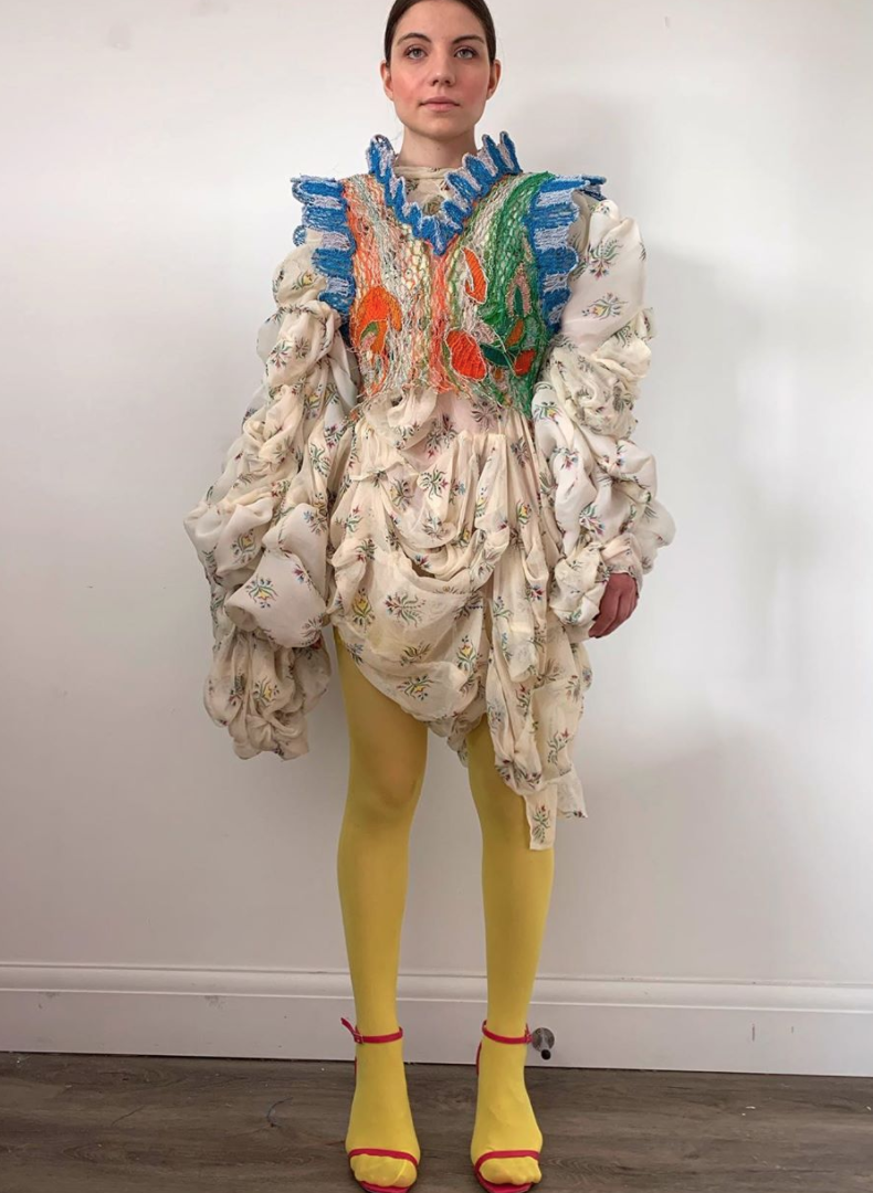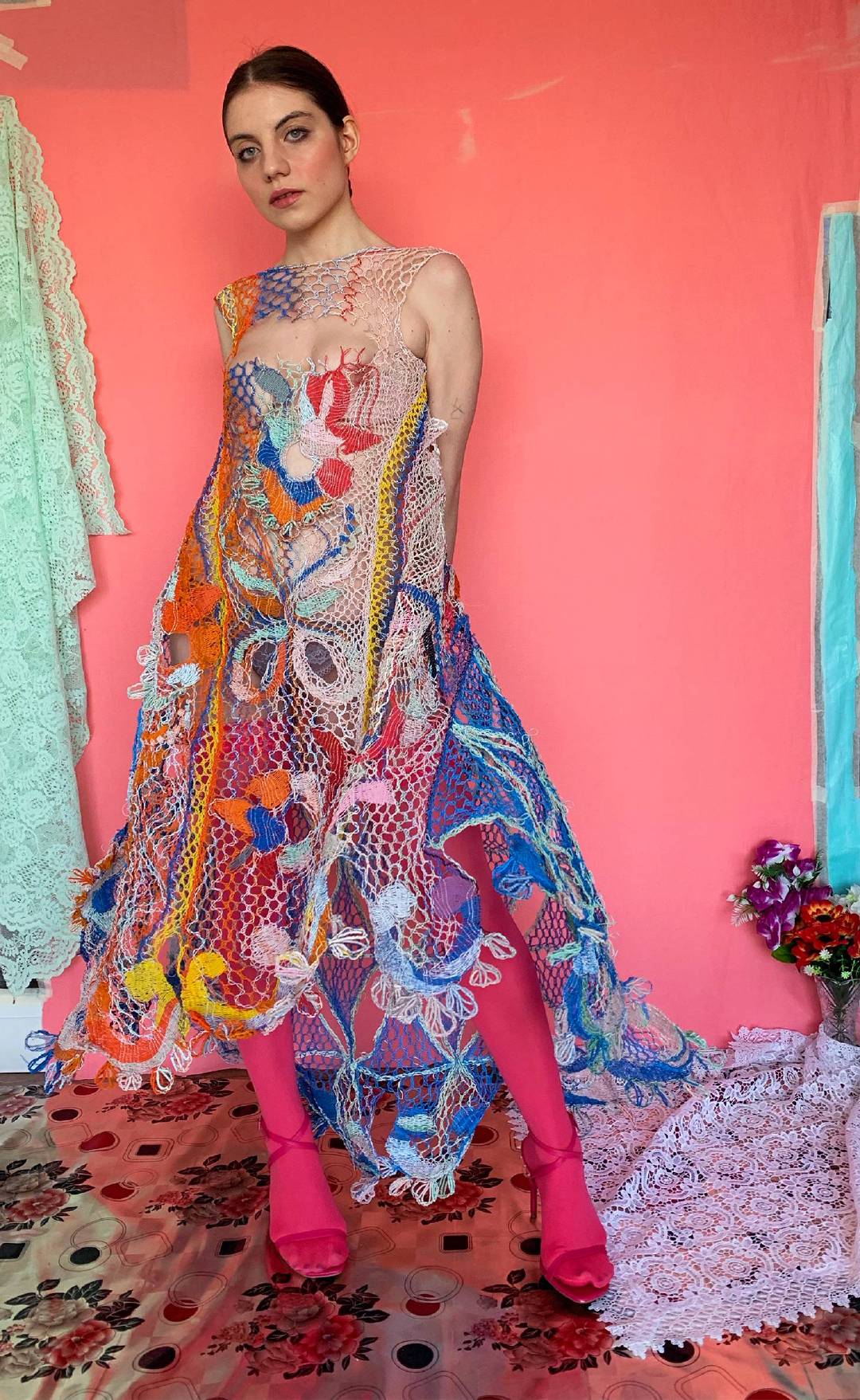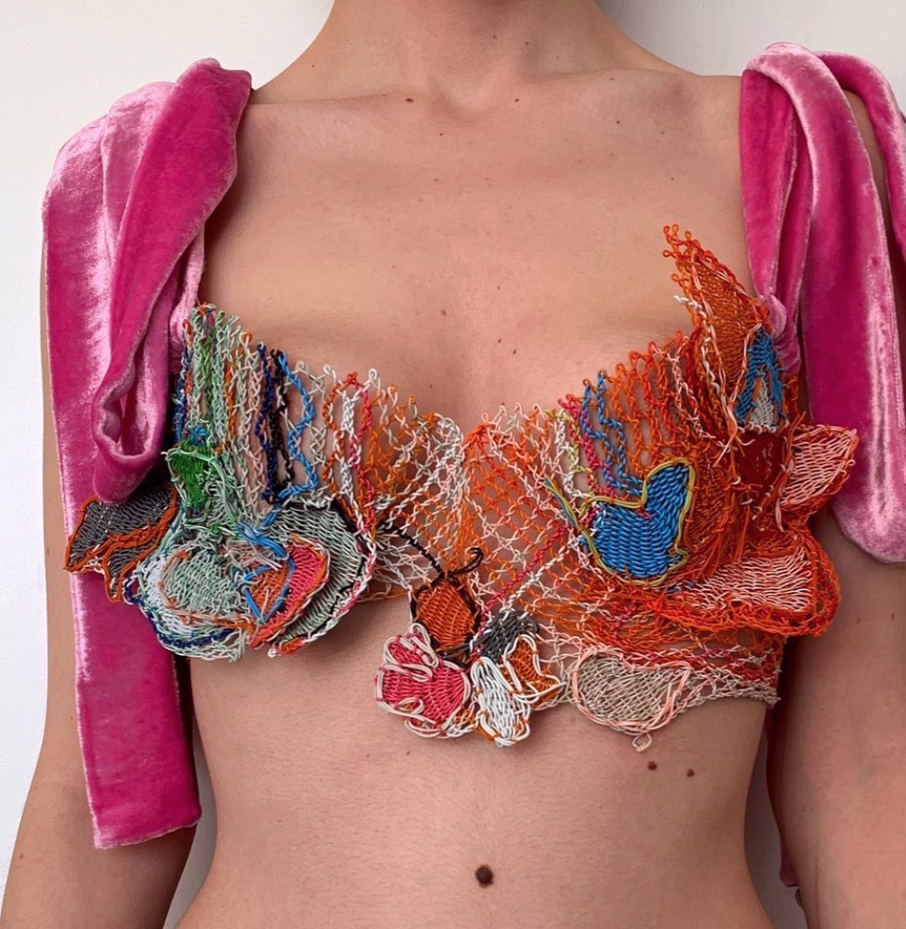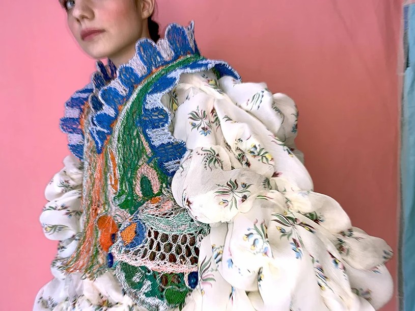 來自英國的設計師Alexandra Sipa 將廢棄電線賦予新生命,編織再造成手工花邊蕾斯並將之融入創作系列"Romanian camouflage",將可持續性精神帶入服裝中,積極實現生態永續的理念。 傳遞知識的 #副料大學