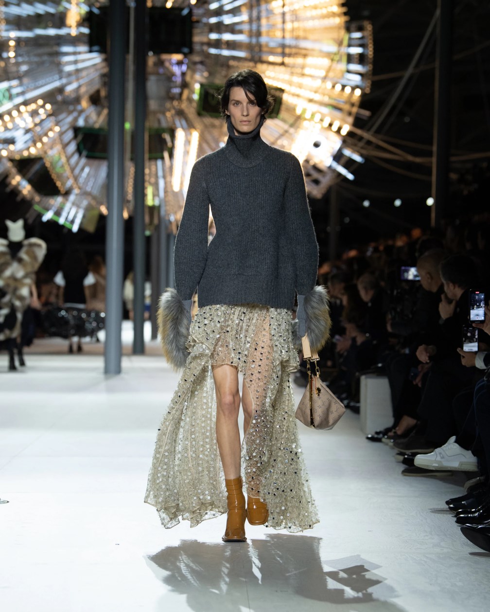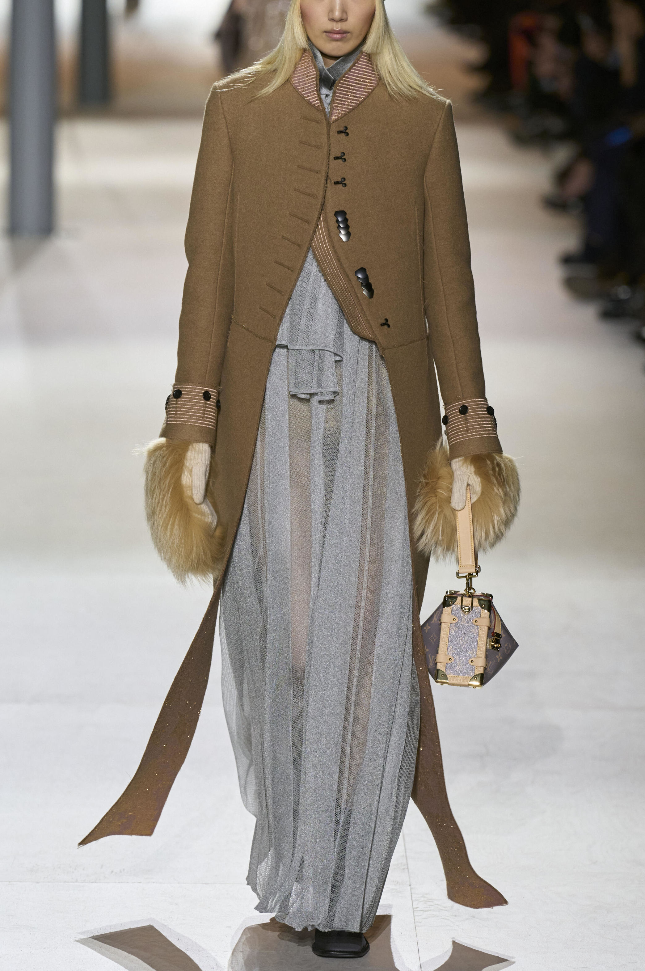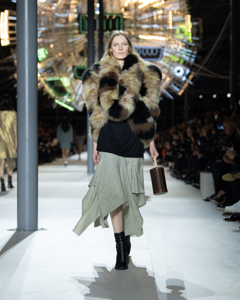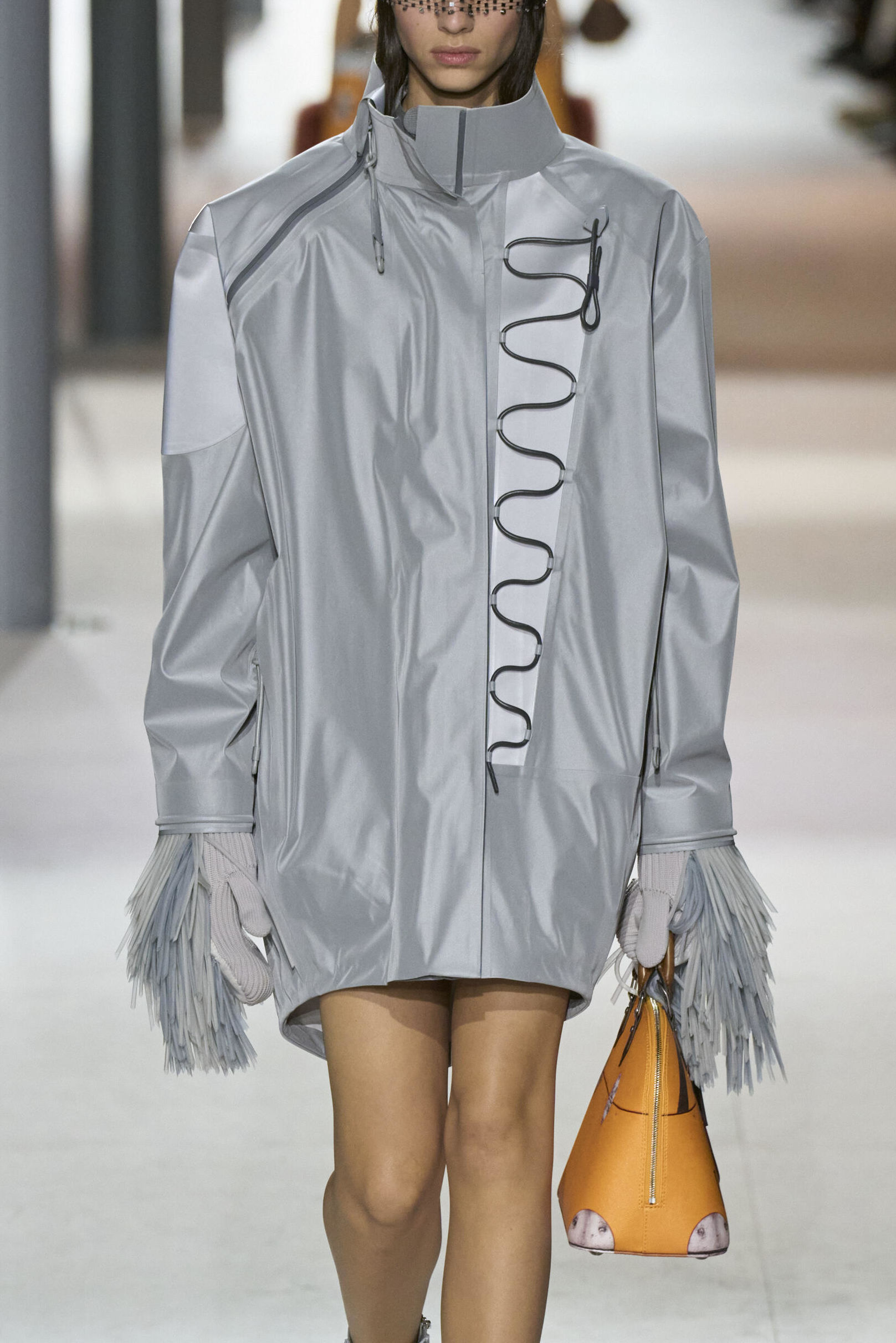 Louis Vuitton 2024 秋冬系列呈現出濃厚的未來主義感,以品牌標誌為靈感,運用圖形圖案、飾有大量金屬線的光澤刺繡、浮誇的羽毛裝飾和精緻前衛的配件,結合出一場致敬過去、展望未來的精彩演出。