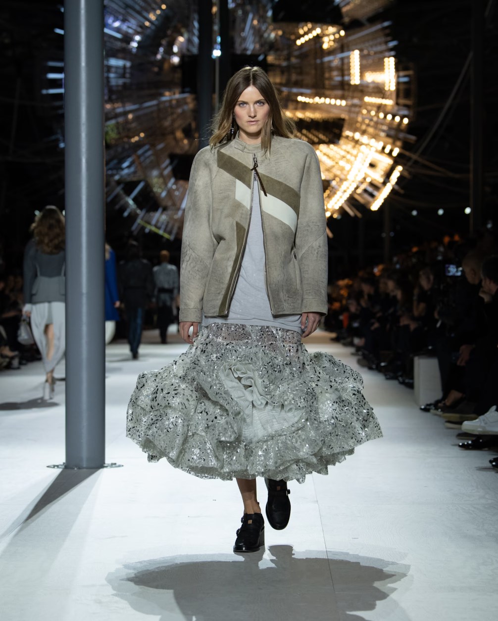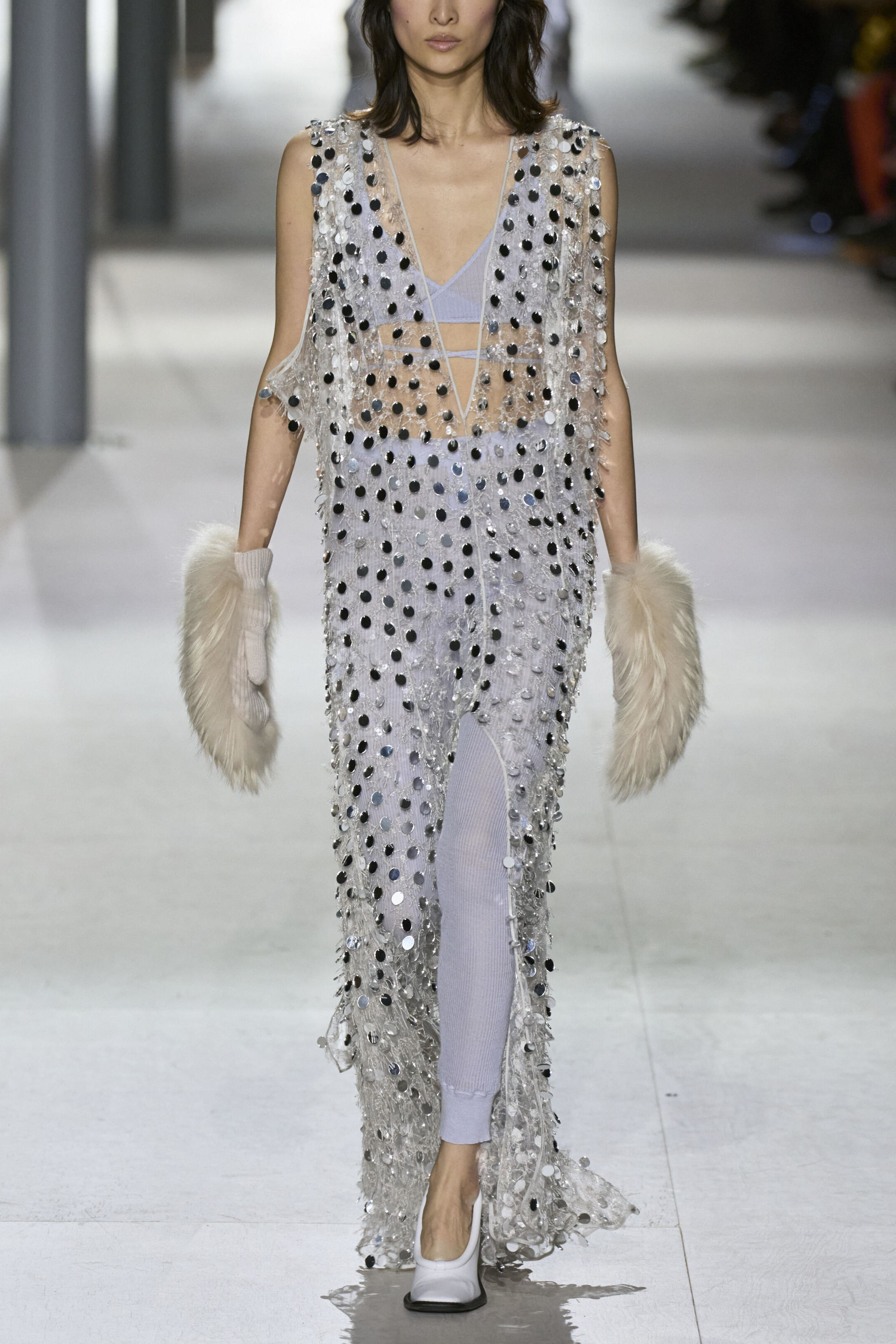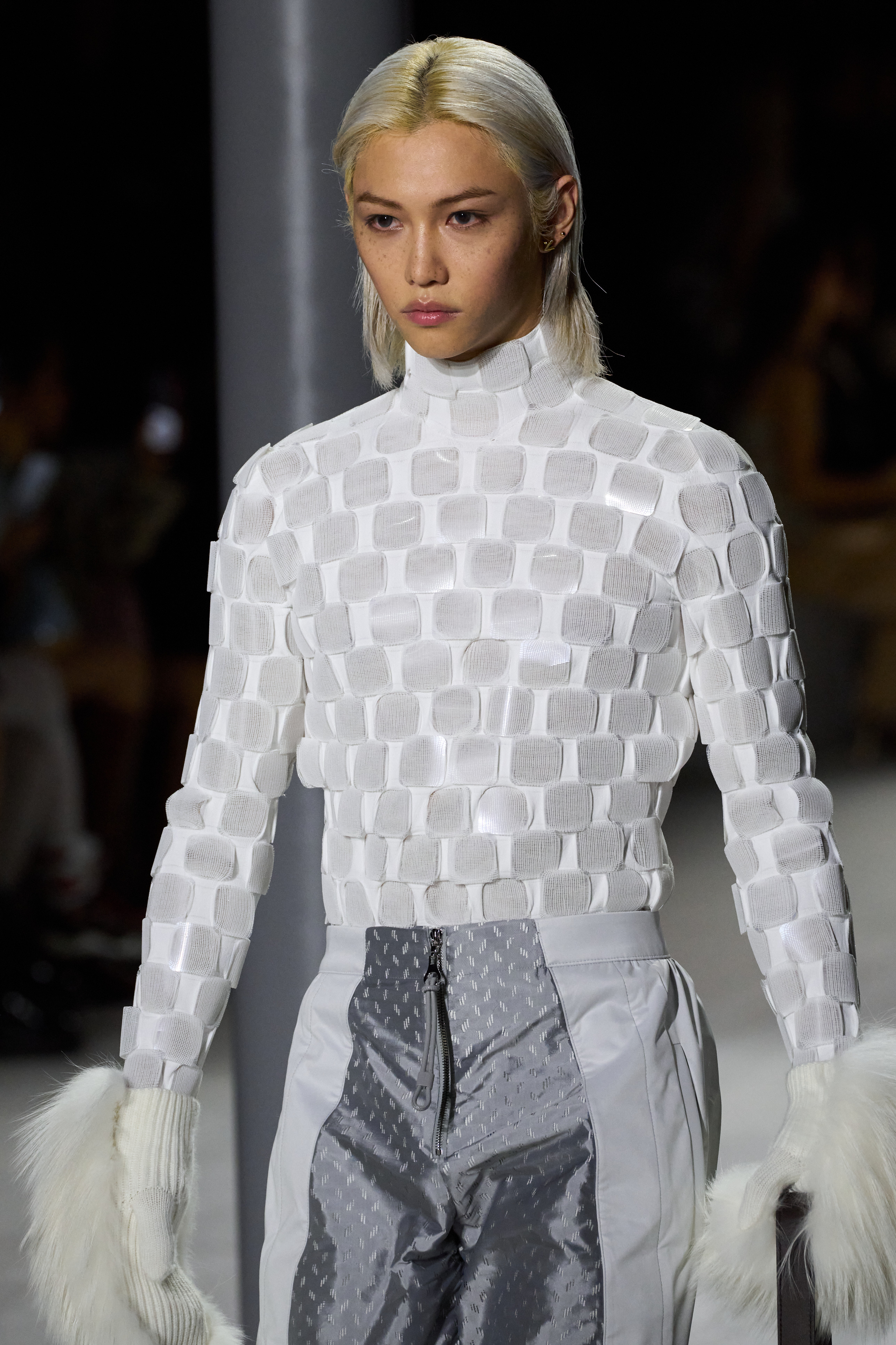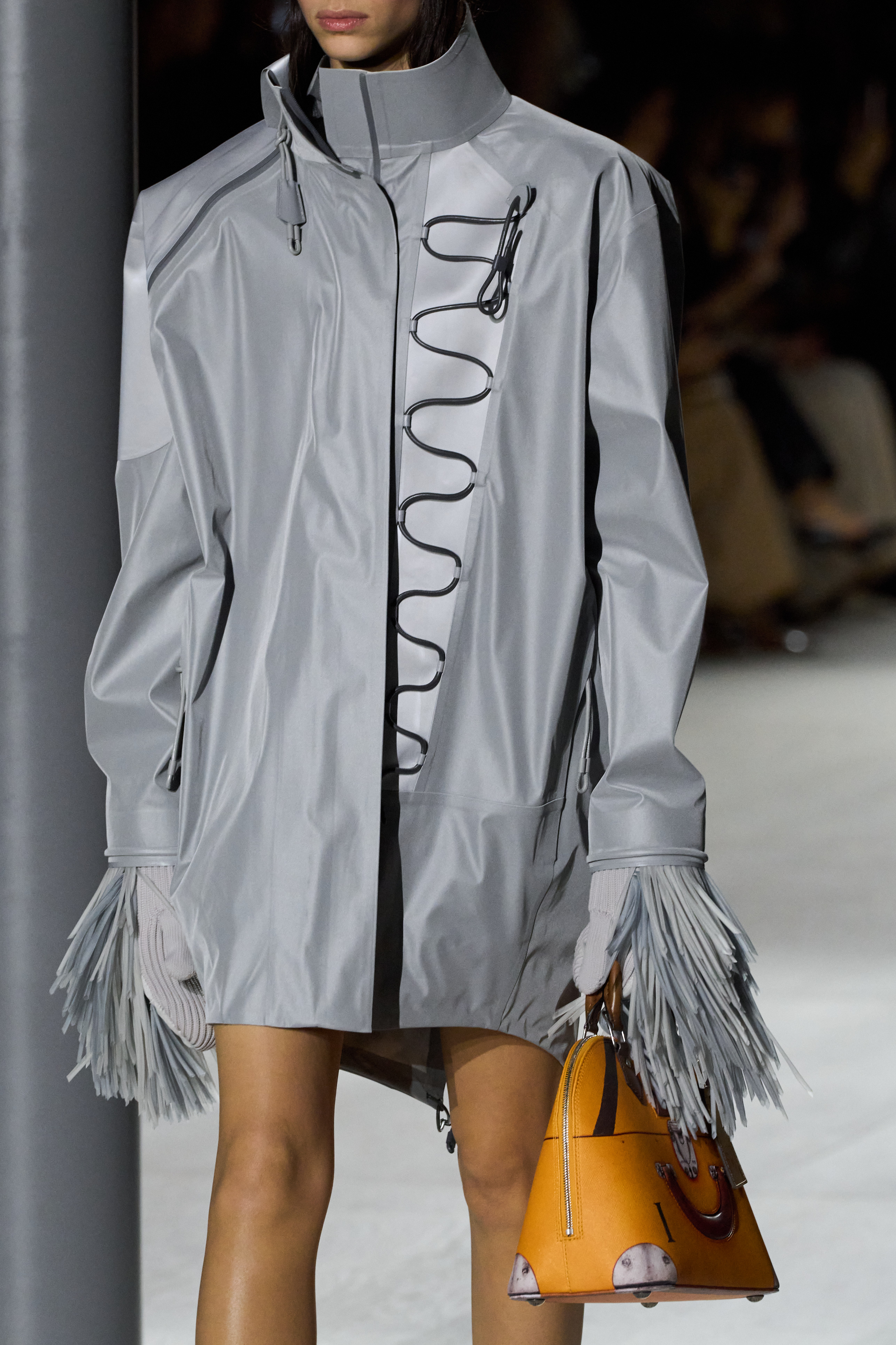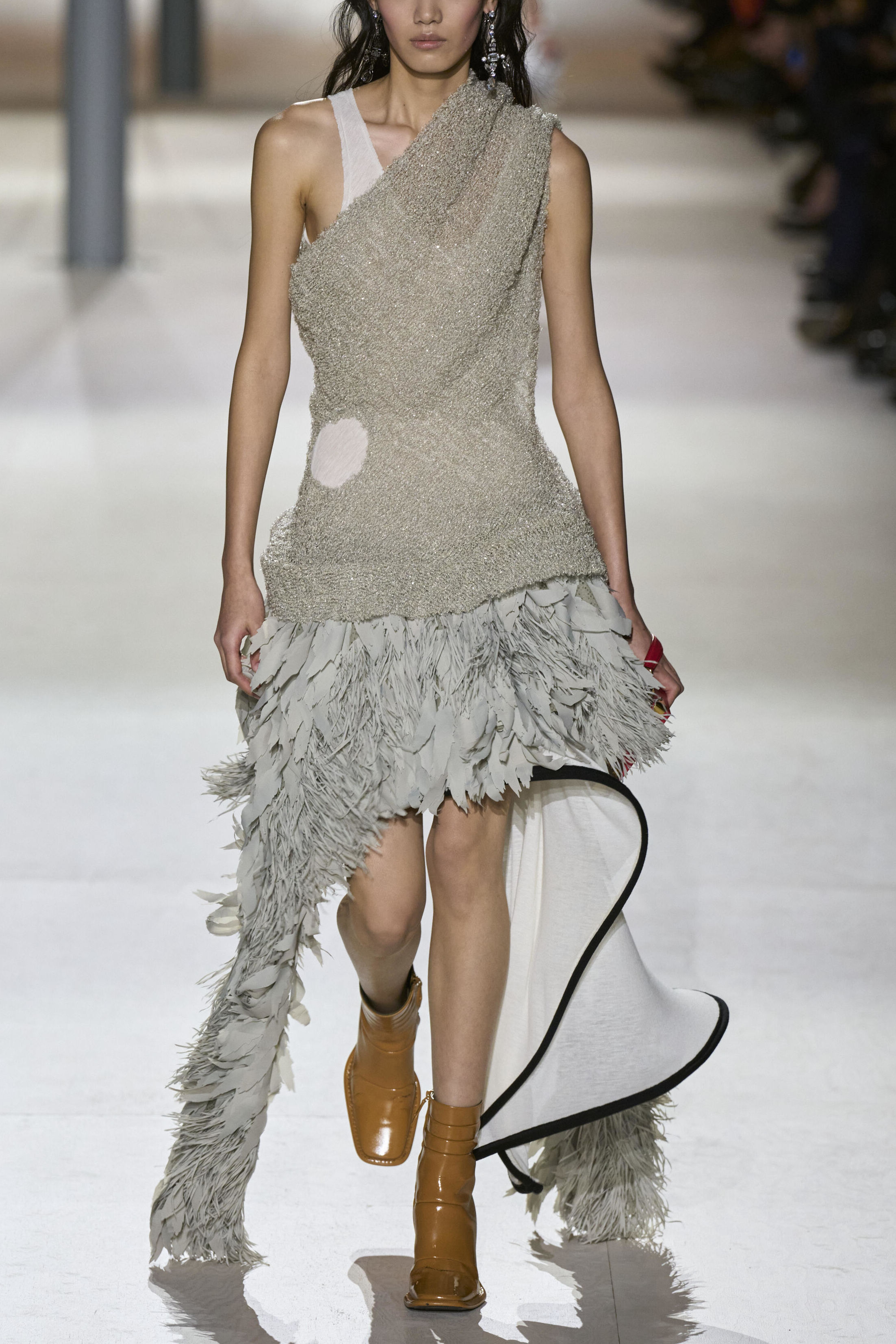 Louis Vuitton 2024 秋冬系列呈現出濃厚的未來主義感,以品牌標誌為靈感,運用圖形圖案、飾有大量金屬線的光澤刺繡、浮誇的羽毛裝飾和精緻前衛的配件,結合出一場致敬過去、展望未來的精彩演出。