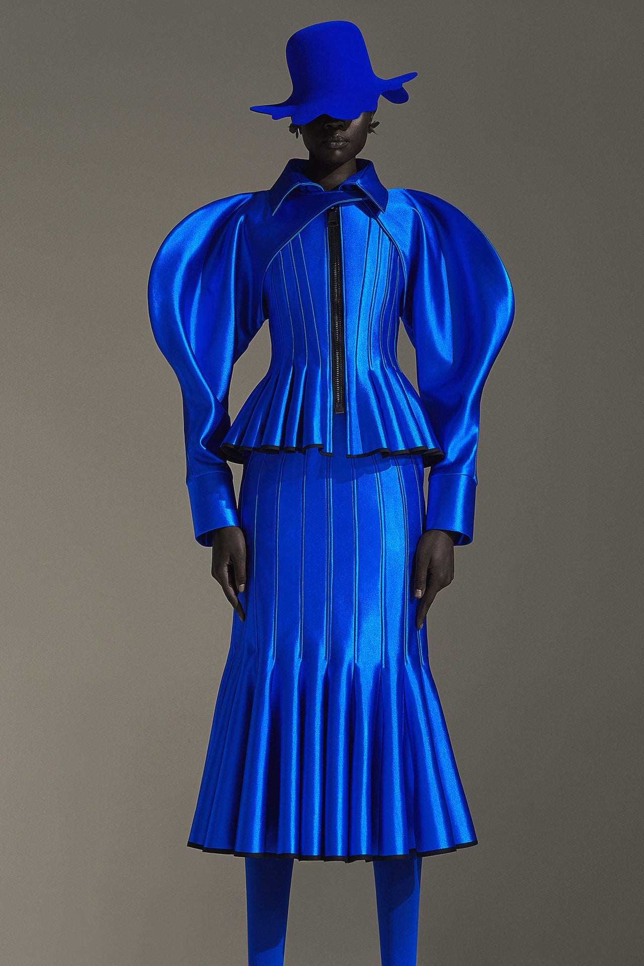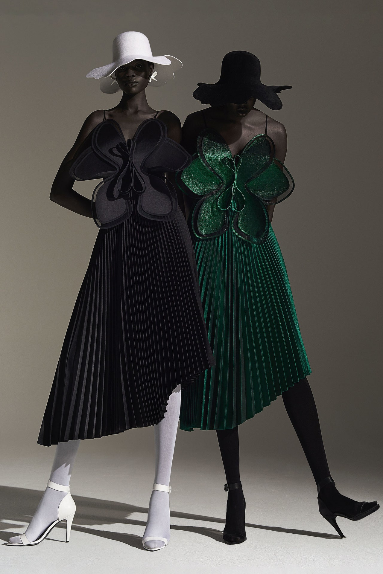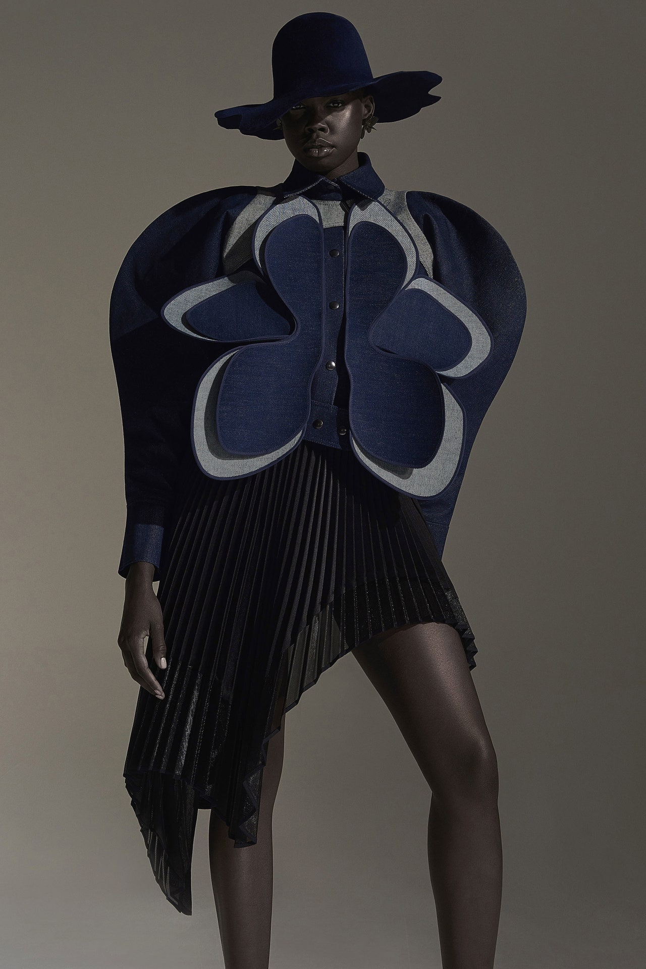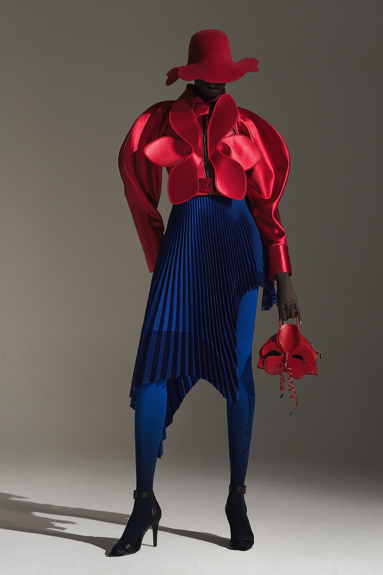 特殊的立體結構如花綻放,層疊百摺蕩漾出波紋效果。 波點、條紋印花交錯和傘型波浪結構的融合,形成視覺錯視的微妙迷幻感。 傳遞知識的 #副料大學