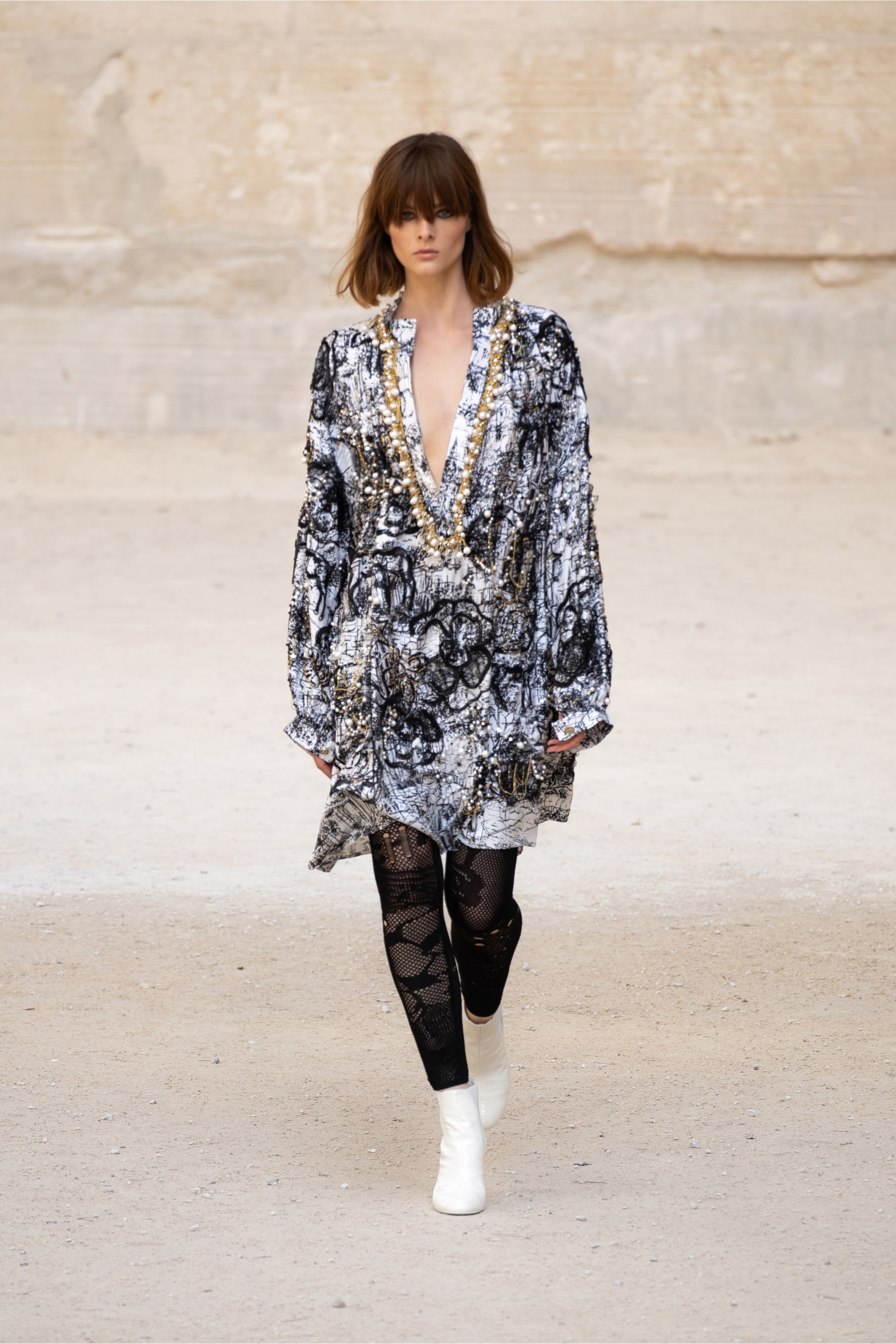 Chanel 2022 Resort 帶我們來到南法普羅旺斯的光影採石場,身著經典黑白的模特們穿梭其中,與天然的石灰岩地形共同創造了屬於它們的光影拼圖。而這裡同時也是尚考克多當初拍攝《奧菲的遺言 Testament of Orpheus》的地方。