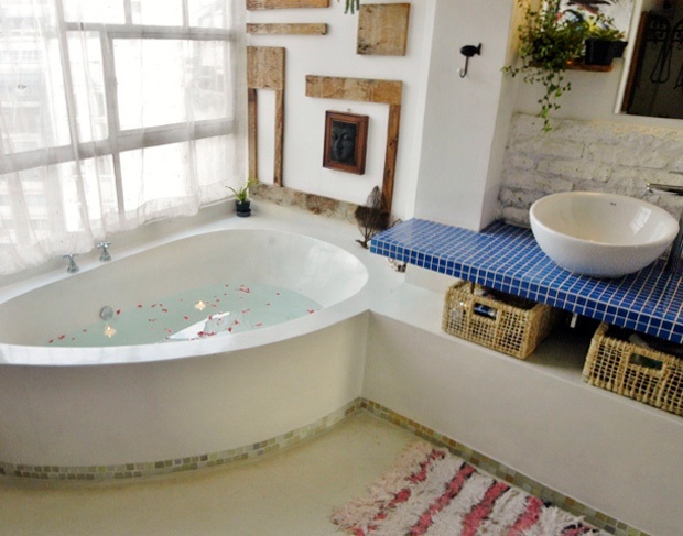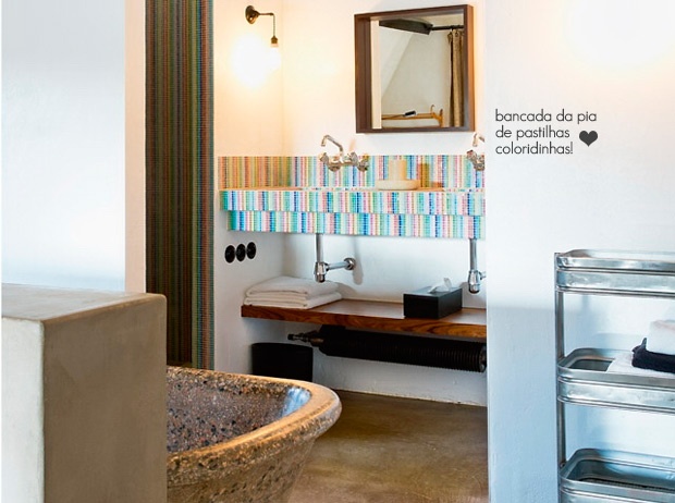Uma sala de banho bacaninha e simpática torna o dia mais agradável