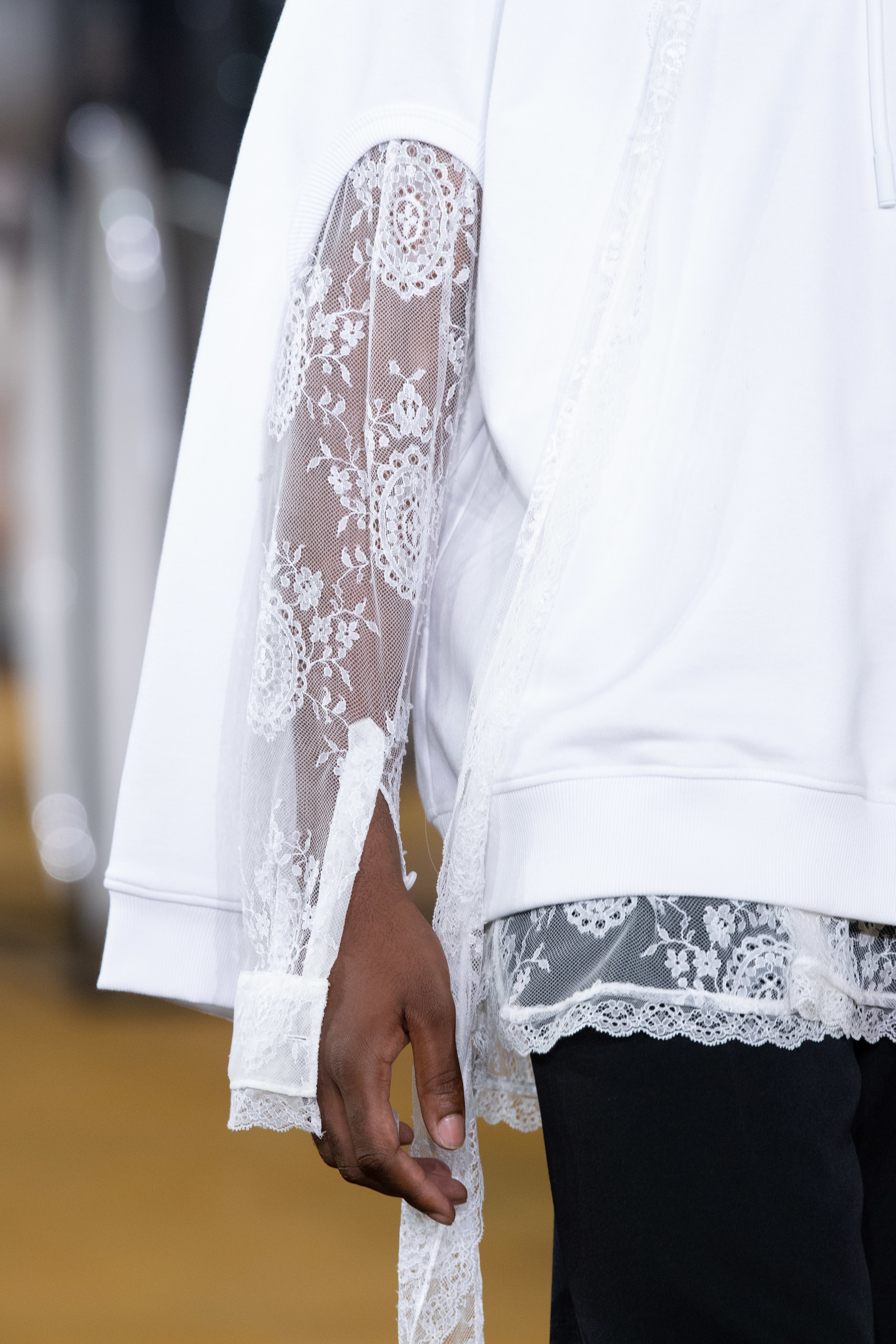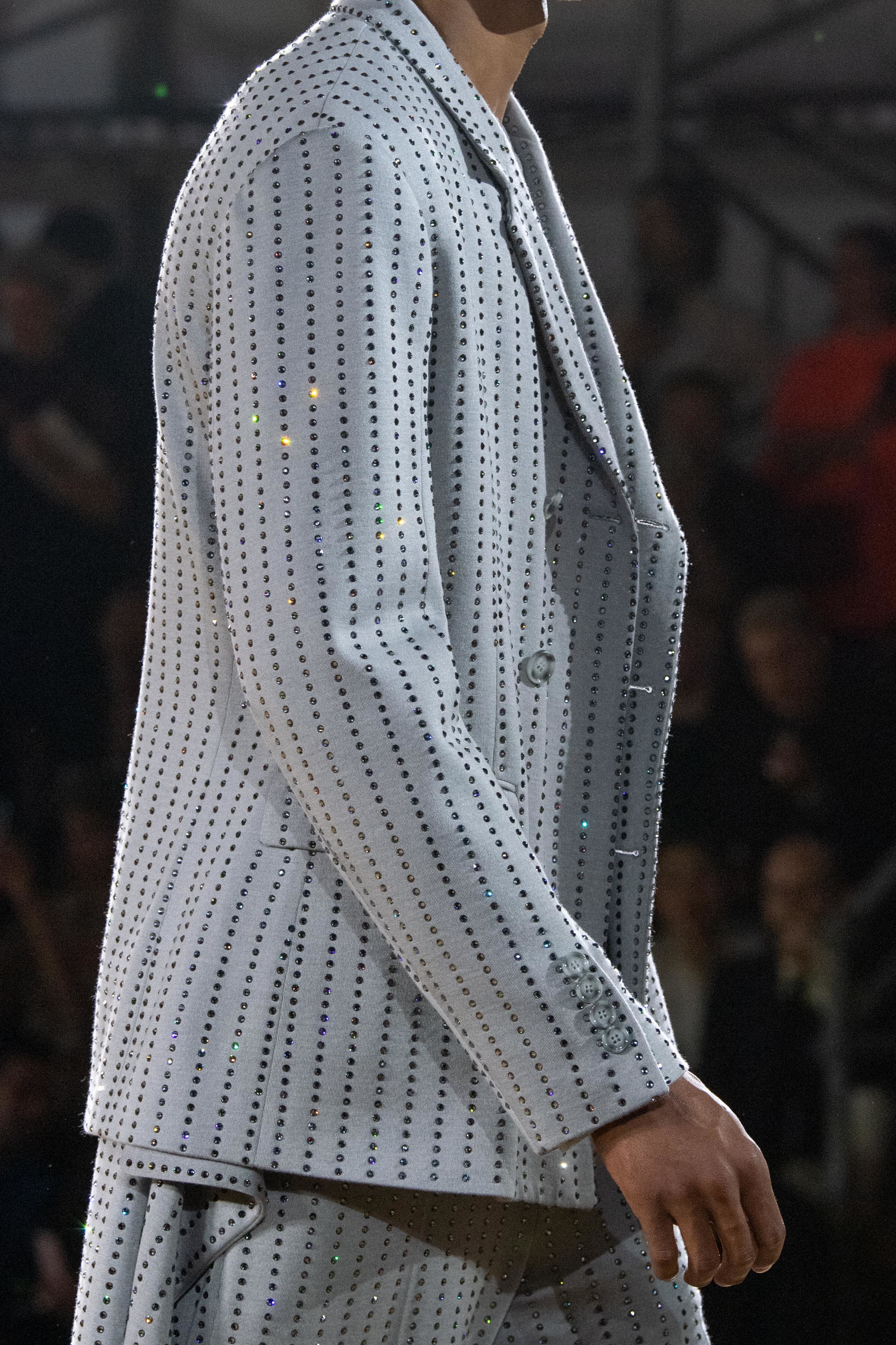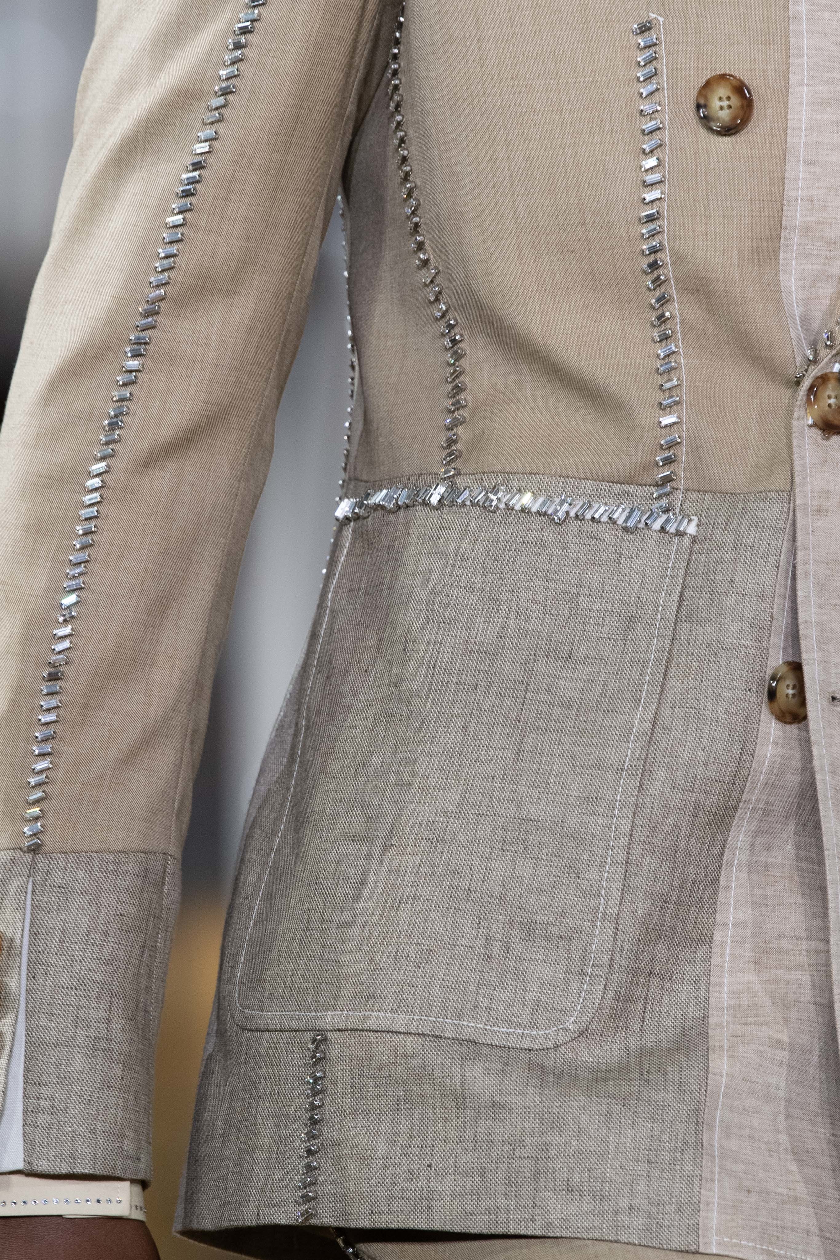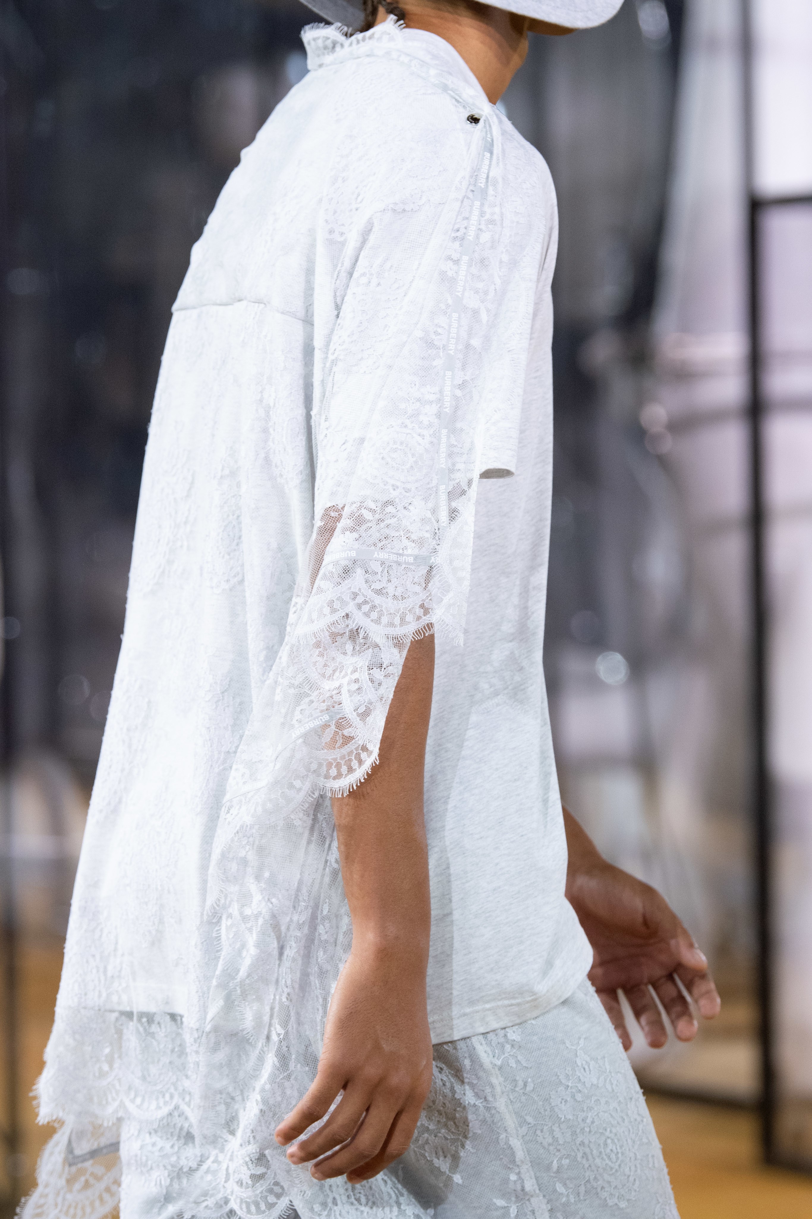 Burberry 2020SS 出現了幾套裝飾著大量蕾絲和亮片的男裝,顛覆以往對男裝的刻板印象,搭配起來一點也不女氣。 陽剛中帶點柔美,為男性風格帶來強烈的裝飾性。
