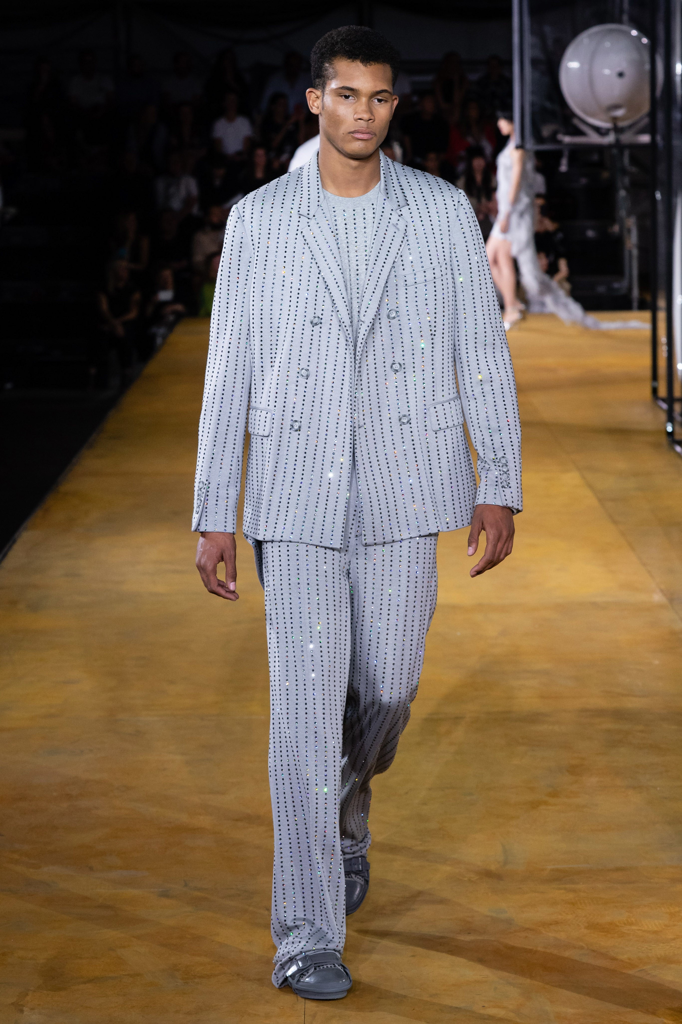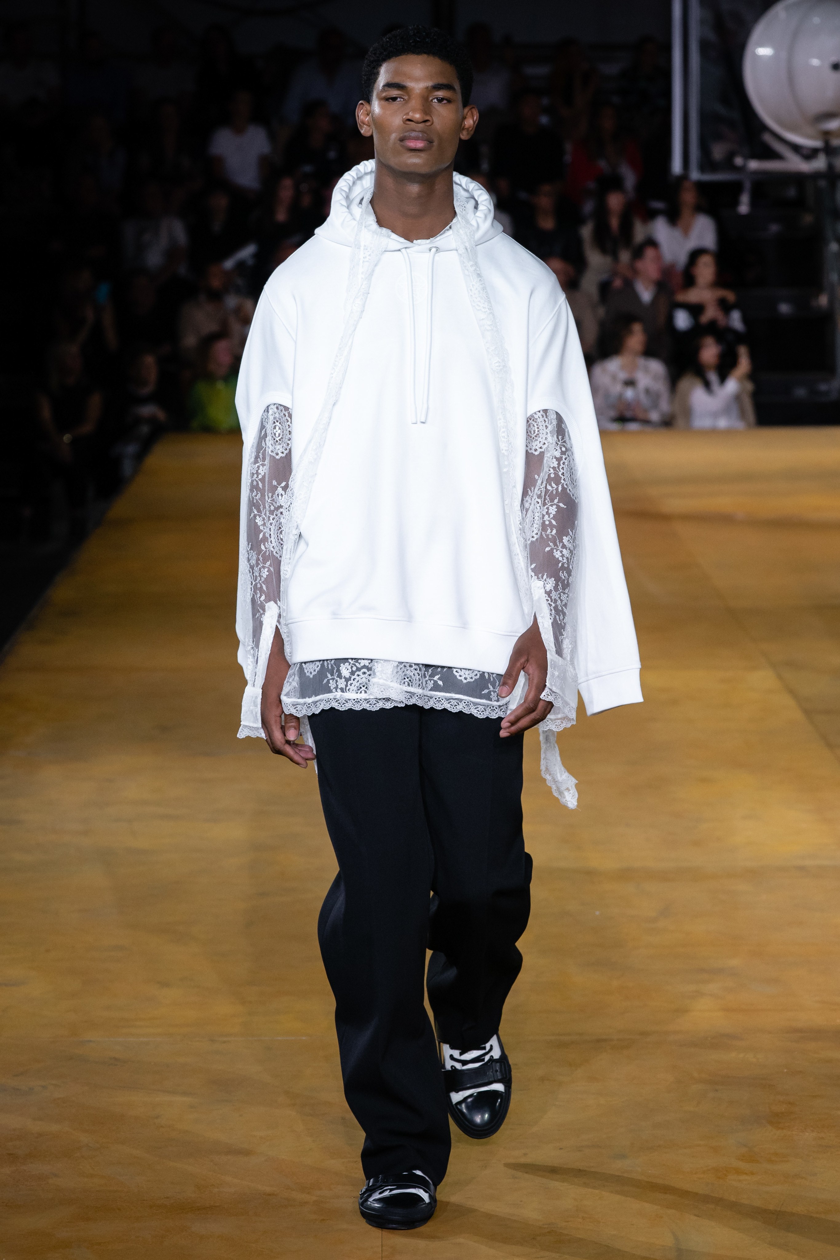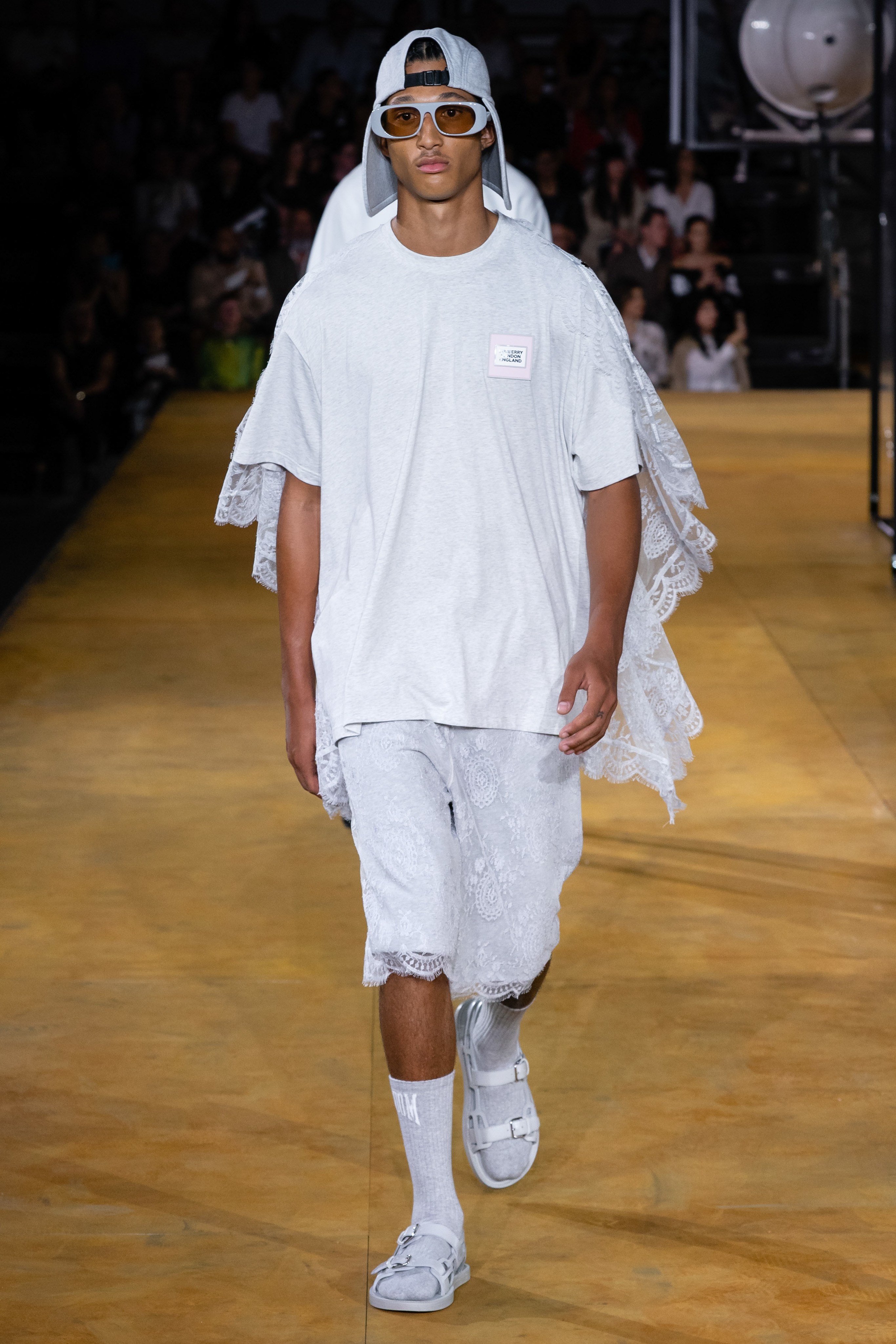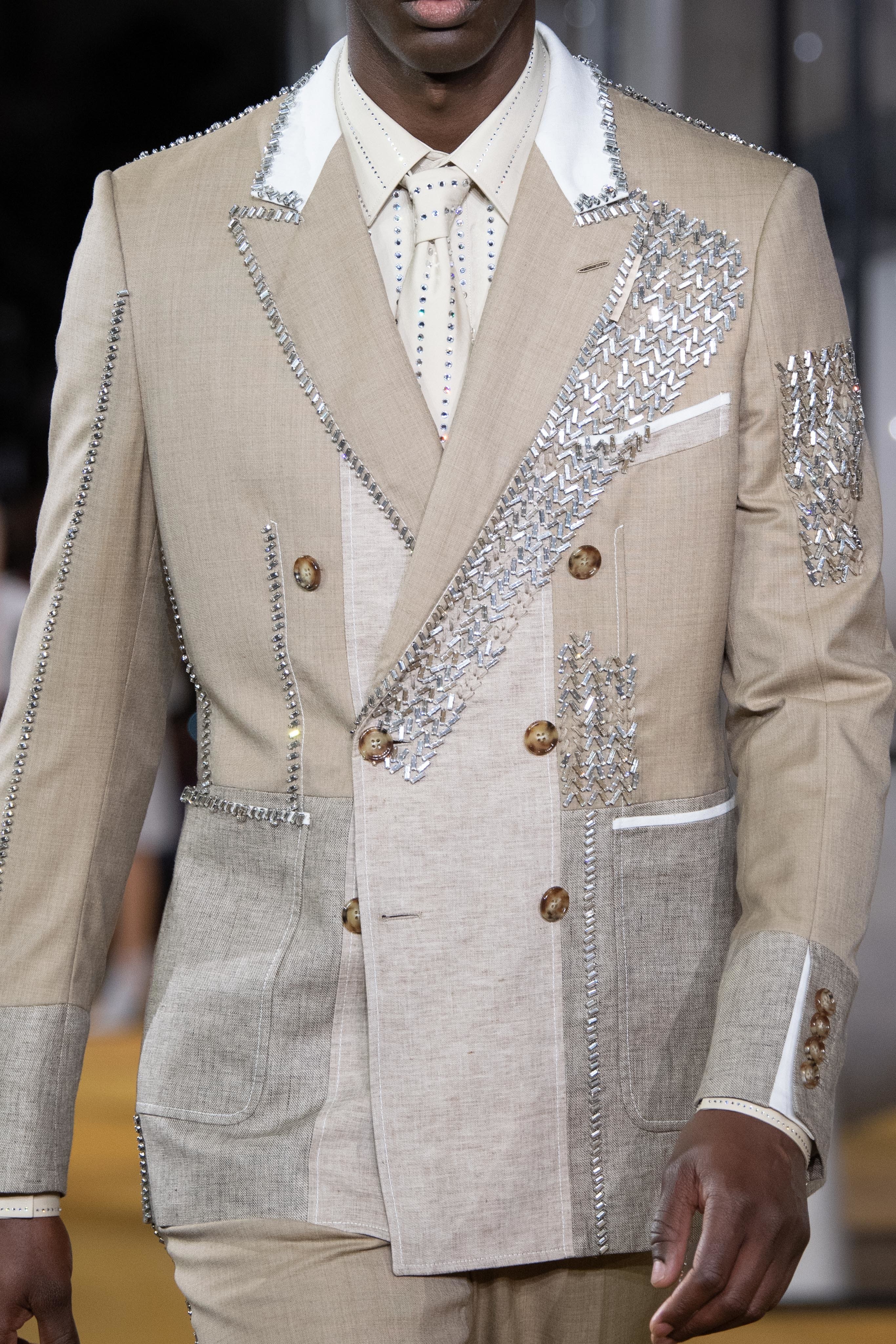Burberry 2020SS 出現了幾套裝飾著大量蕾絲和亮片的男裝,顛覆以往對男裝的刻板印象,搭配起來一點也不女氣。 陽剛中帶點柔美,為男性風格帶來強烈的裝飾性。