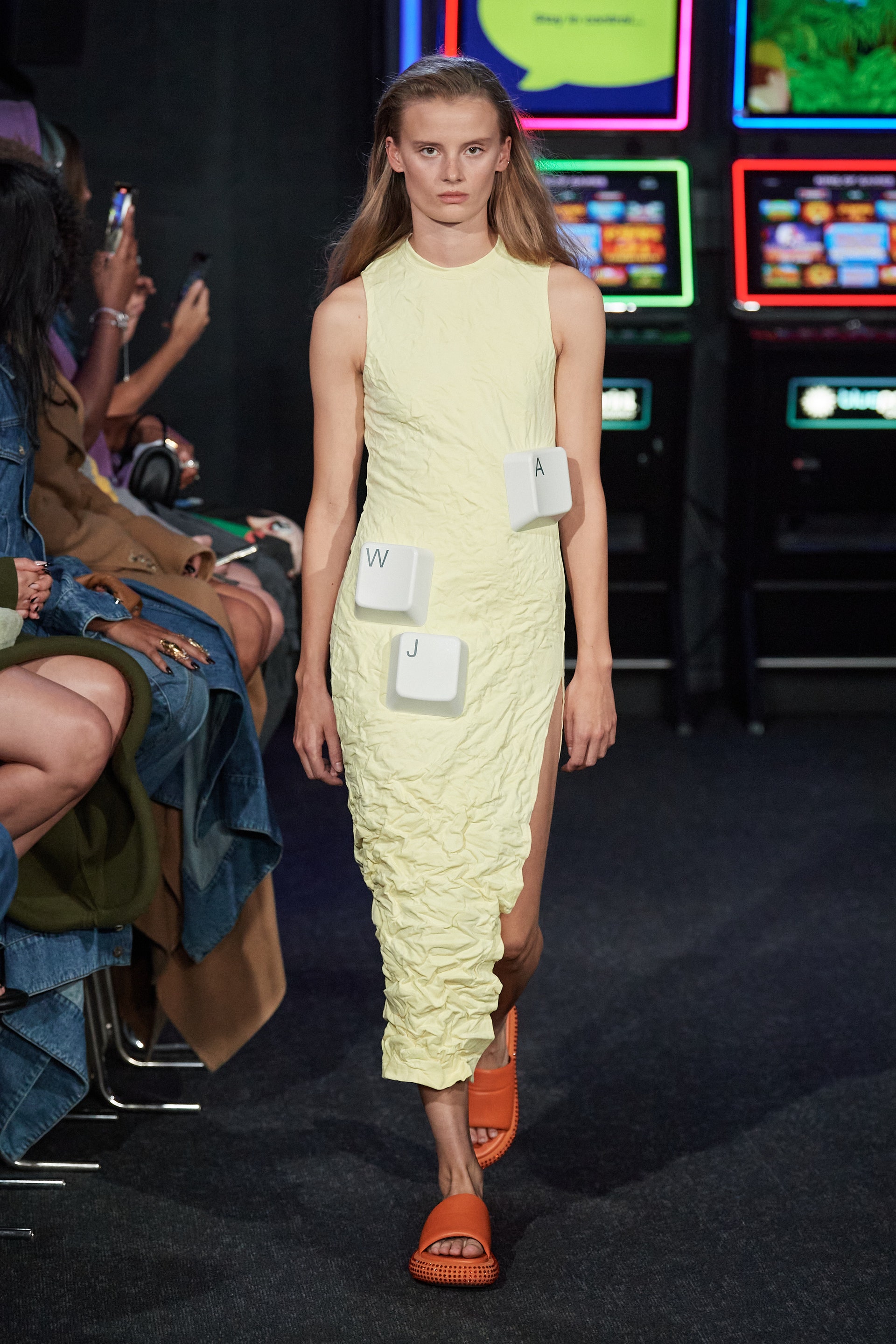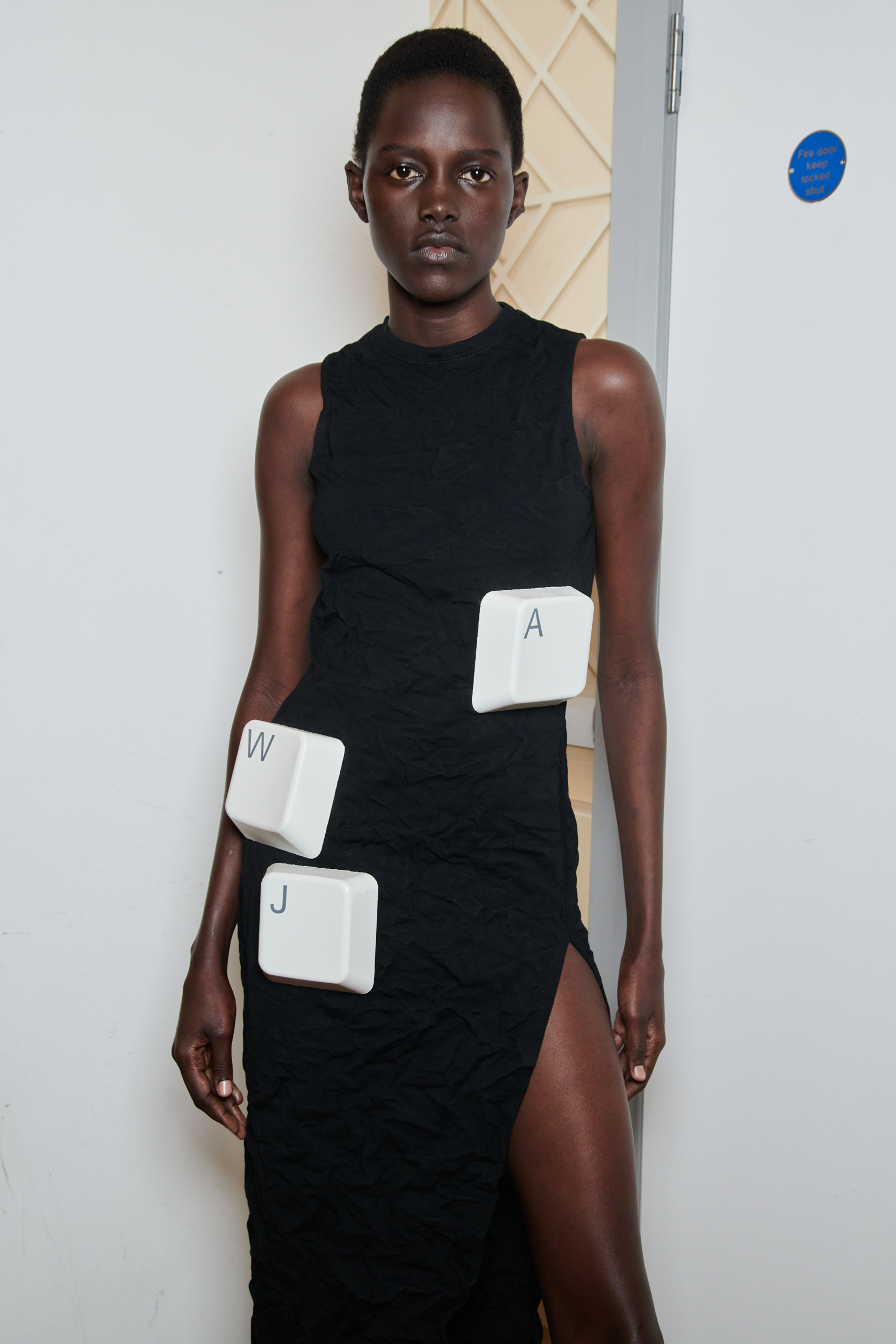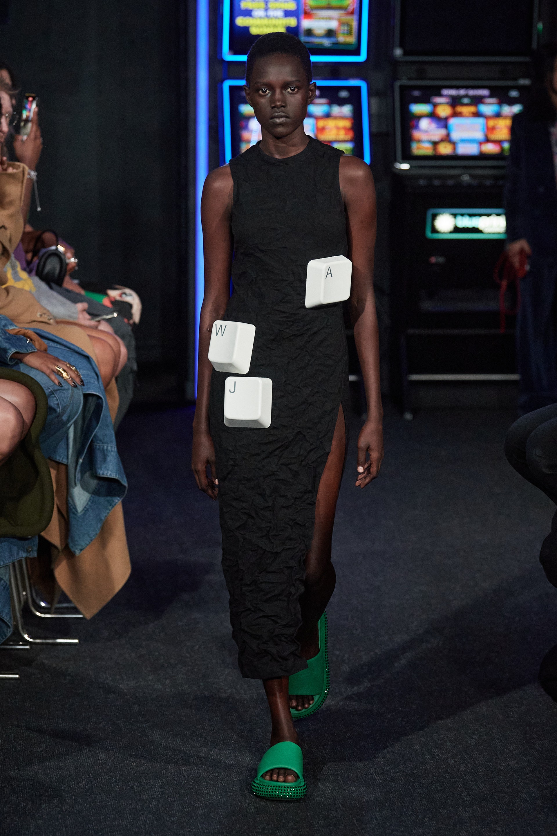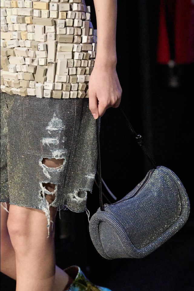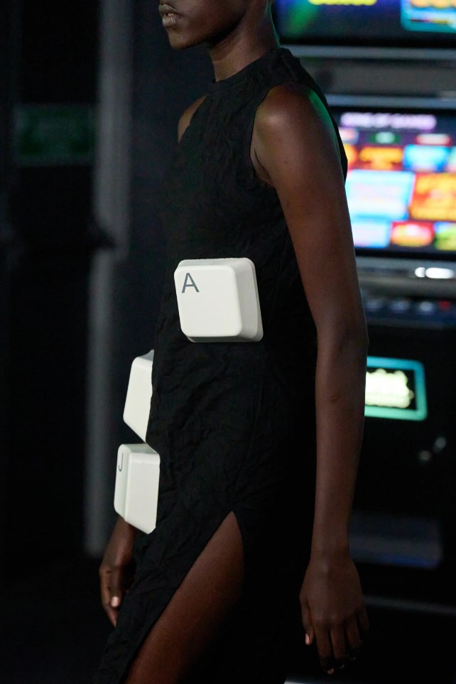 英國時裝品牌JW Anderson 2023 春夏系列營造了一個“人們被困在電腦中的平行世界” 。 該系列展現了許多以超現實主義方式使用材料和輪廓的作品,巨大的電腦按鍵裝飾、像塑膠袋的裙子繫在肩上,光滑的金屬泡泡裙,設計師豐富的創造力為系列帶來大膽的創新和獨特的幽默感 #傳遞知識的副料大學