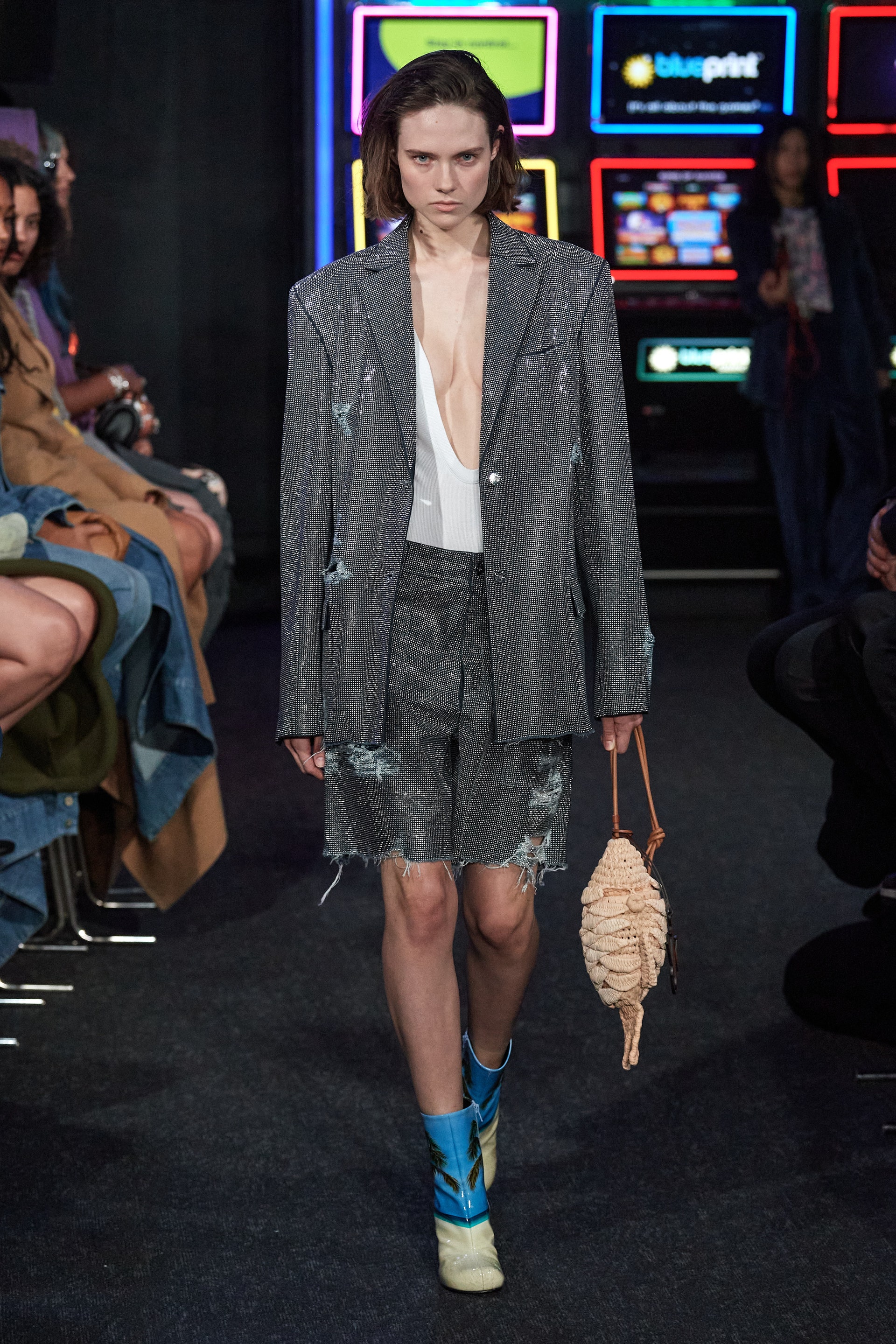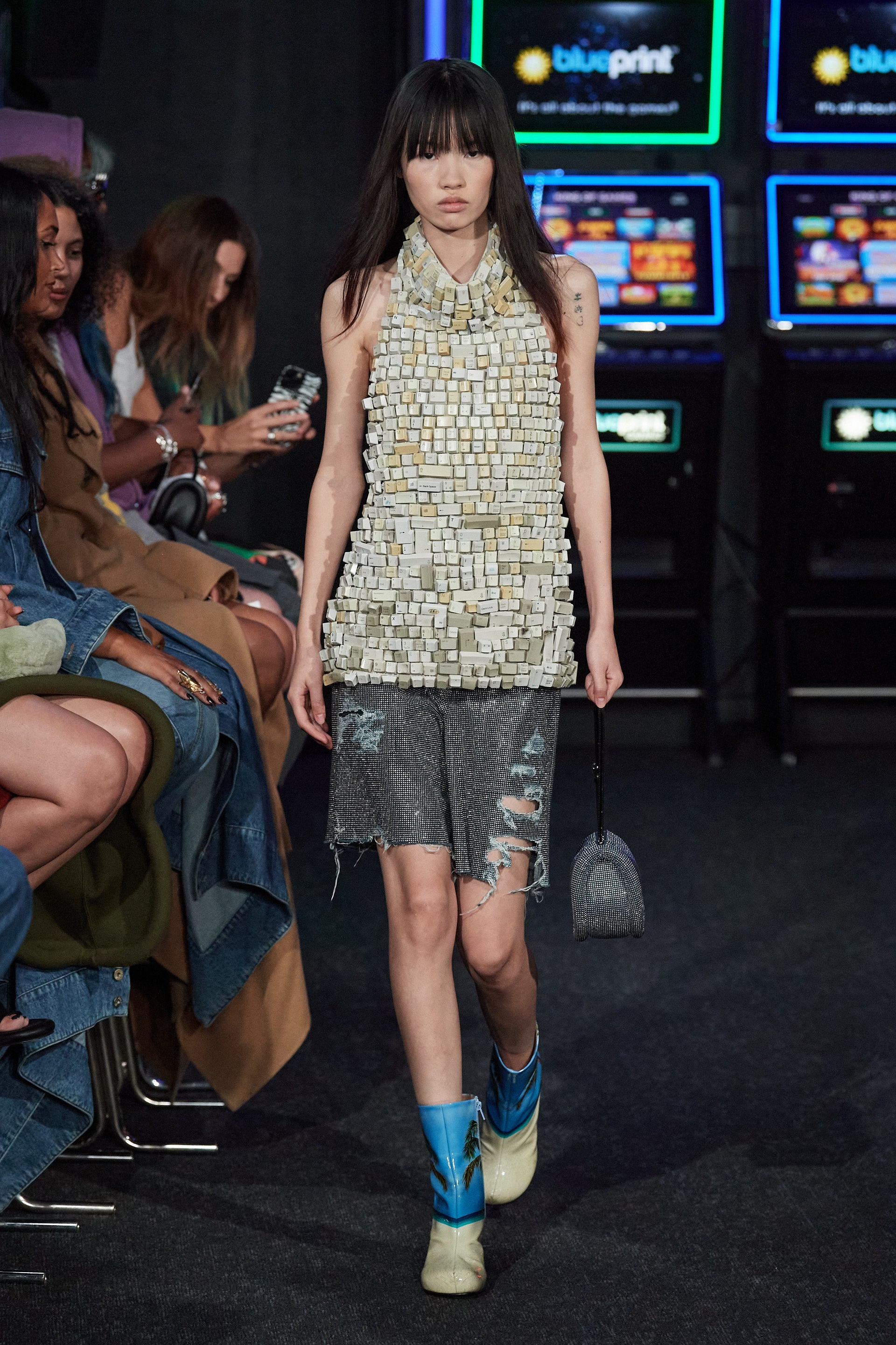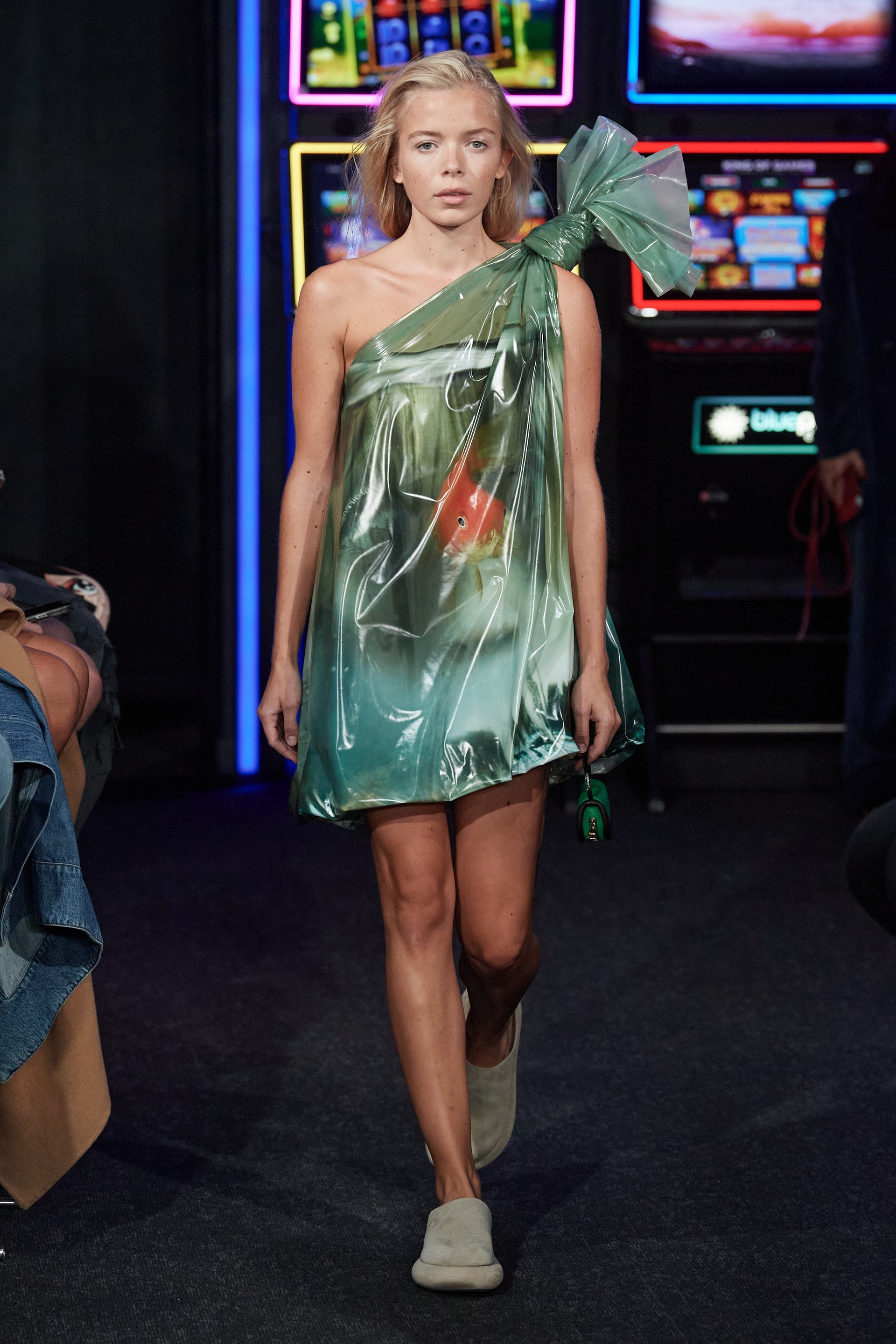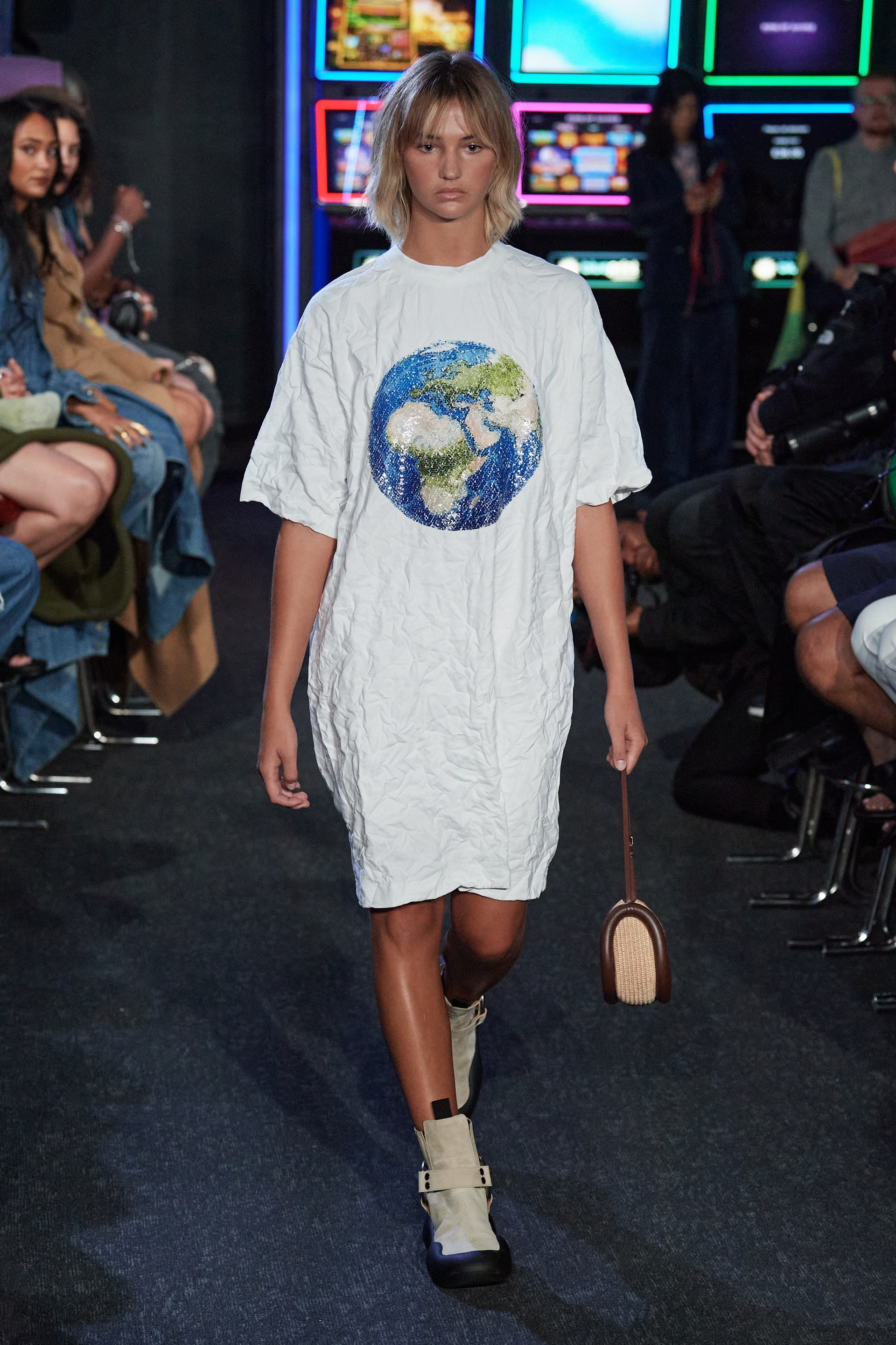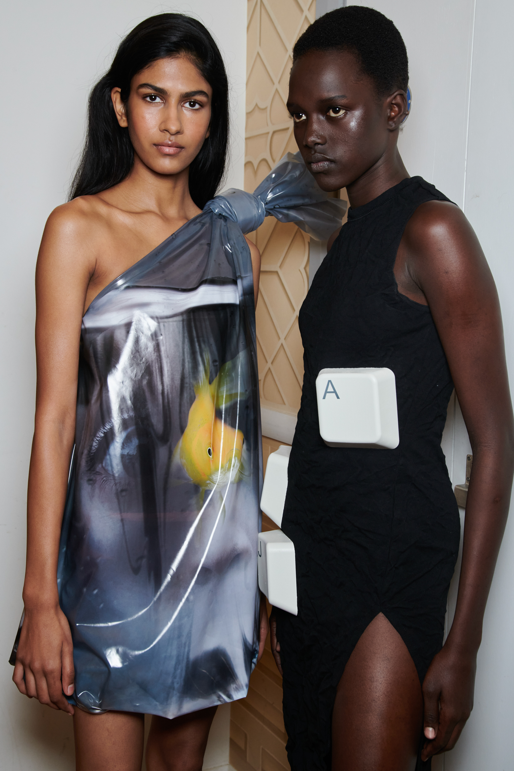 英國時裝品牌JW Anderson 2023 春夏系列營造了一個“人們被困在電腦中的平行世界” 。 該系列展現了許多以超現實主義方式使用材料和輪廓的作品,巨大的電腦按鍵裝飾、像塑膠袋的裙子繫在肩上,光滑的金屬泡泡裙,設計師豐富的創造力為系列帶來大膽的創新和獨特的幽默感 #傳遞知識的副料大學