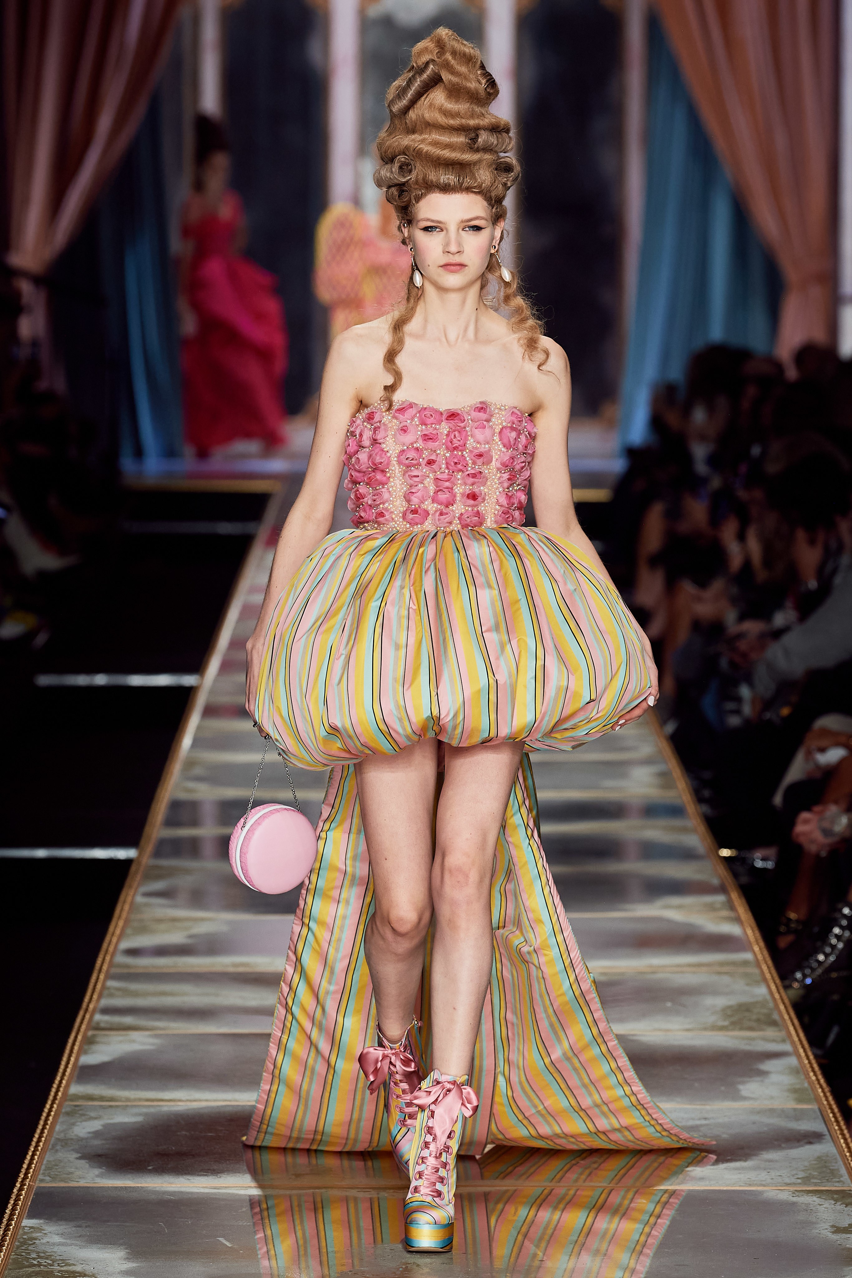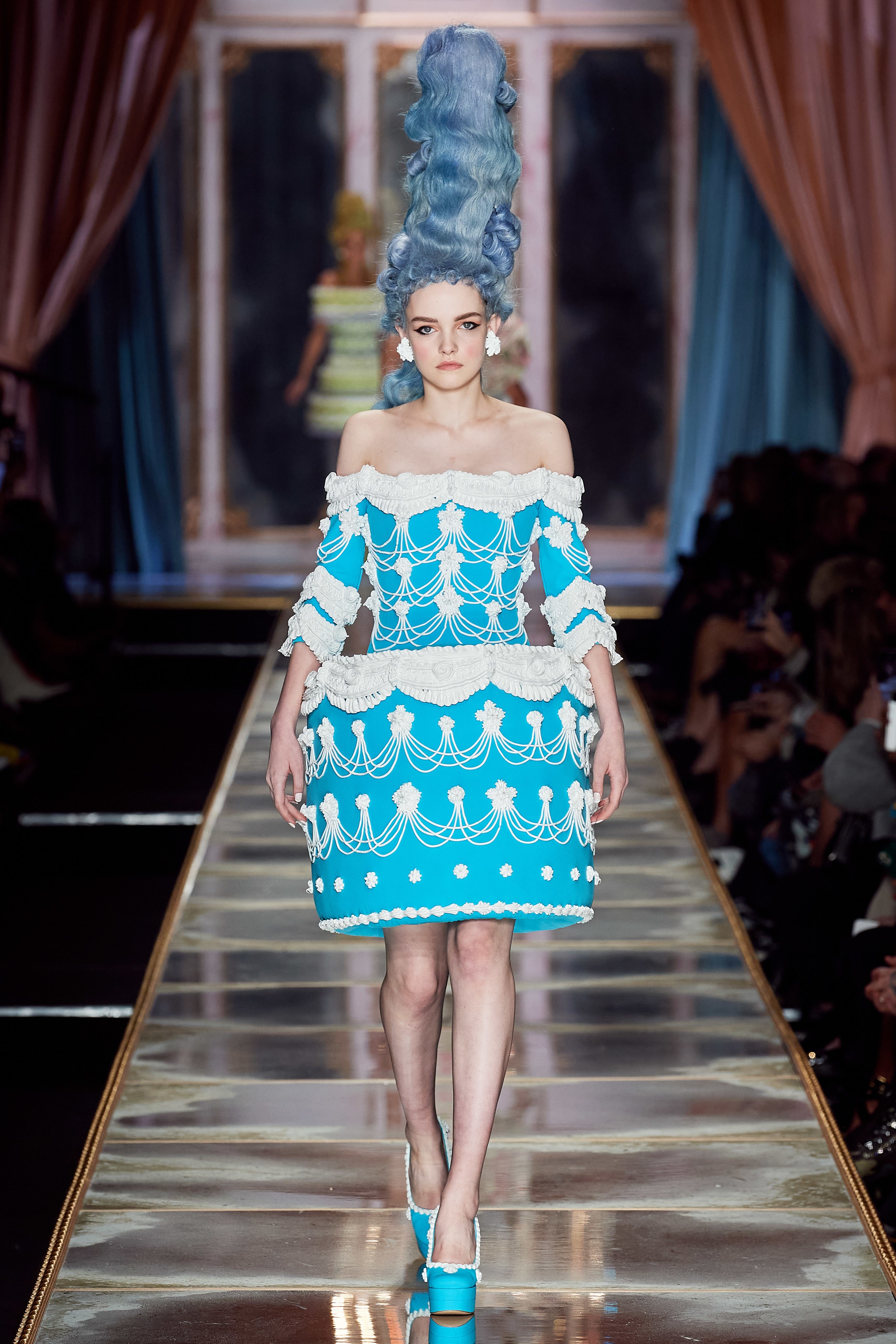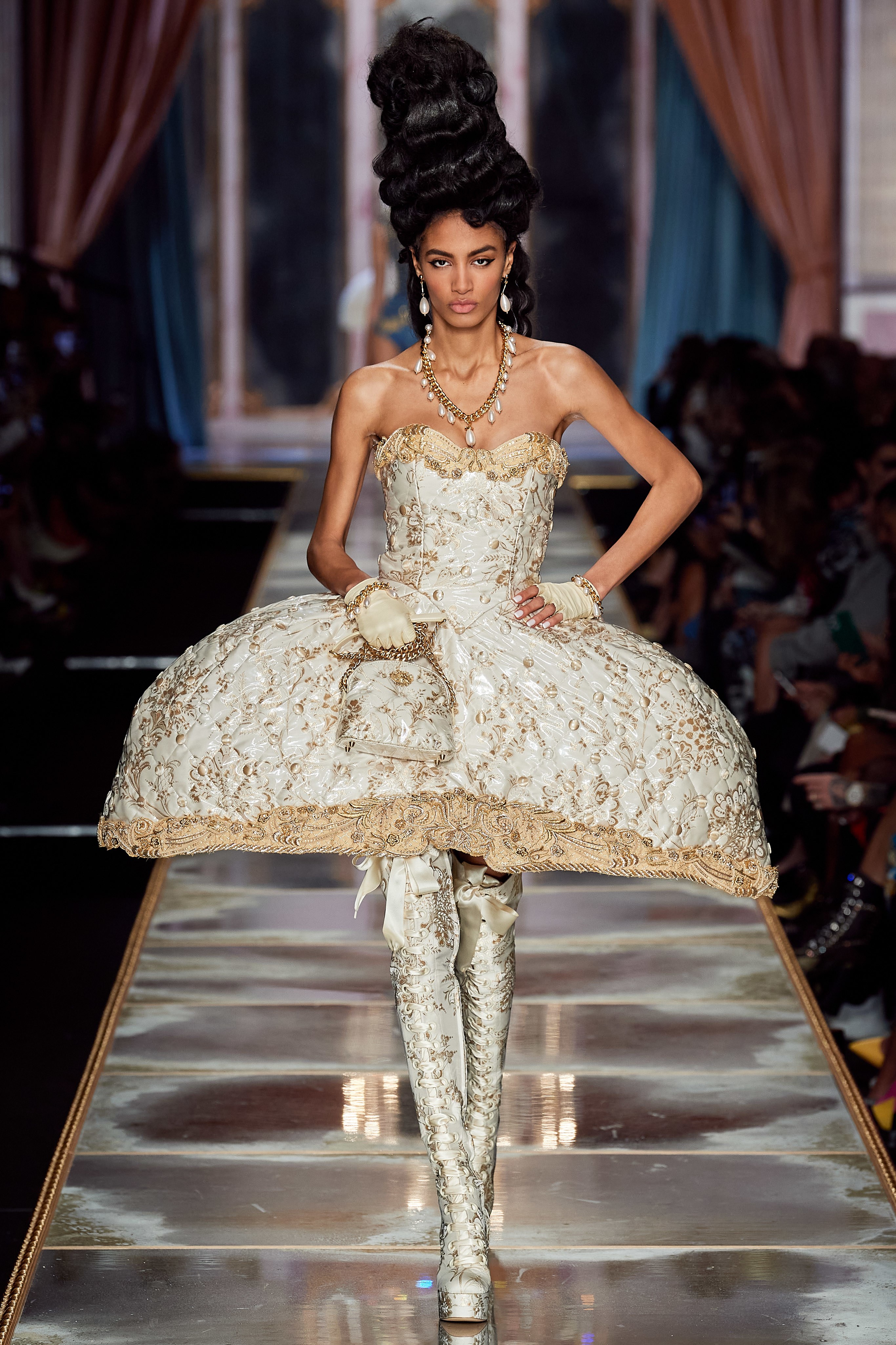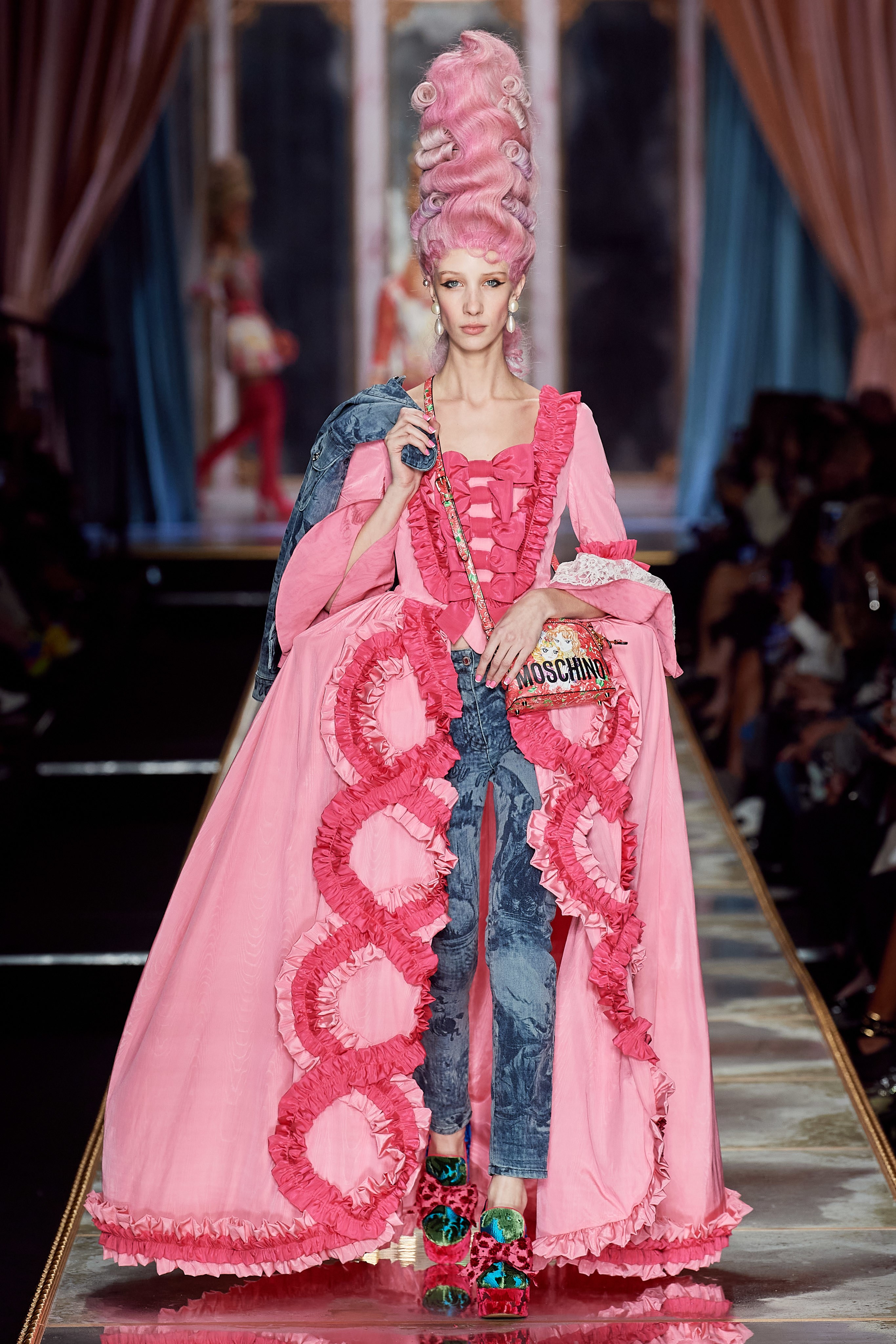 MOSCHINO 2020 Fall 以法國皇后「瑪麗安東尼」為主題,奢華的妝髮結合的浮誇造型,裙撐與馬甲裝飾著大量刺繡、織帶, 將眾人帶回凡爾賽宮廷時期的輝煌時光✨ 整場秀最顯眼的莫過於巨大的擬真蛋糕裙,讓人不禁想到瑪莉皇后的名言「何不吃蛋糕?」(Let them eat cake.)🎂🎂🎂 儘管我們不知曉她是否真的說過這句話,MOSCHINO 也確實抓住了我們的目光。 傳遞知識的 #副料大學