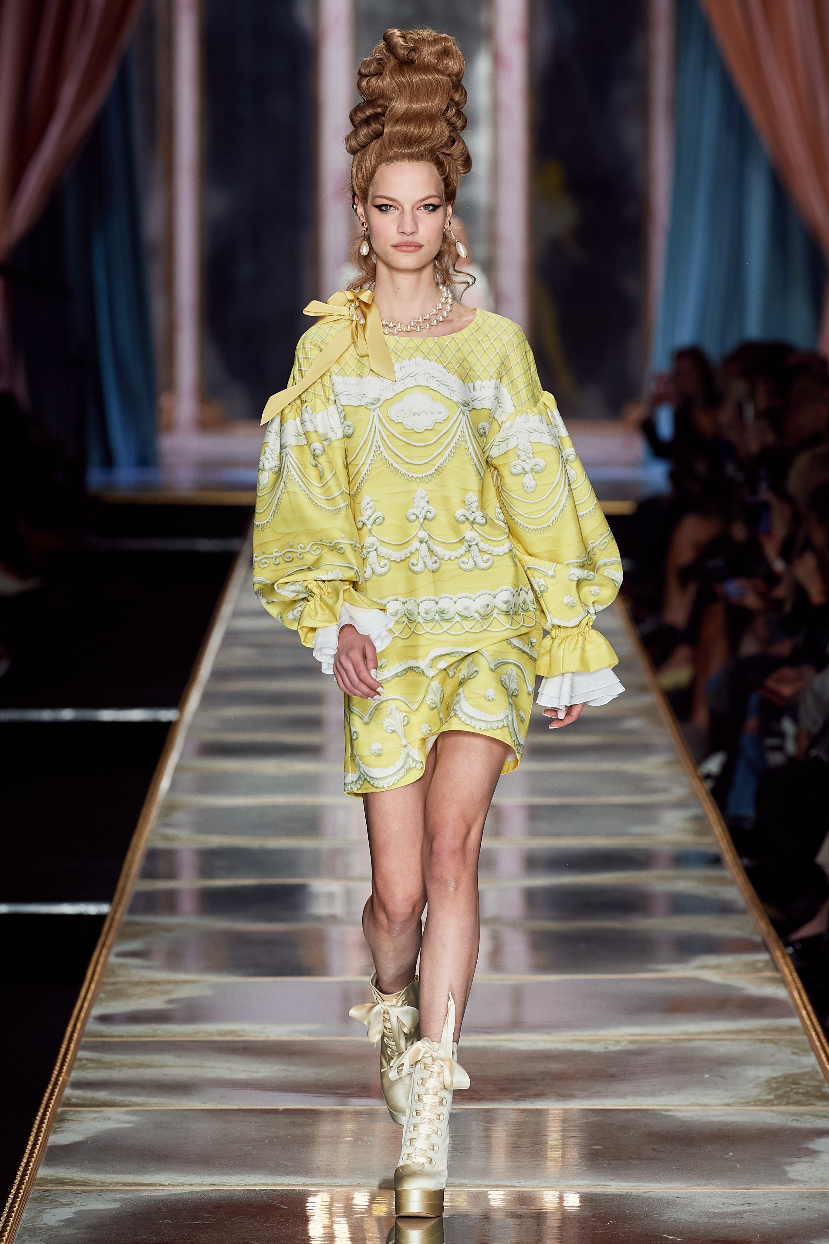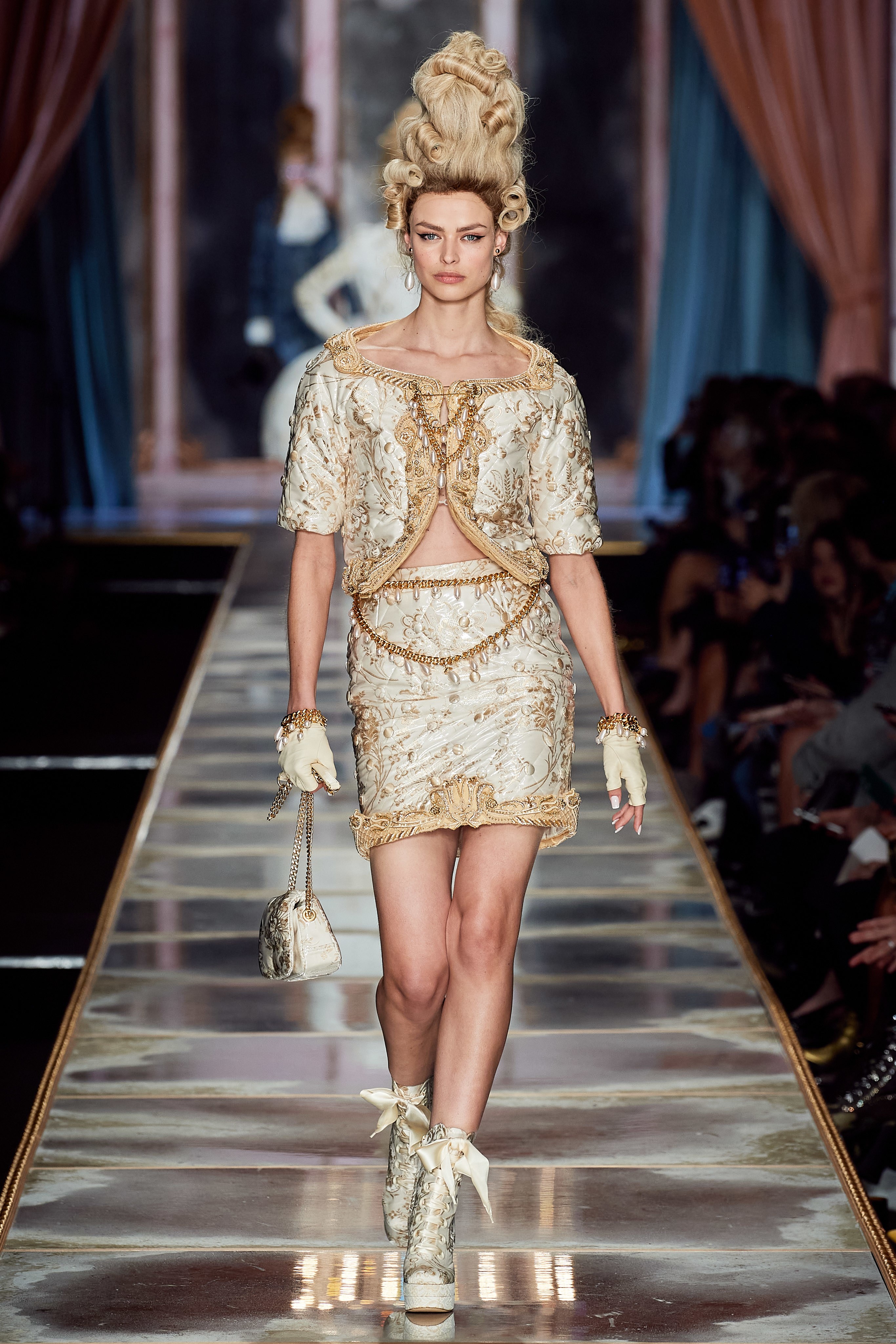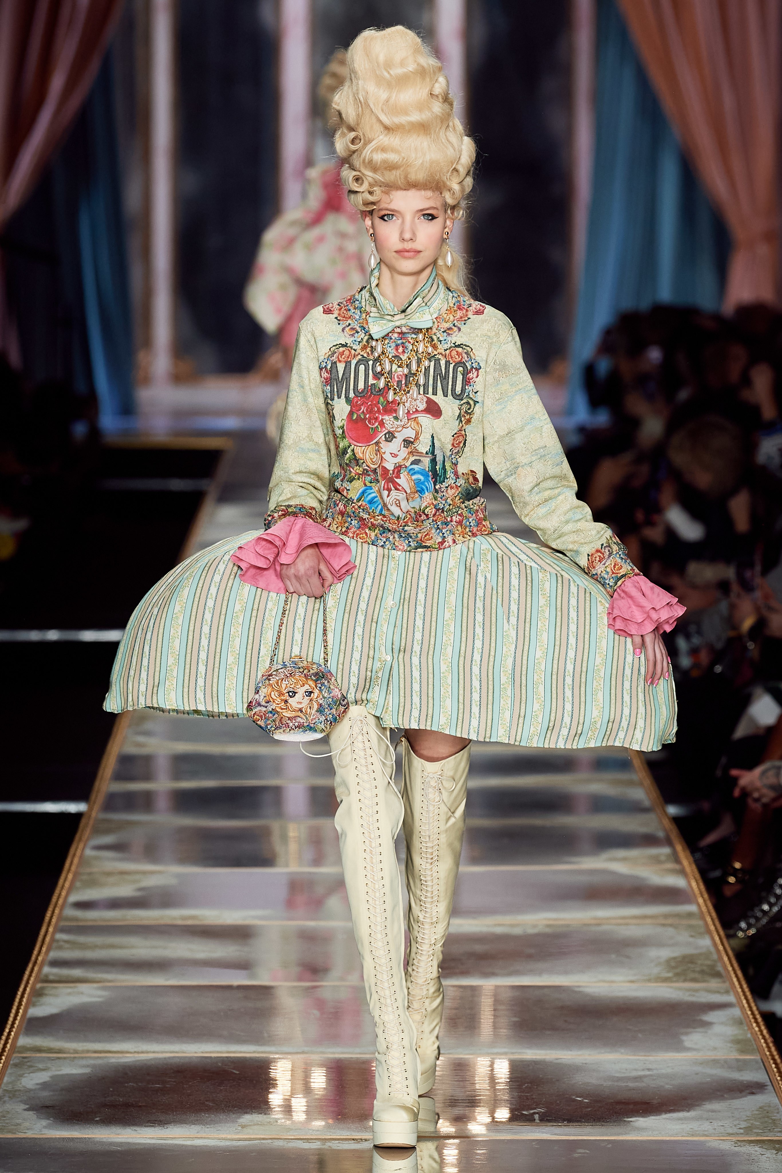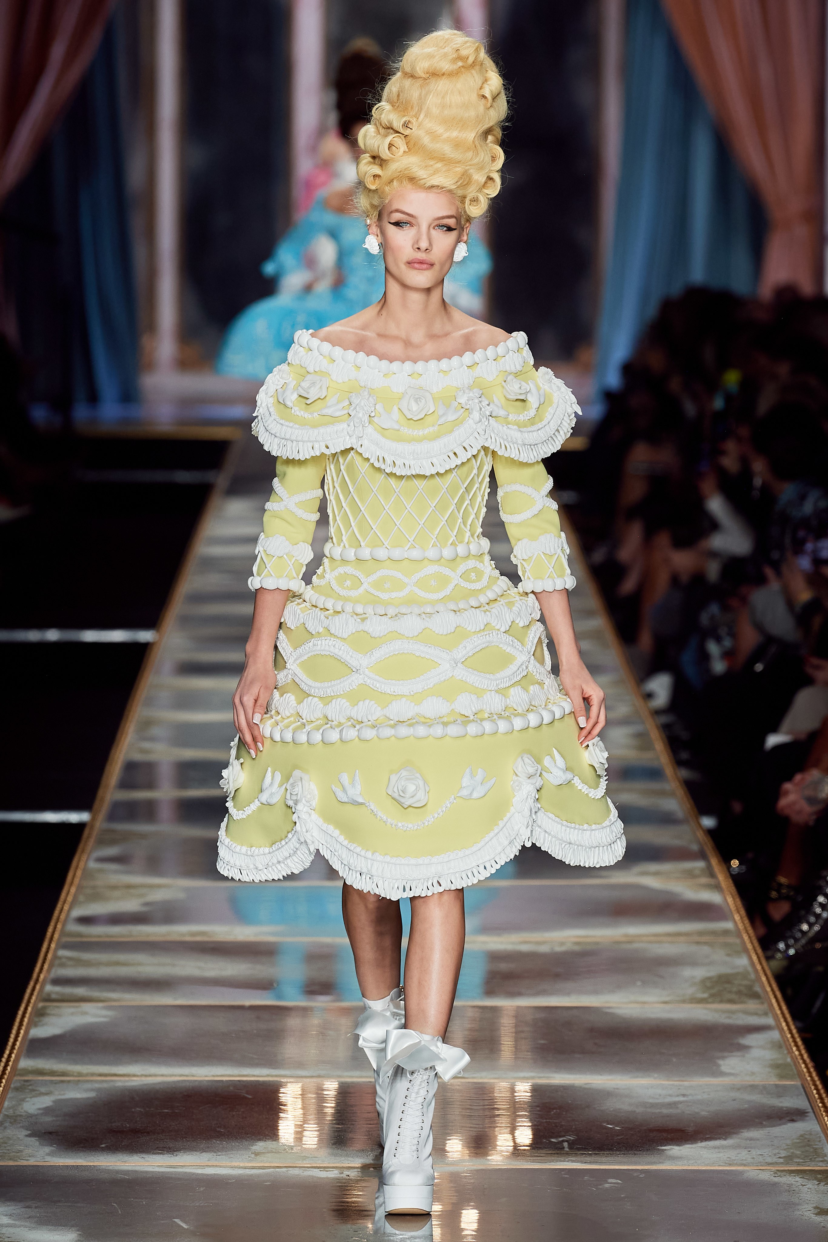 MOSCHINO 2020 Fall 以法國皇后「瑪麗安東尼」為主題,奢華的妝髮結合的浮誇造型,裙撐與馬甲裝飾著大量刺繡、織帶, 將眾人帶回凡爾賽宮廷時期的輝煌時光✨ 整場秀最顯眼的莫過於巨大的擬真蛋糕裙,讓人不禁想到瑪莉皇后的名言「何不吃蛋糕?」(Let them eat cake.)🎂🎂🎂 儘管我們不知曉她是否真的說過這句話,MOSCHINO 也確實抓住了我們的目光。 傳遞知識的 #副料大學