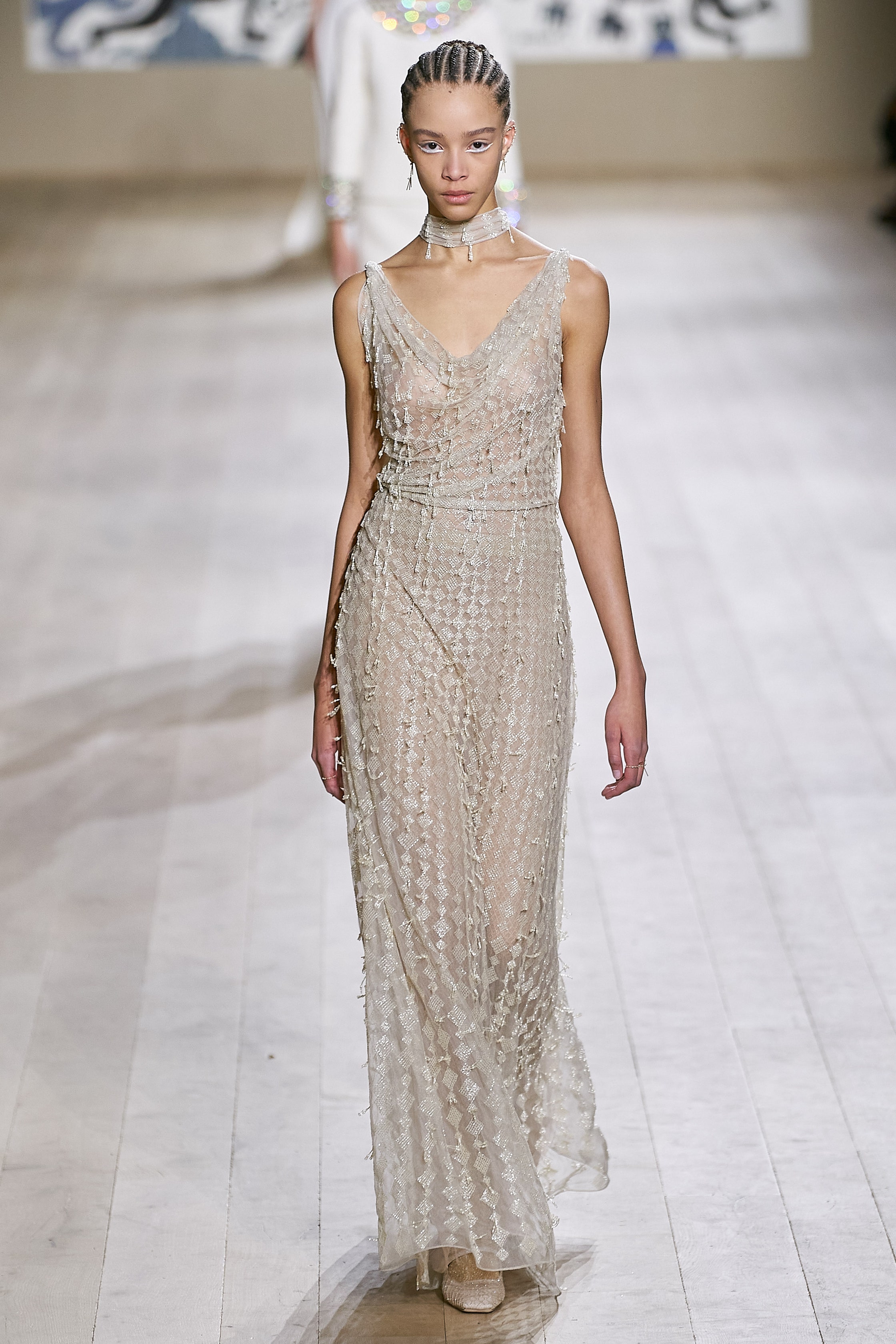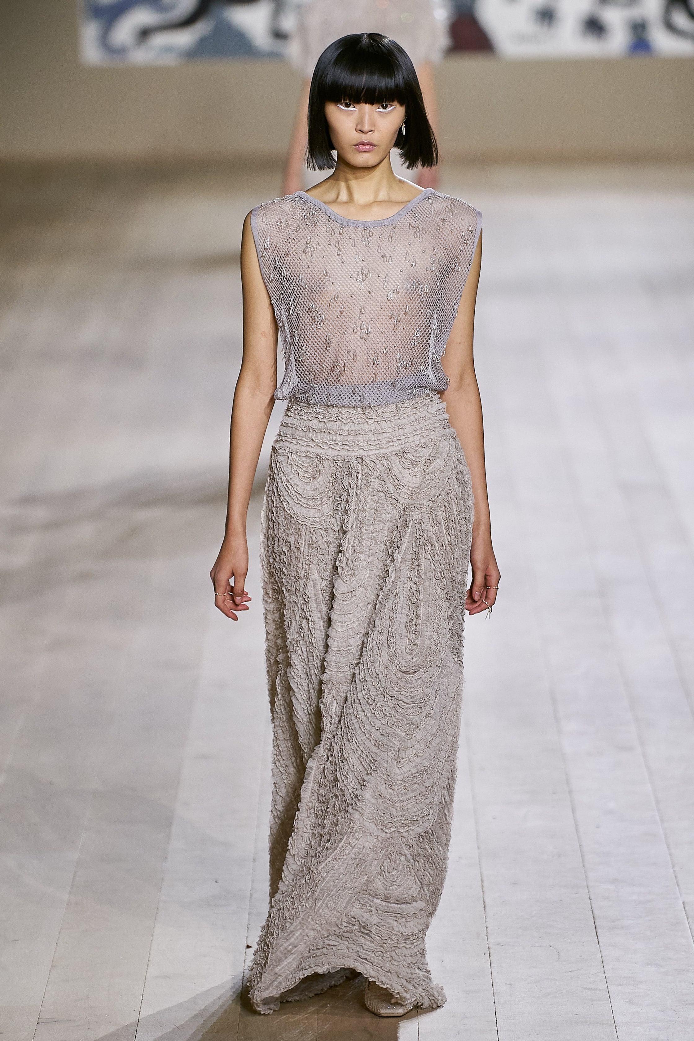 在這個系列裡Maria Grazia Chiuri 著手探索裝飾細節與人體之間的相互作用,為藝術和工藝之間的界限賦予新定義的渴望。 精細的服裝和刺繡與身體及其周圍的空間產生互動,不僅僅是裝飾細節,它也賦予了布料結構及其建築線條。 #傳遞知識的副料大學