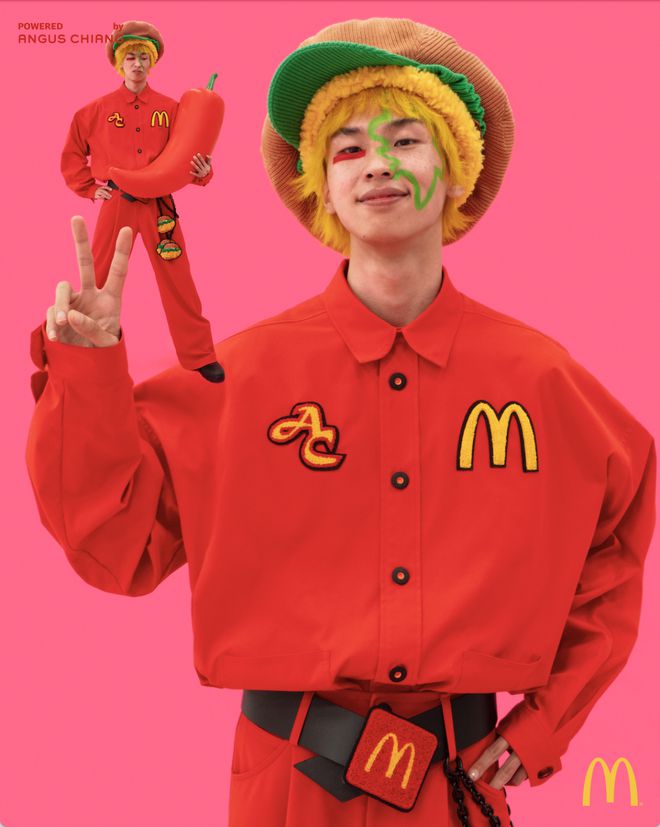台灣服裝設計師江奕勳 ANGUSCHIANG 為中國麥當勞 雞不可失「食裝周」 打造時裝系列,首場大秀《超雞辣辣辣》,推出巨大版「麥辣雞腿堡漢堡帽」做為首樣周邊單品,麥當勞的經典紅、黃配色,並以白、黑色為點綴色搭配,系列融入了 ANGUS CHIANG 式的幽默趣味、色塊色彩、街頭風格,並沿用其過往經典款式翻玩再造。 後續三周也將推出其他系列單品,用食尚的色彩分享更多快樂與溫暖。 #傳遞知識的副料大學