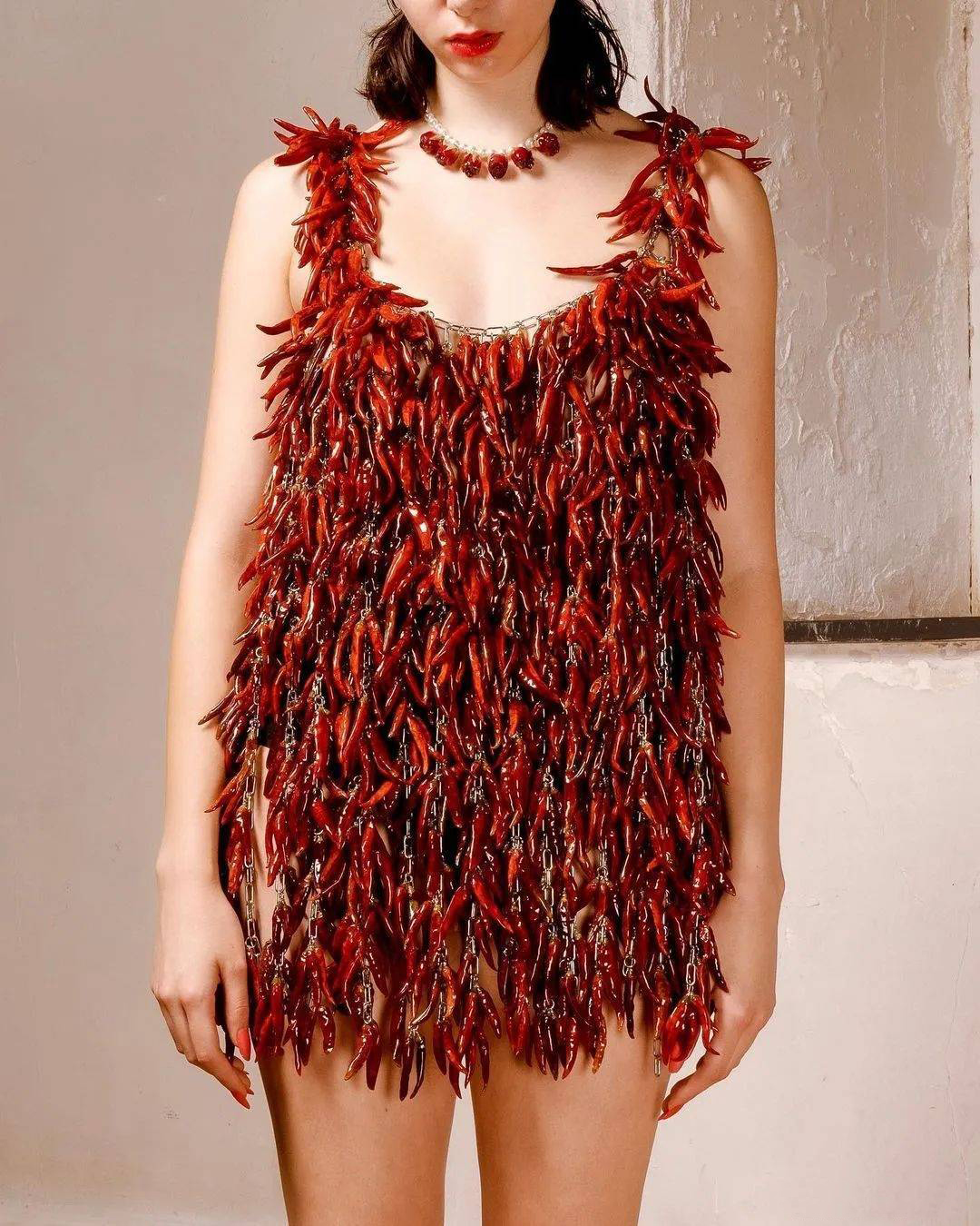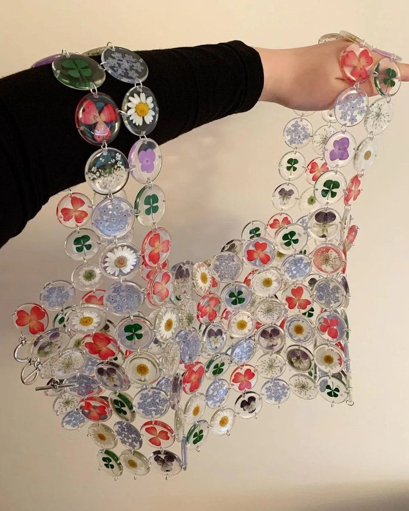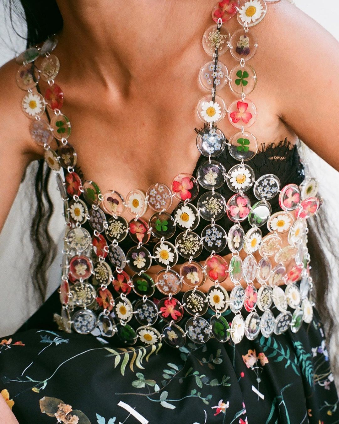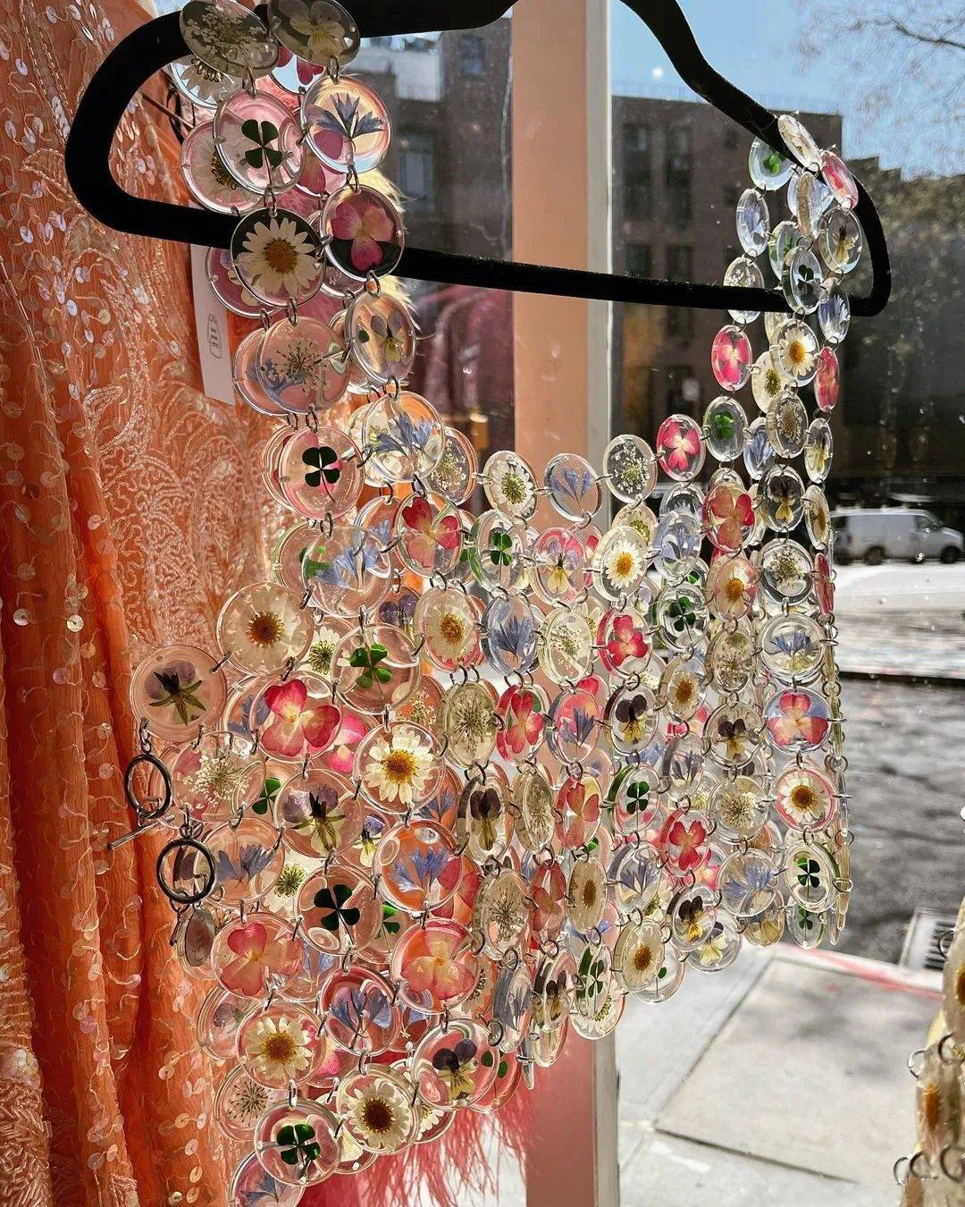Dauphinette是紐約的一個獨特品牌,以其創意和手工製作的時尚單品而聞名,設計師擅長運用真花和昆蟲等自然元素融入時尚設計中,製作成獨一無二的手工服裝和配件。 作品不僅充滿藝術感,還展現出品牌對環保和創新的執著。Dauphinette的設計風格既充滿童趣又不失奢華,吸引了眾多時尚愛好者的目光。