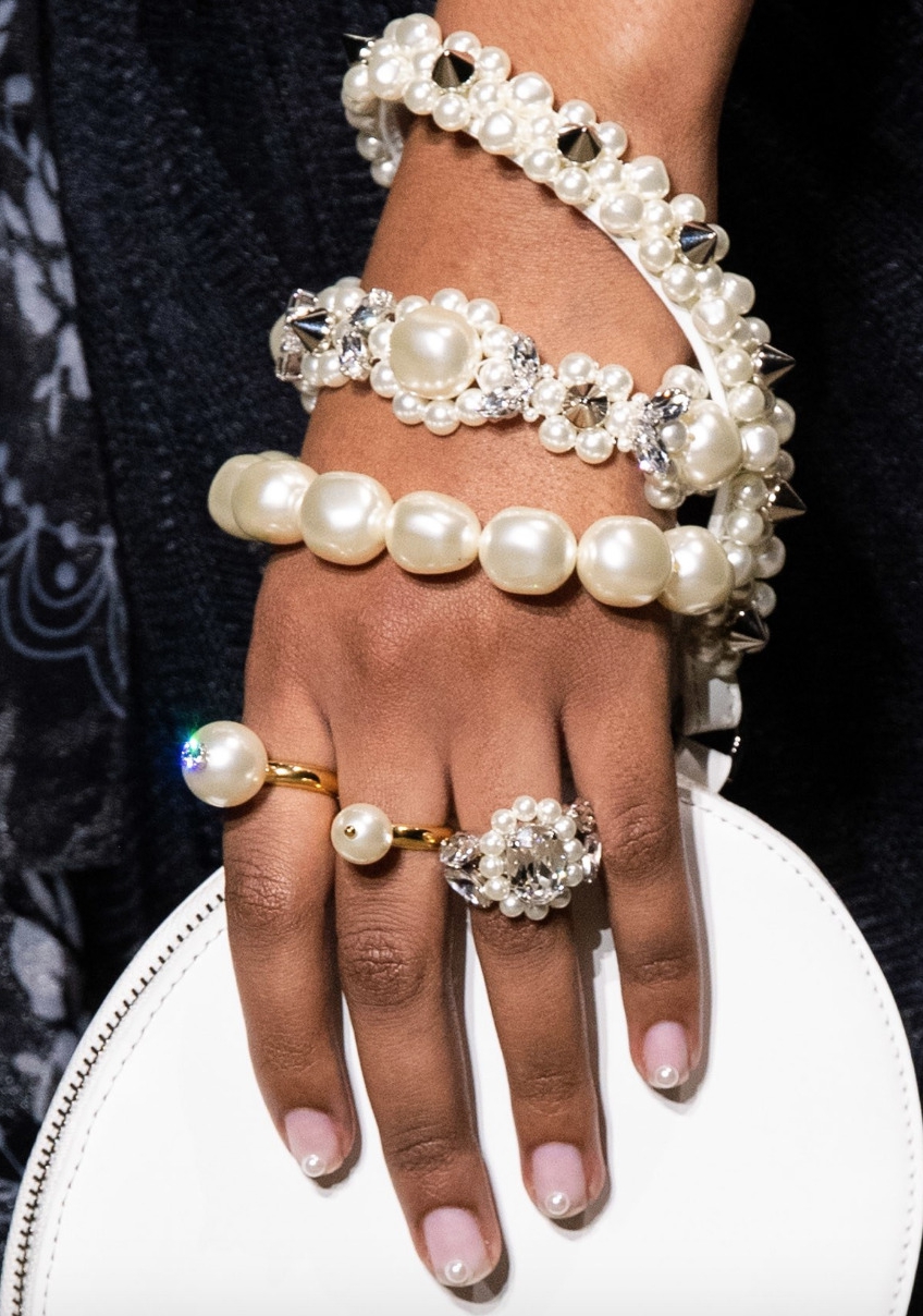 珍珠以獨特的光澤和高雅氣質廣受世人喜愛, 近來也廣泛被運用在服裝上,以線條或以大面積等各種形式, 強化珍珠在服裝上的輔助效果,也讓服裝更加豐富多姿~