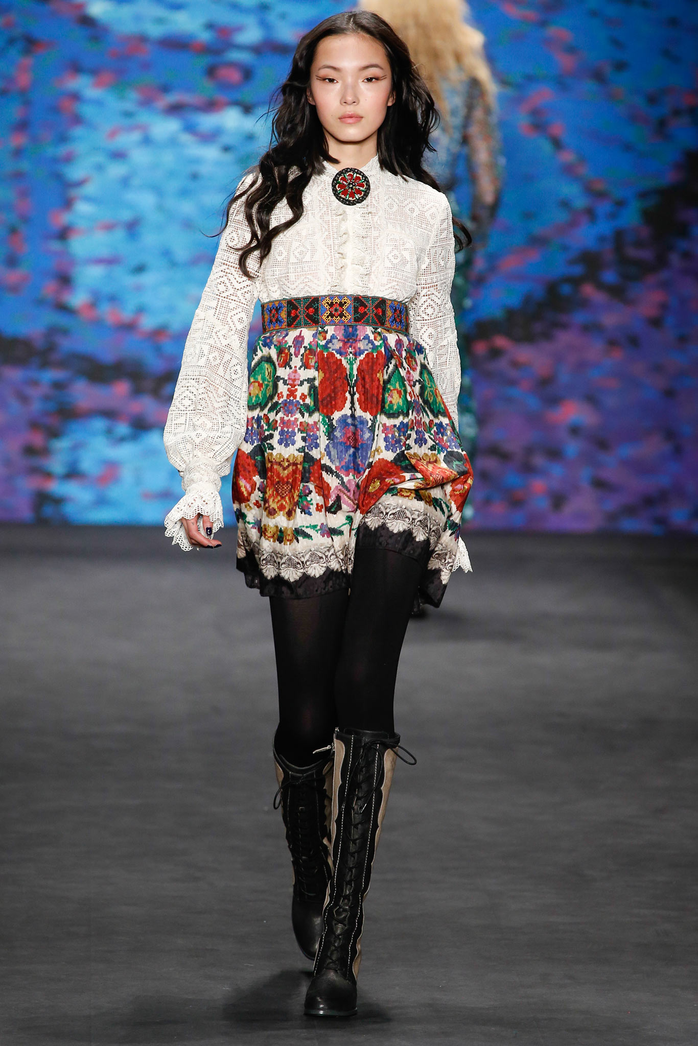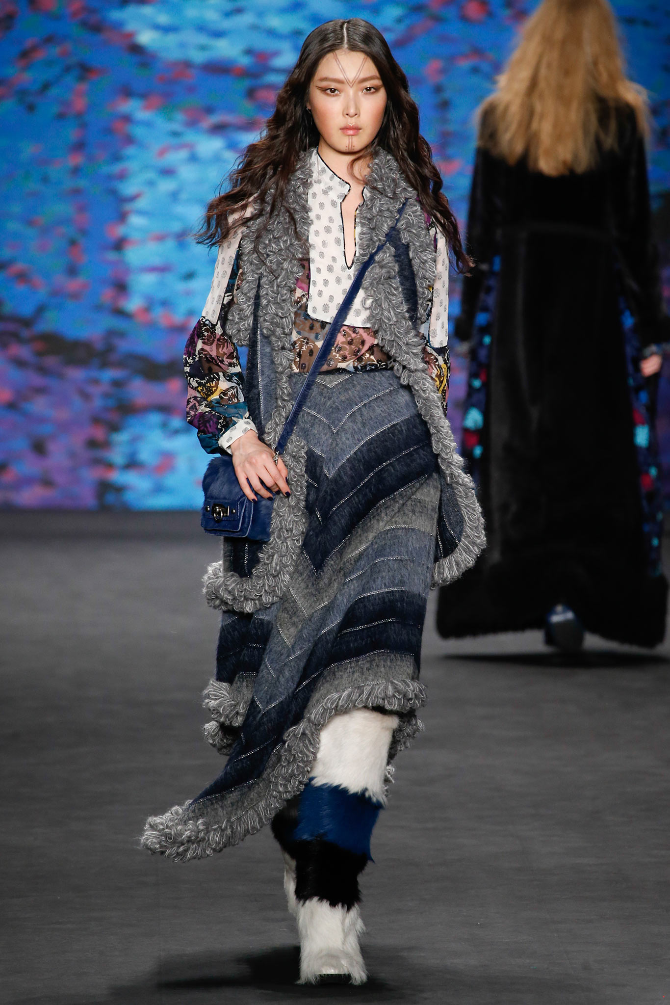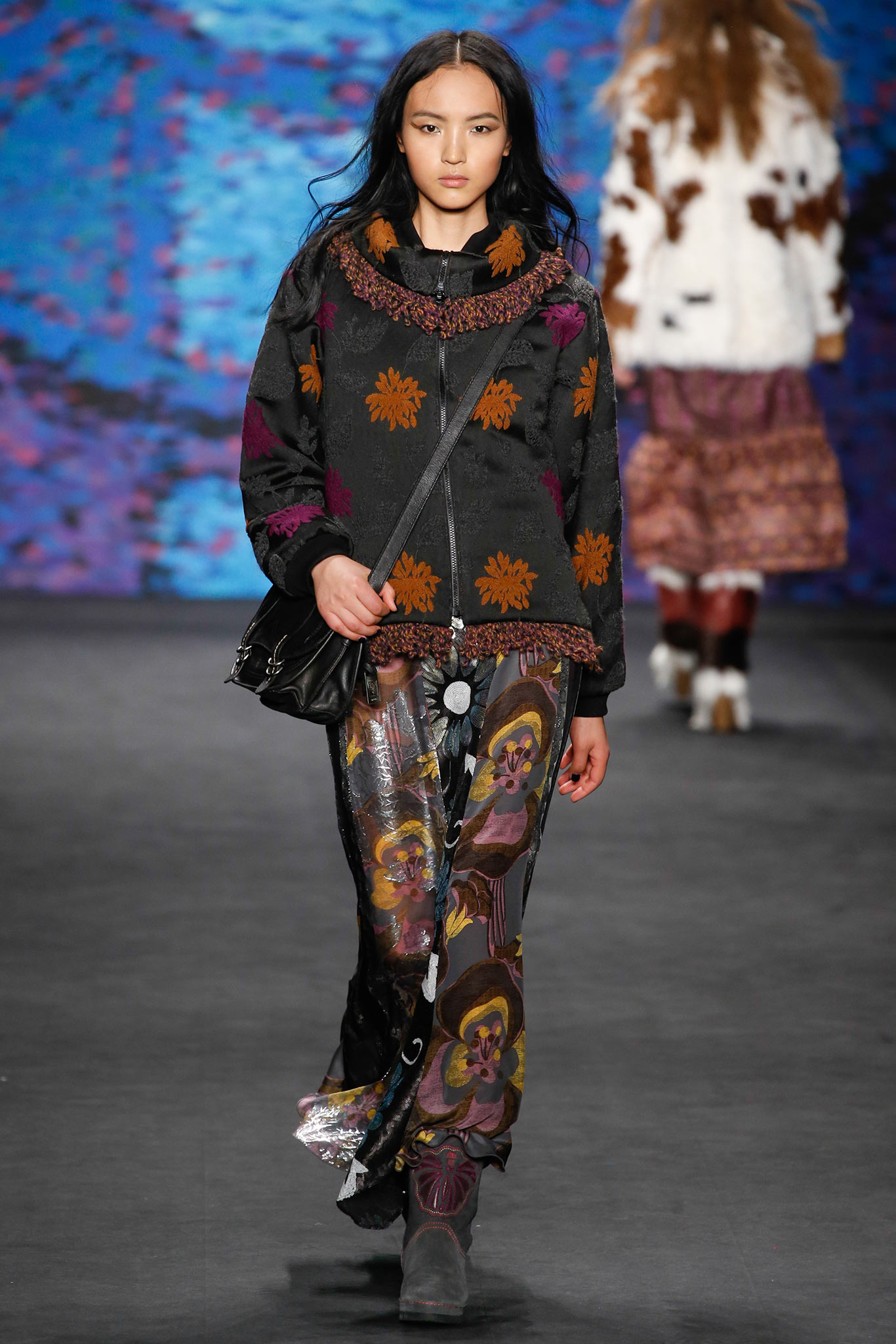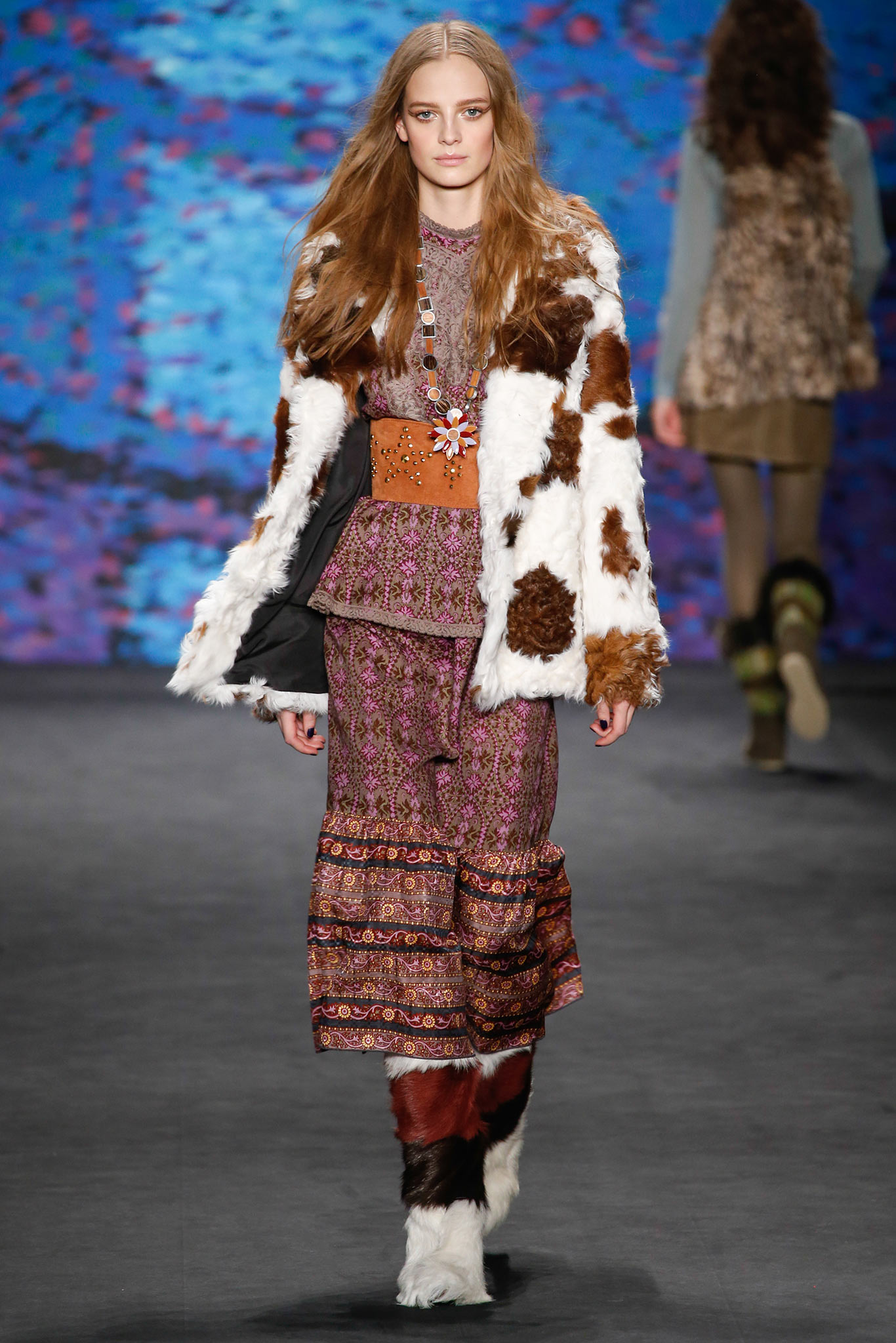 民俗掛毯,刺繡,鉤編和版畫成為她這季的創作元素 把外蒙古民族與野性的蓬亂感結合. 繼續創造Anna Sui女王傳奇設計.