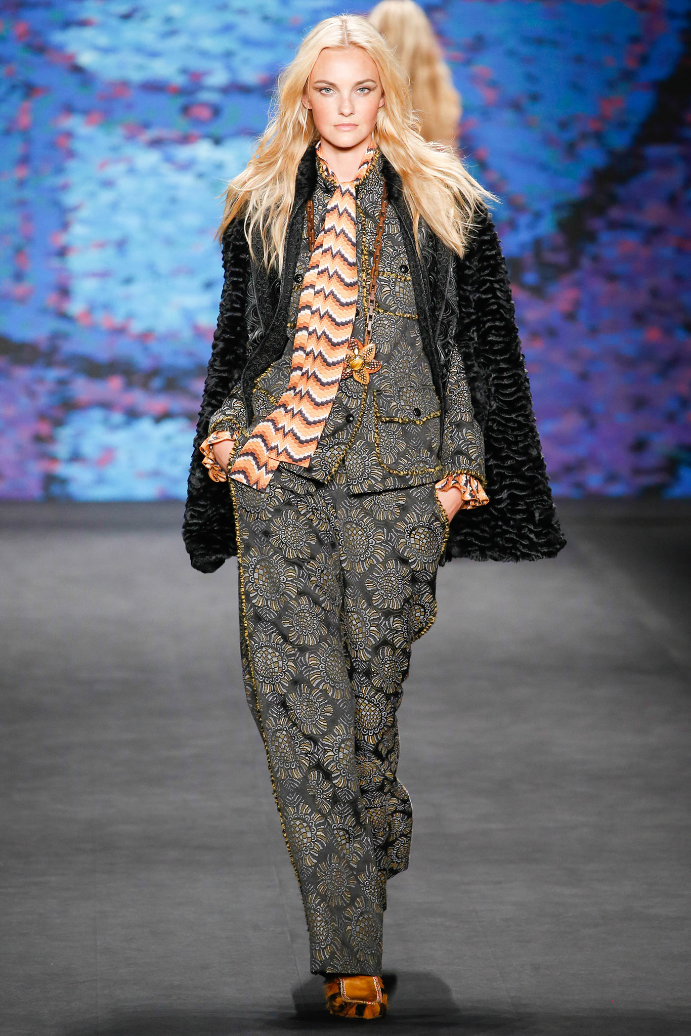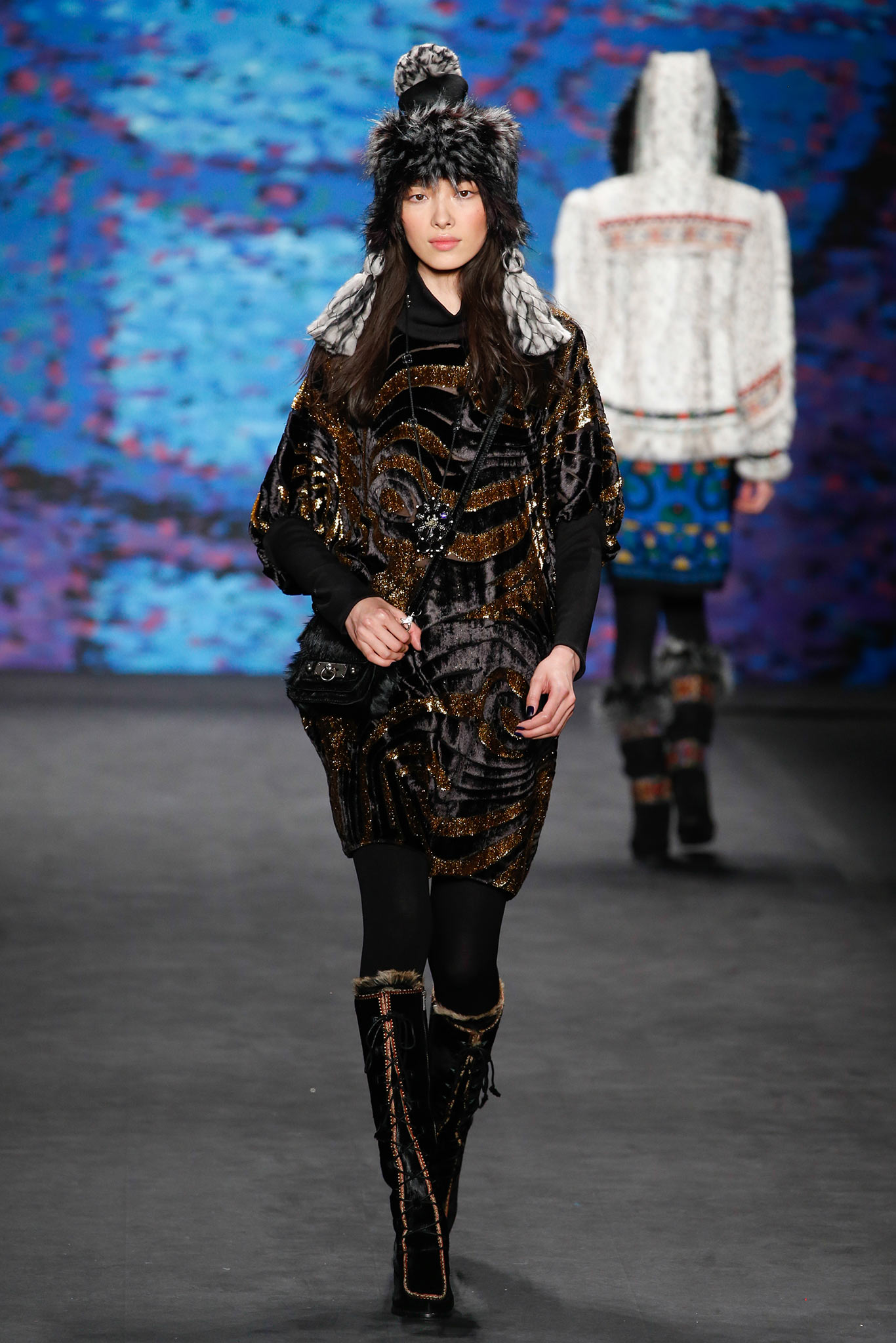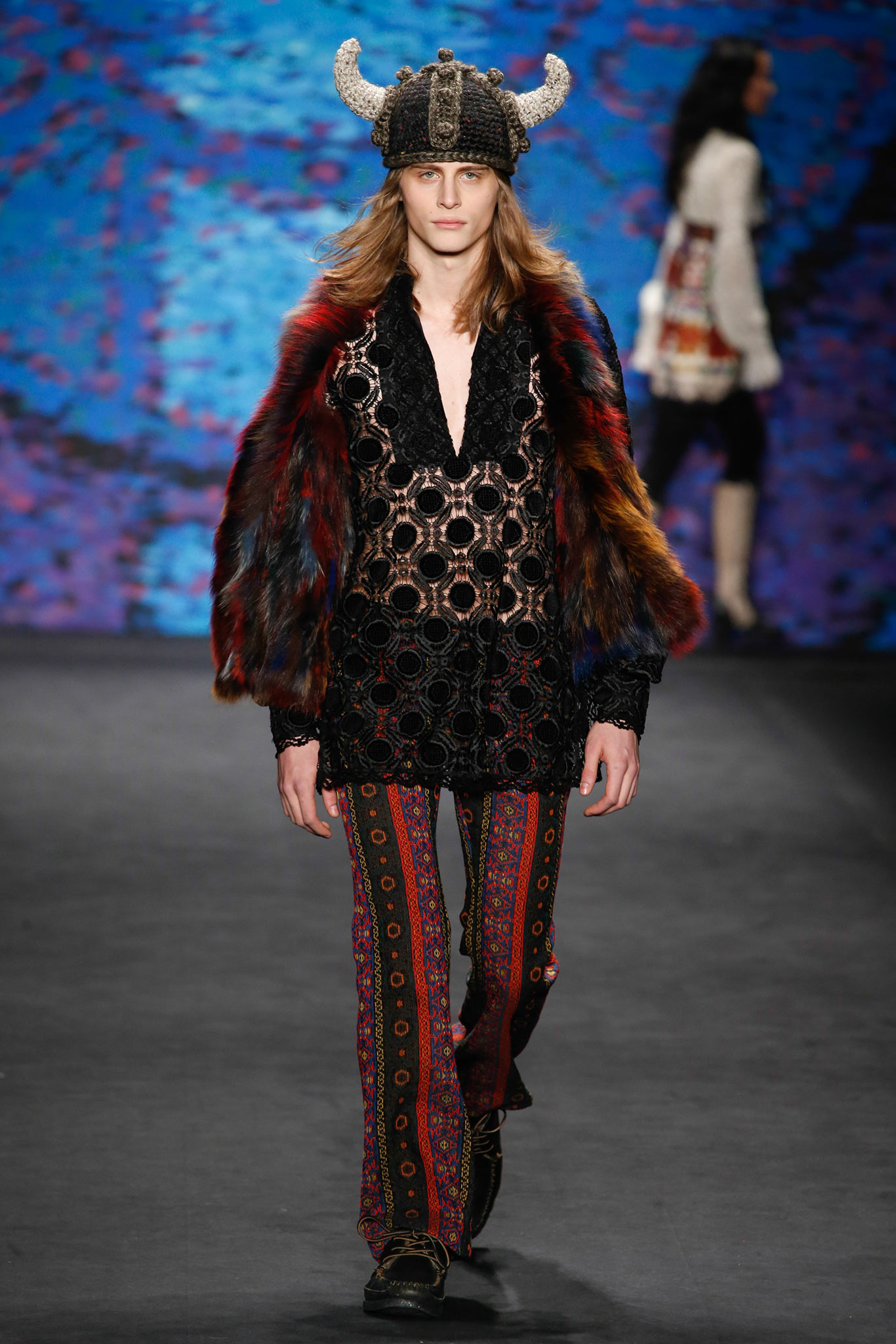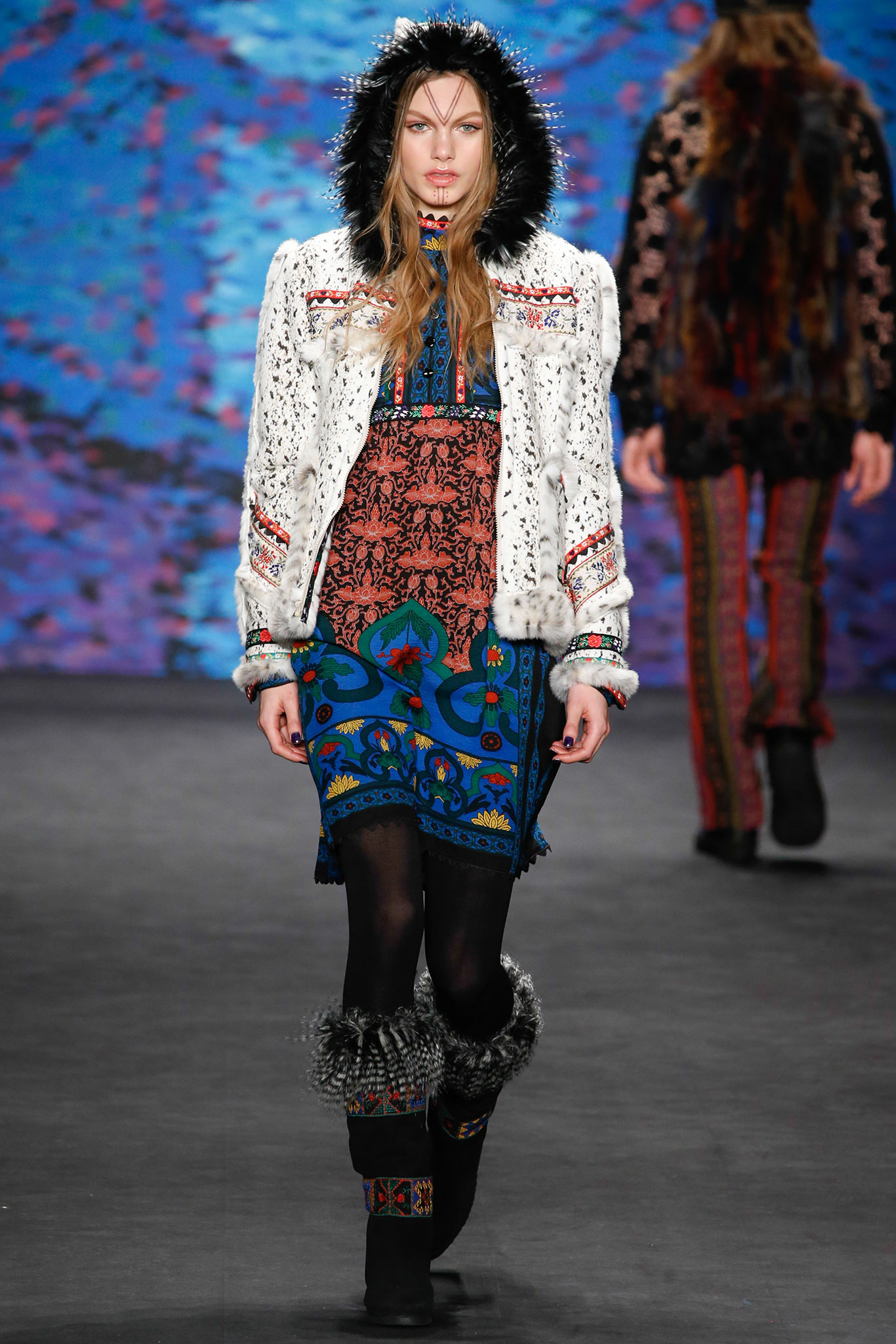 民俗掛毯,刺繡,鉤編和版畫成為她這季的創作元素 把外蒙古民族與野性的蓬亂感結合. 繼續創造Anna Sui女王傳奇設計.