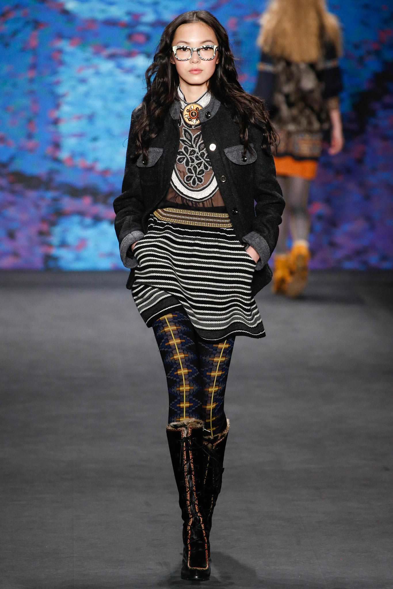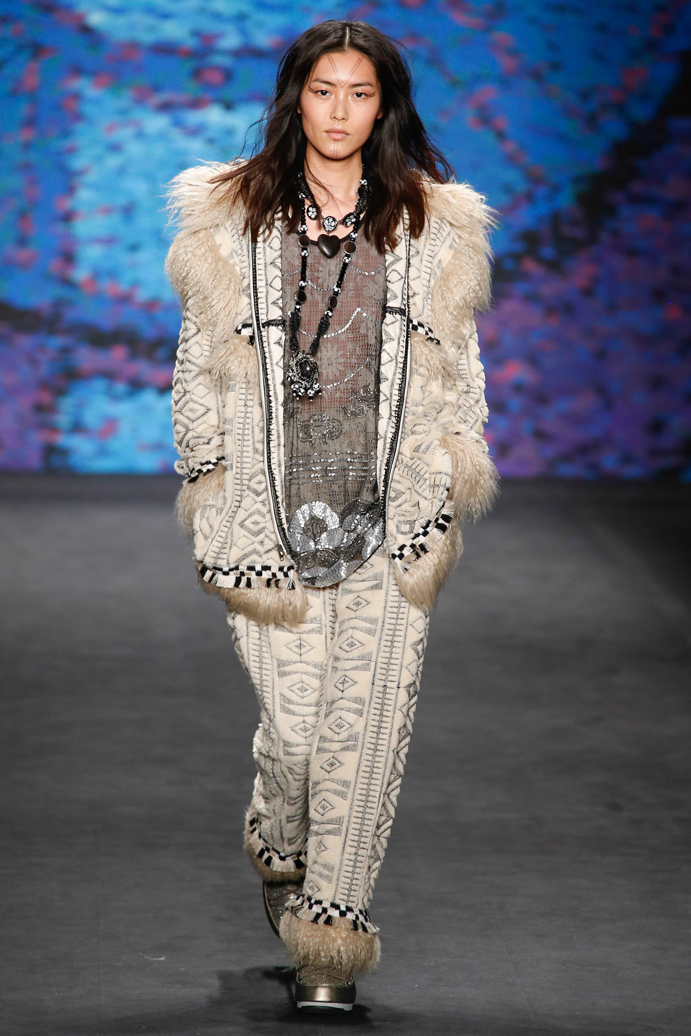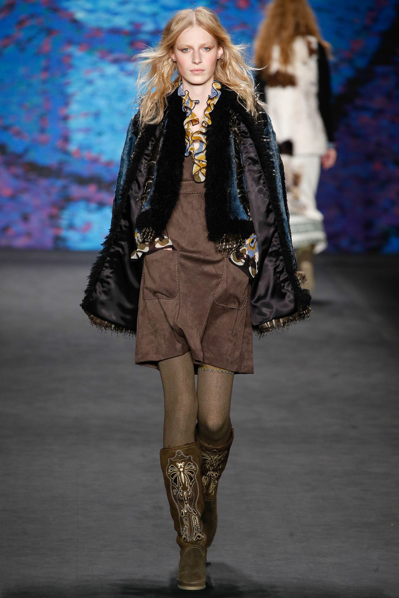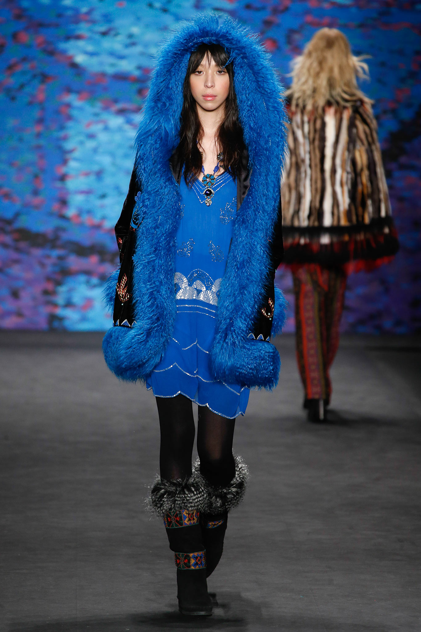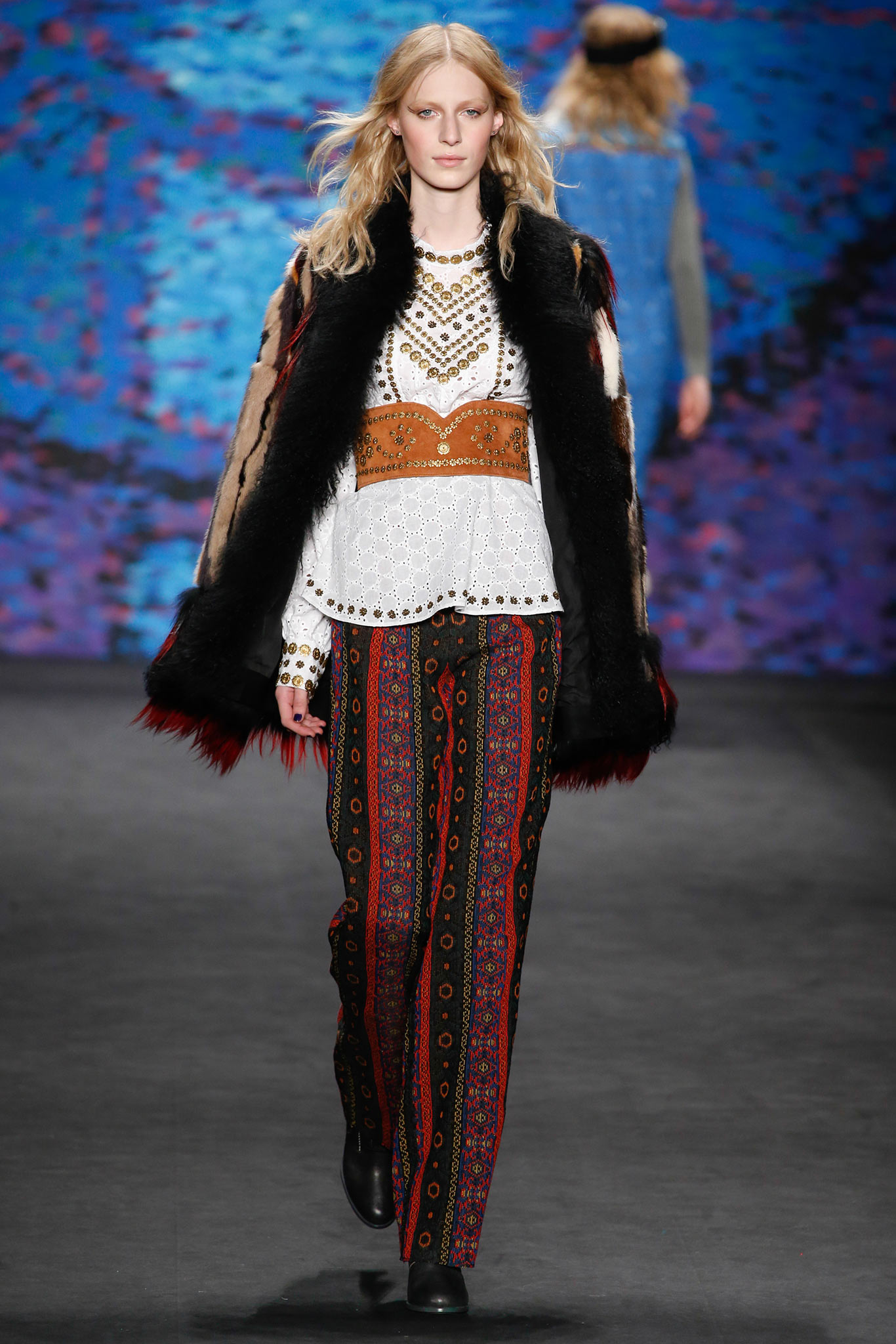 民俗掛毯,刺繡,鉤編和版畫成為她這季的創作元素 把外蒙古民族與野性的蓬亂感結合. 繼續創造Anna Sui女王傳奇設計.
