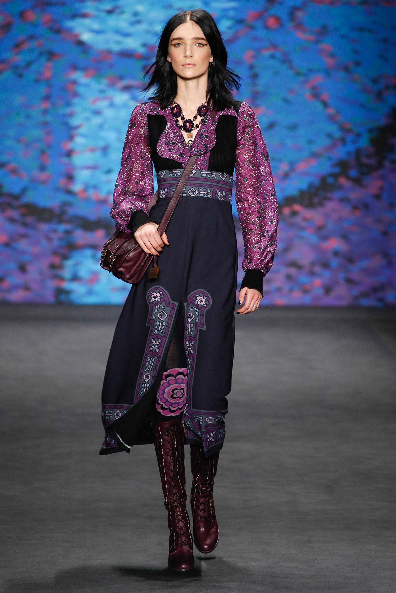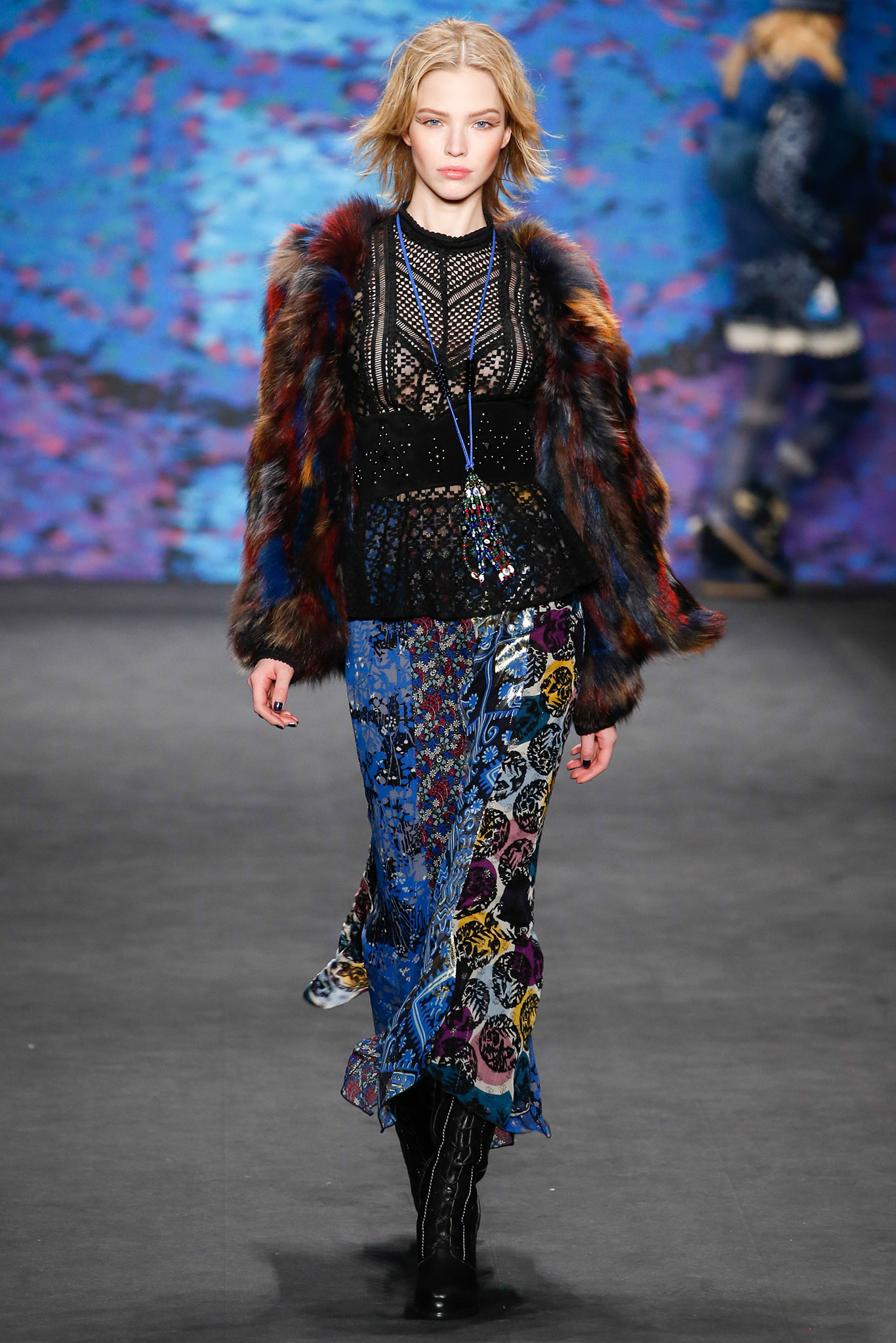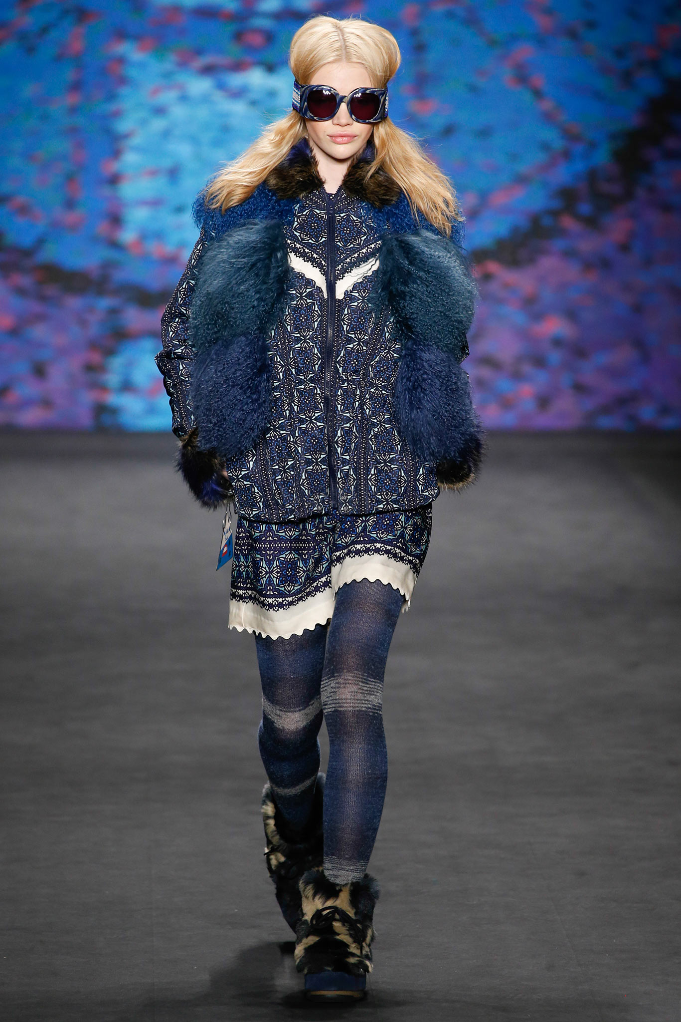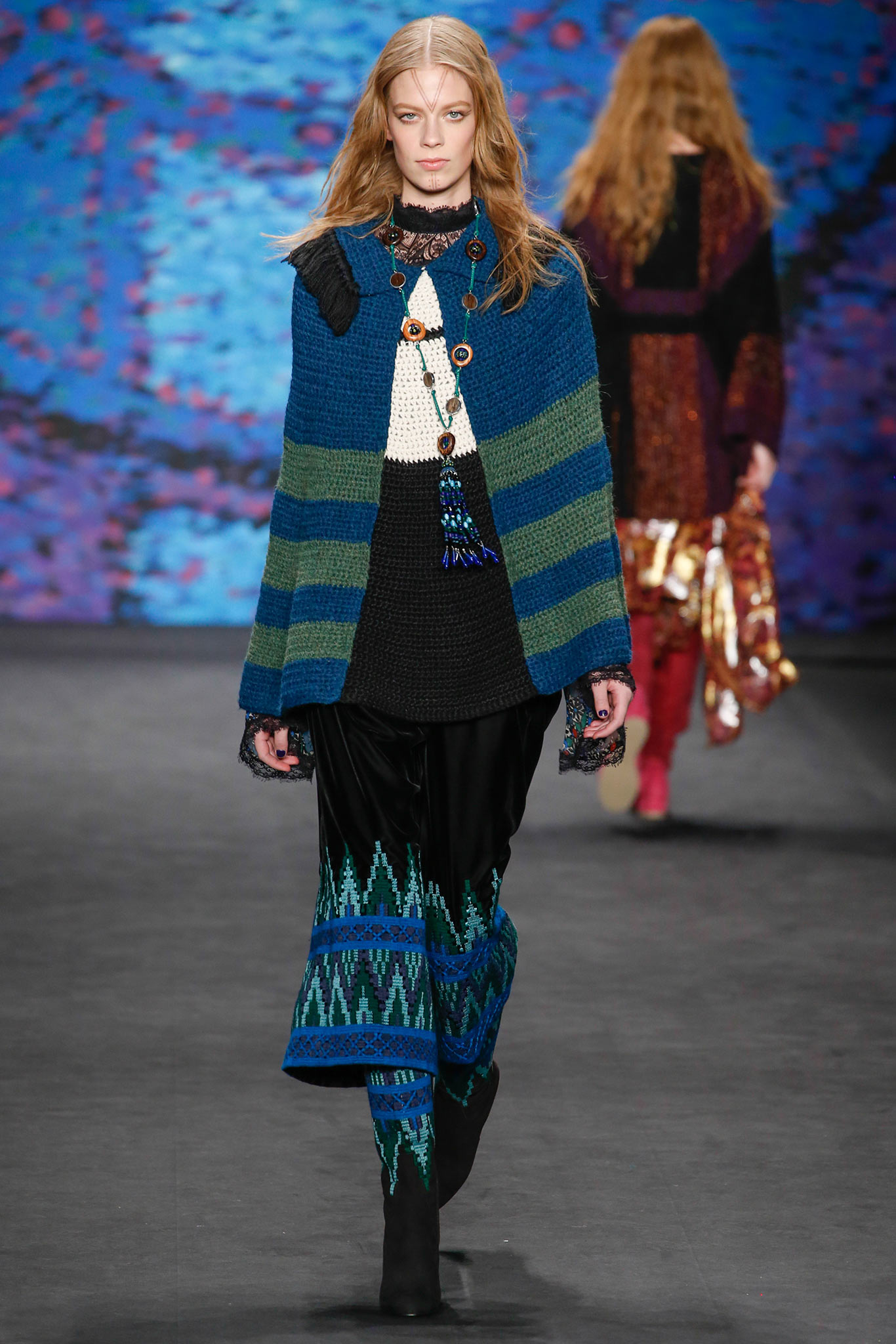 民俗掛毯,刺繡,鉤編和版畫成為她這季的創作元素 把外蒙古民族與野性的蓬亂感結合. 繼續創造Anna Sui女王傳奇設計.