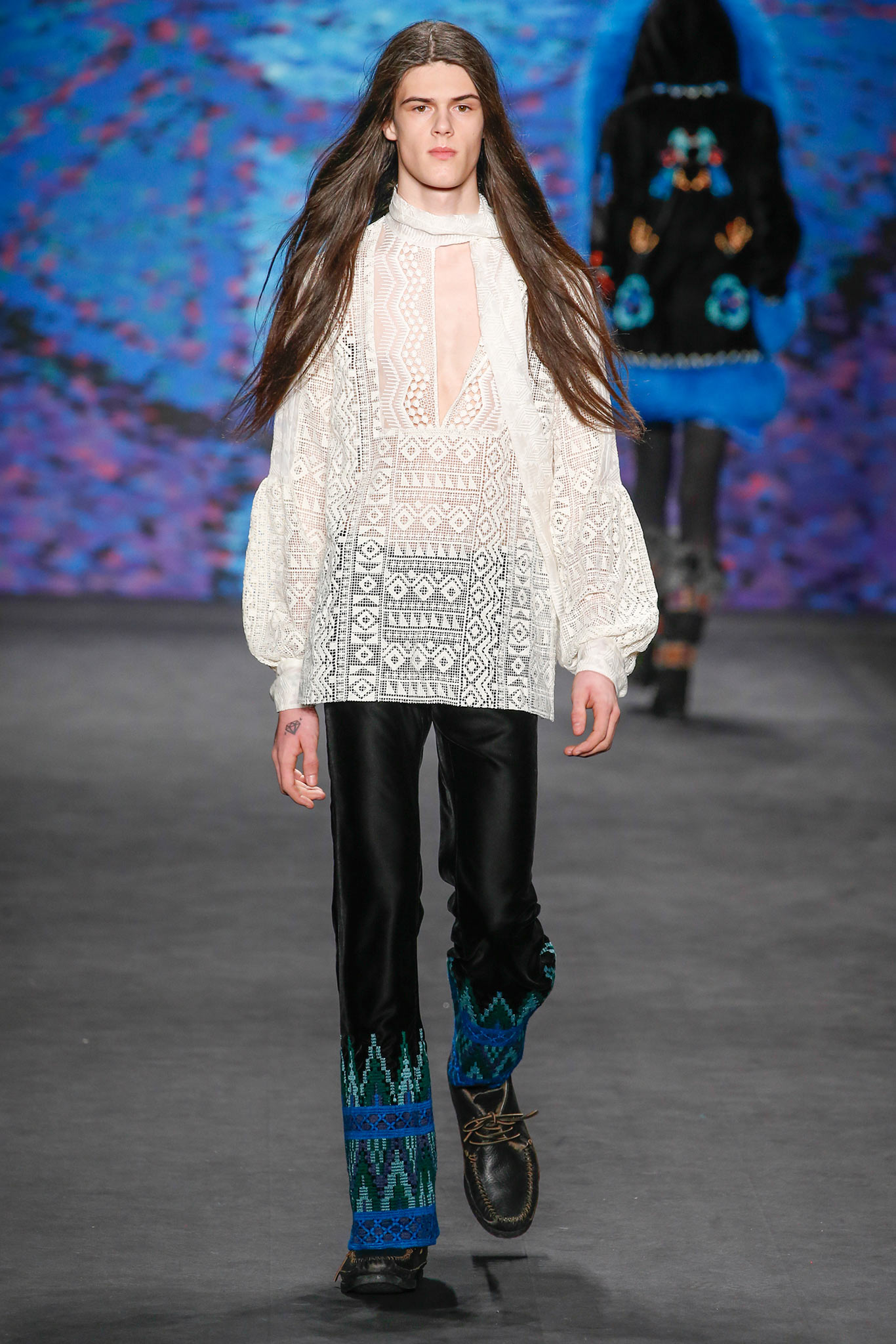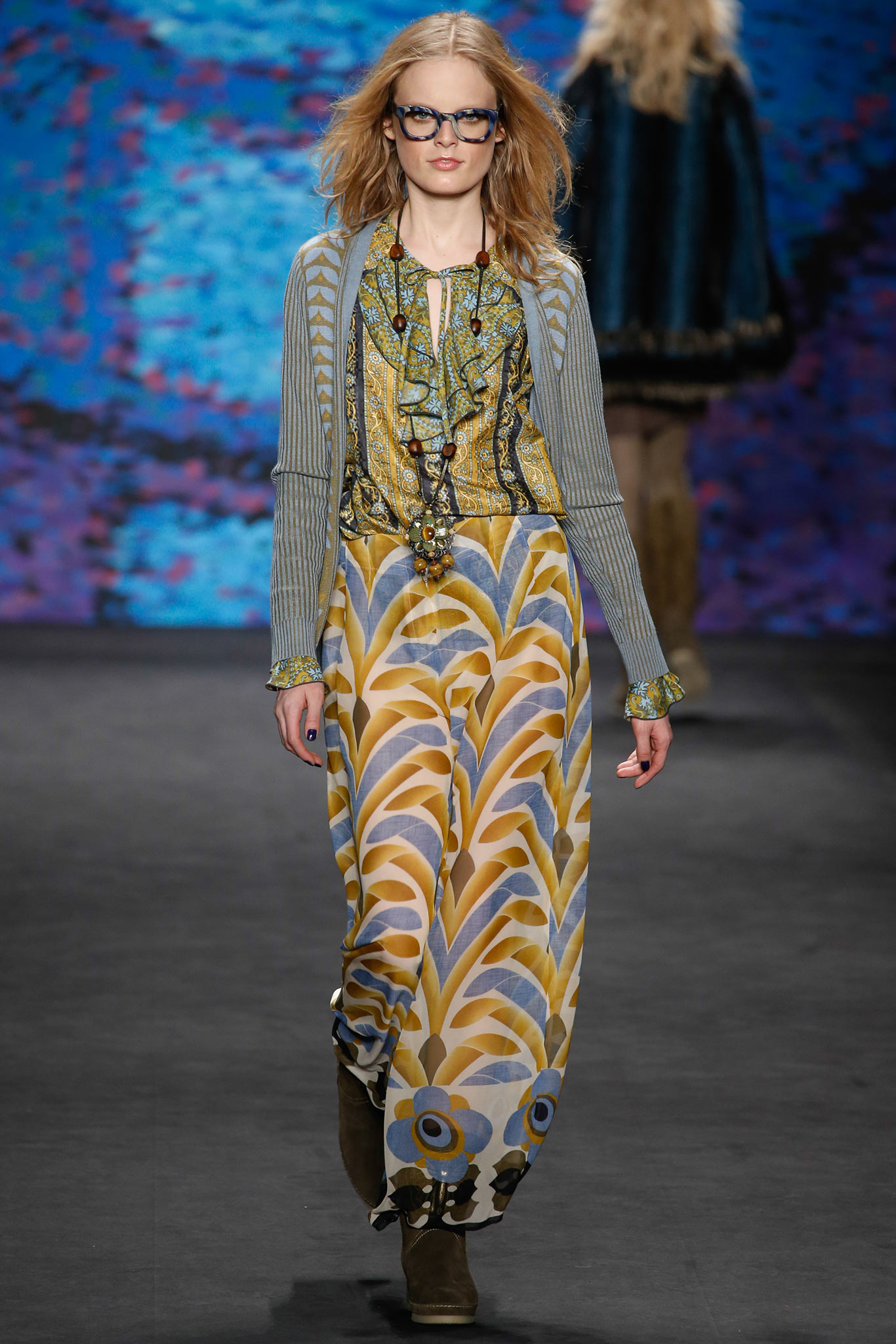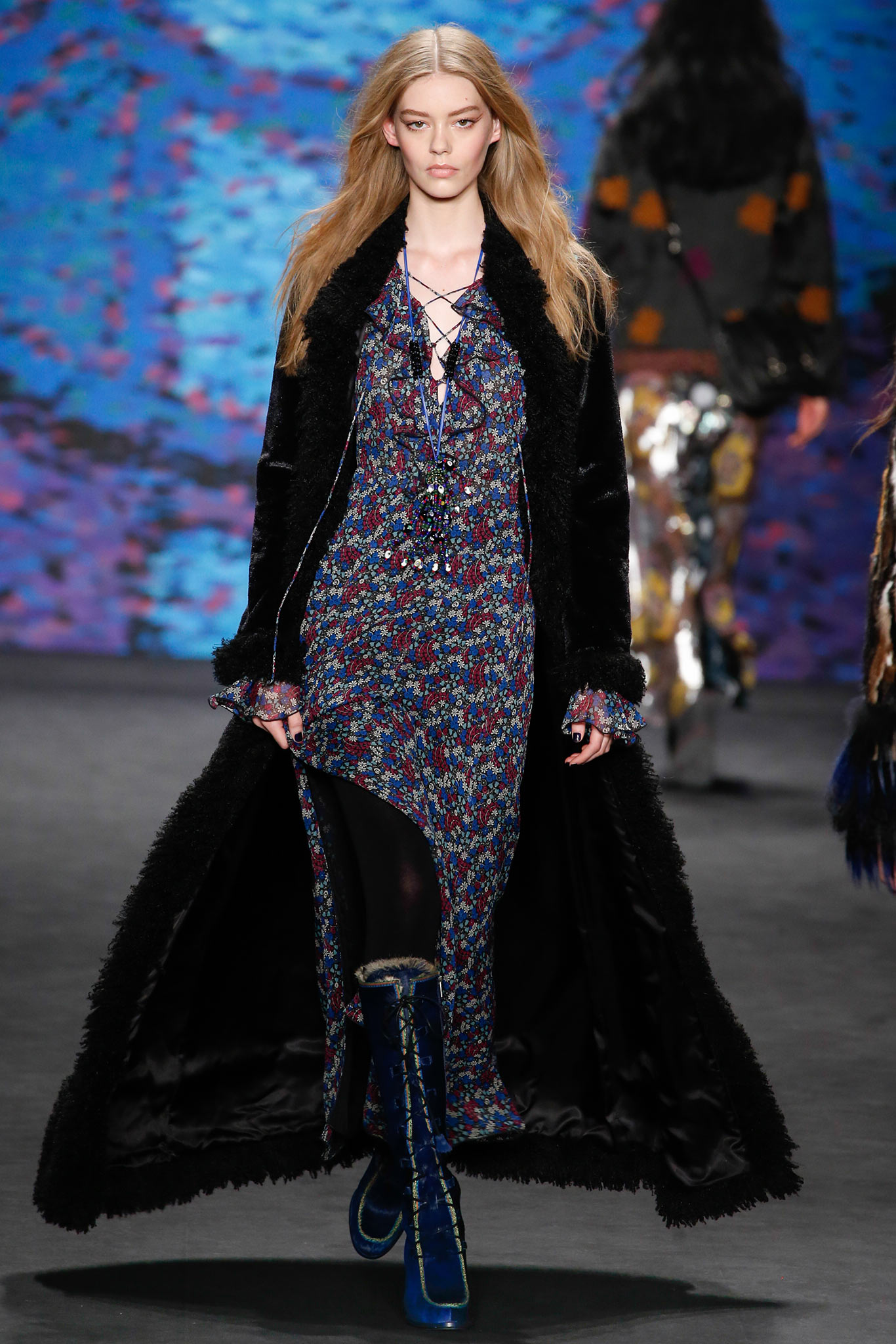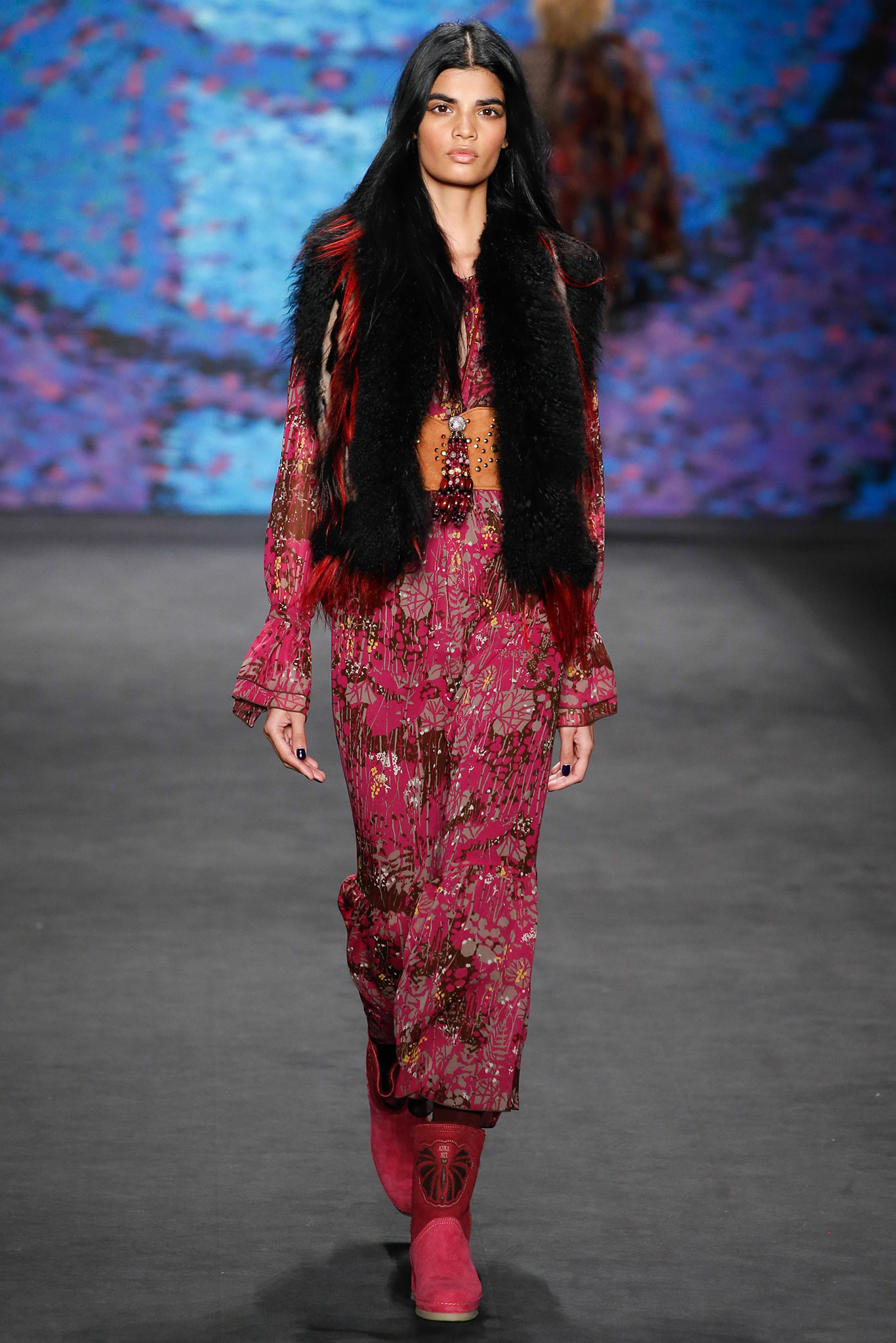 民俗掛毯,刺繡,鉤編和版畫成為她這季的創作元素 把外蒙古民族與野性的蓬亂感結合. 繼續創造Anna Sui女王傳奇設計.