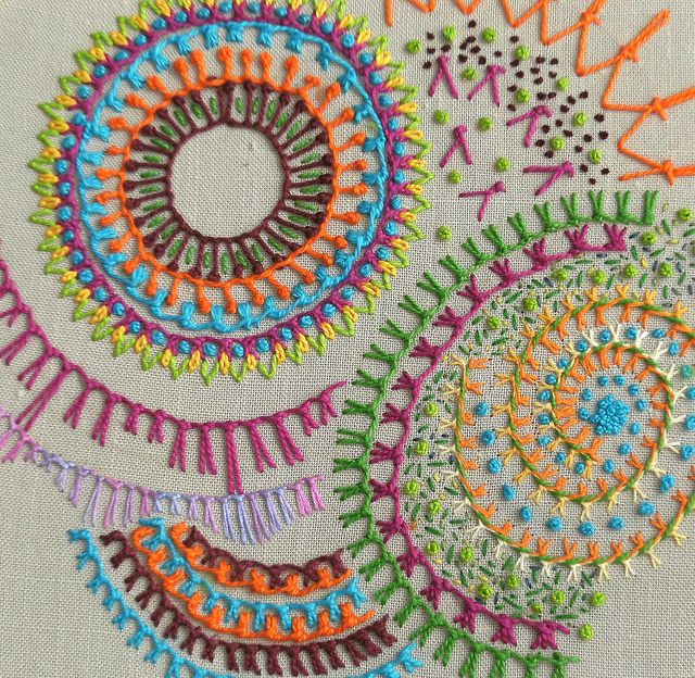 國外刺繡達人的作品欣賞 http://smockerytast.blogspot.tw/2010/04/tast-2010-knotted-buttonhole-stitch.html