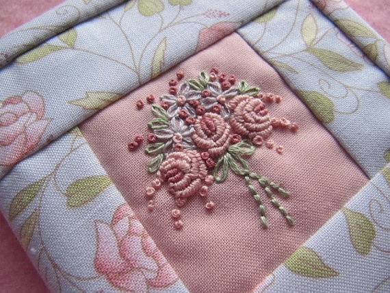 Needlebook embellished with bullion roses