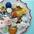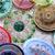 red-tipped dish with vintage buttons