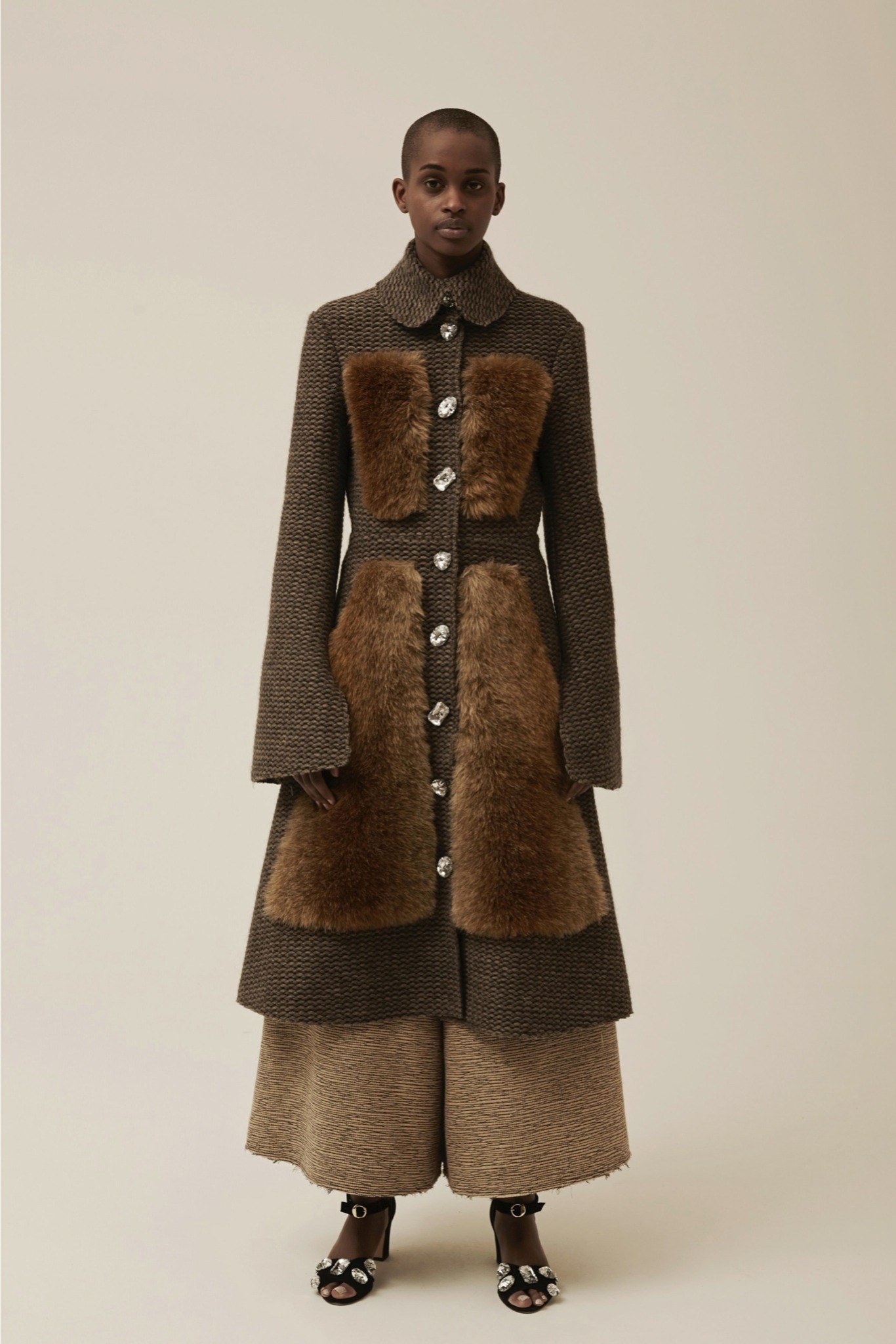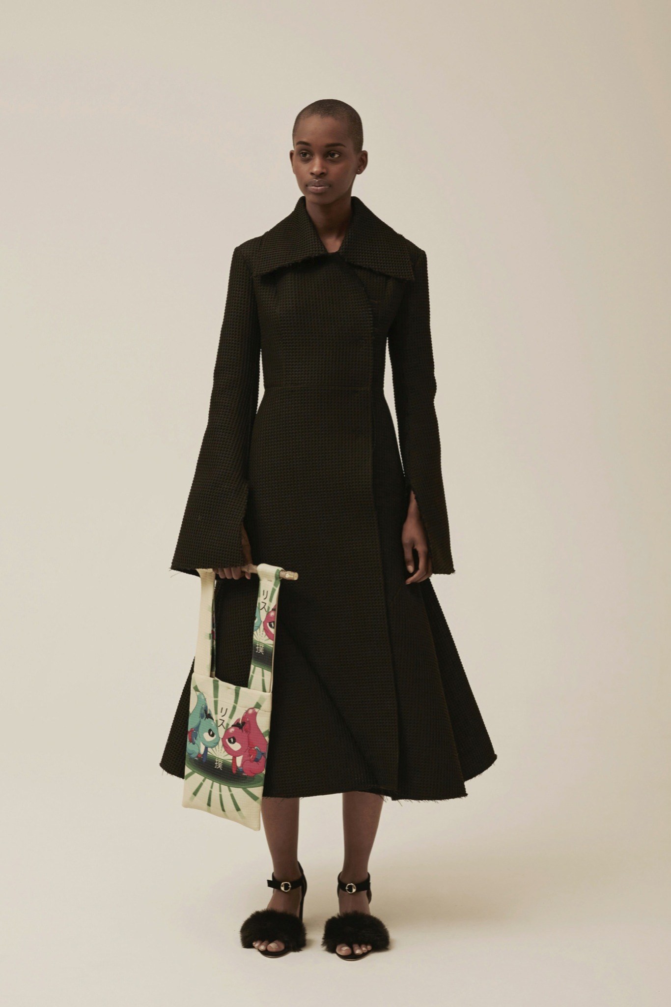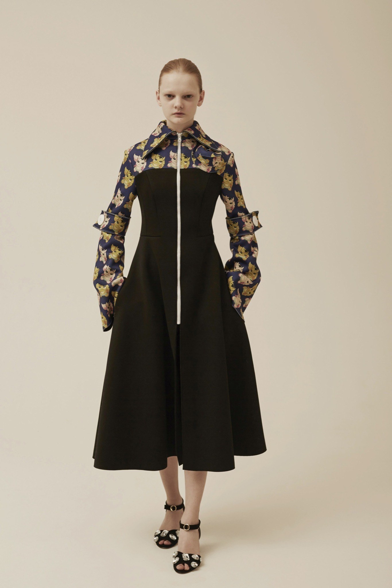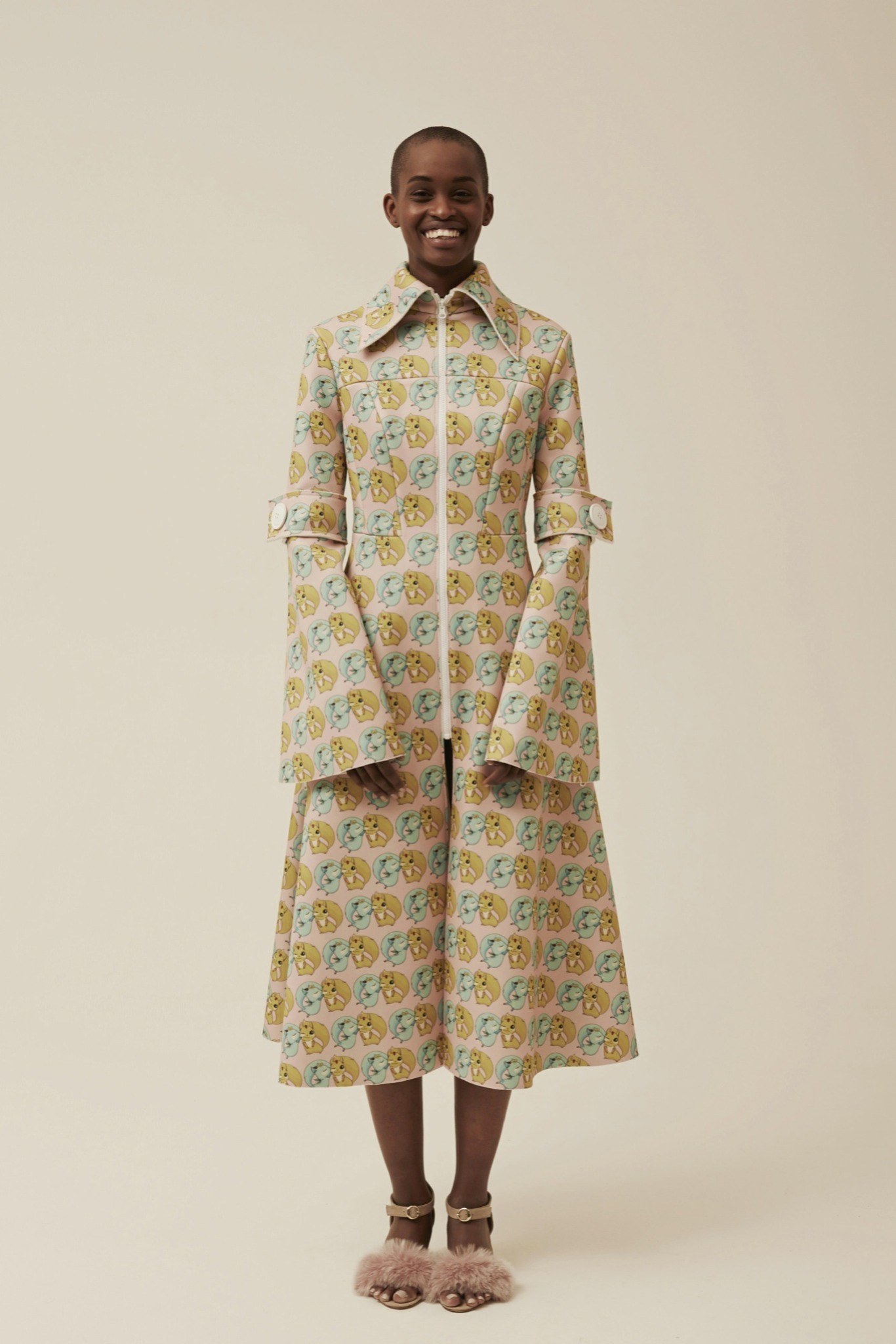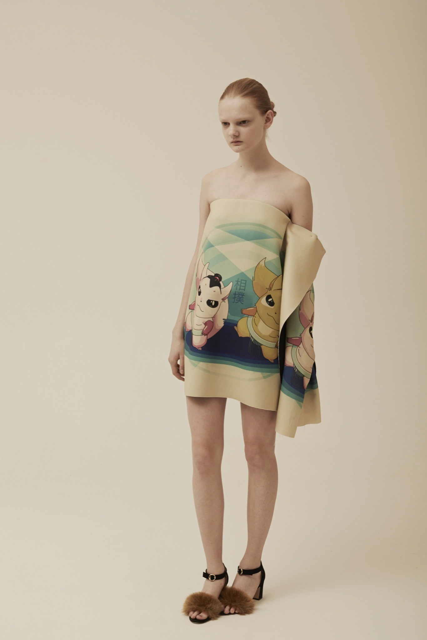 異素材的混搭風~有著70~80年代的色彩&外型 又混雜著星際大戰與神奇寶貝.皺褶 不對稱 有質地體積的布料 假毛皮 創造一種甜蜜卻又瘋狂的風格