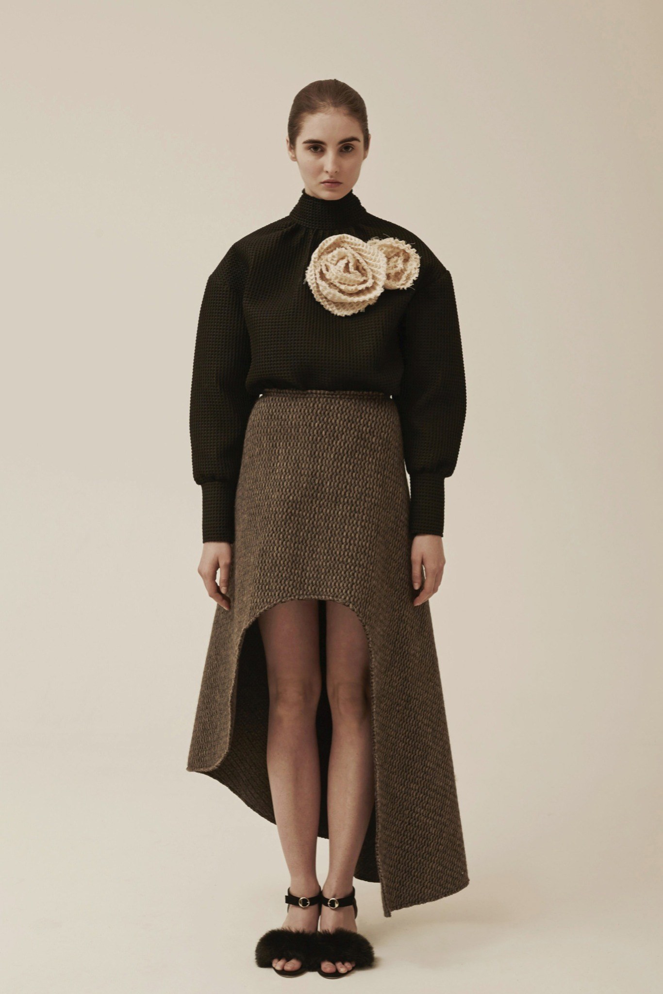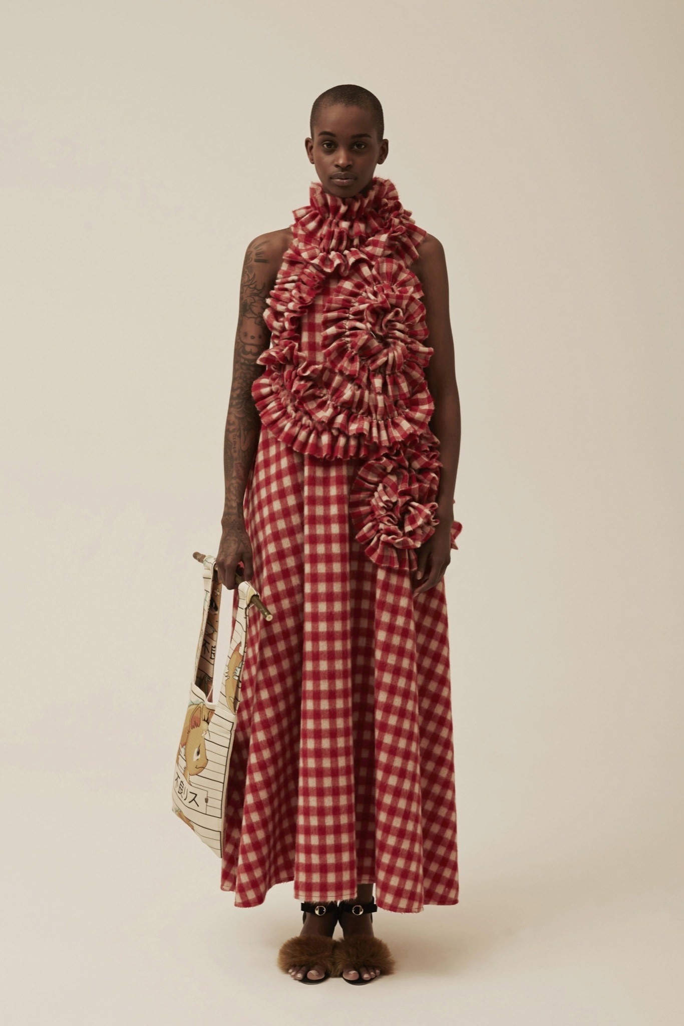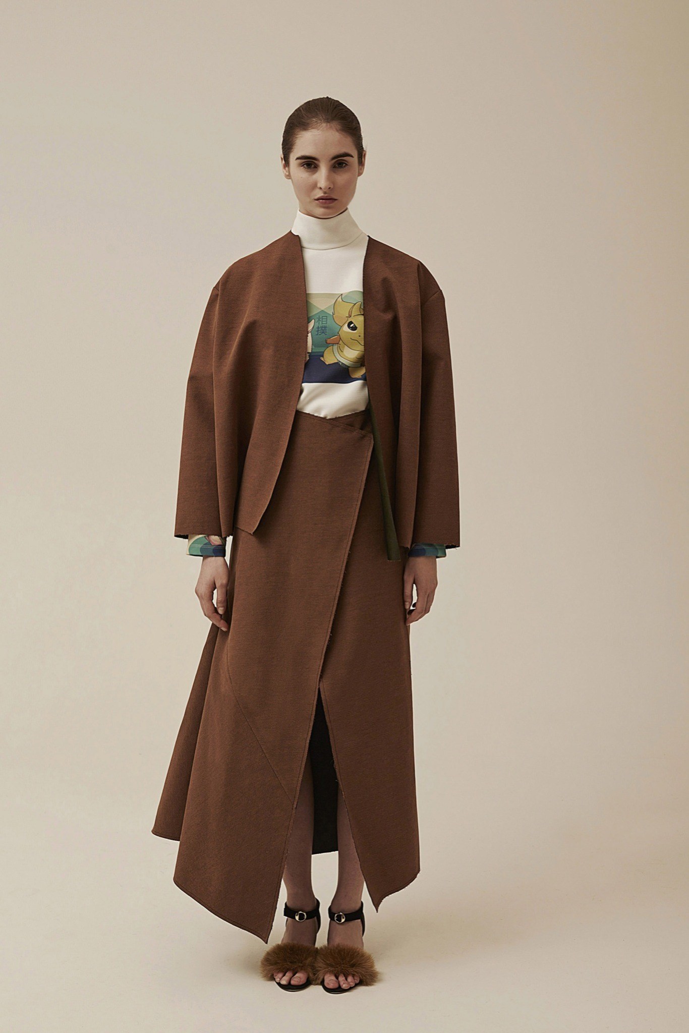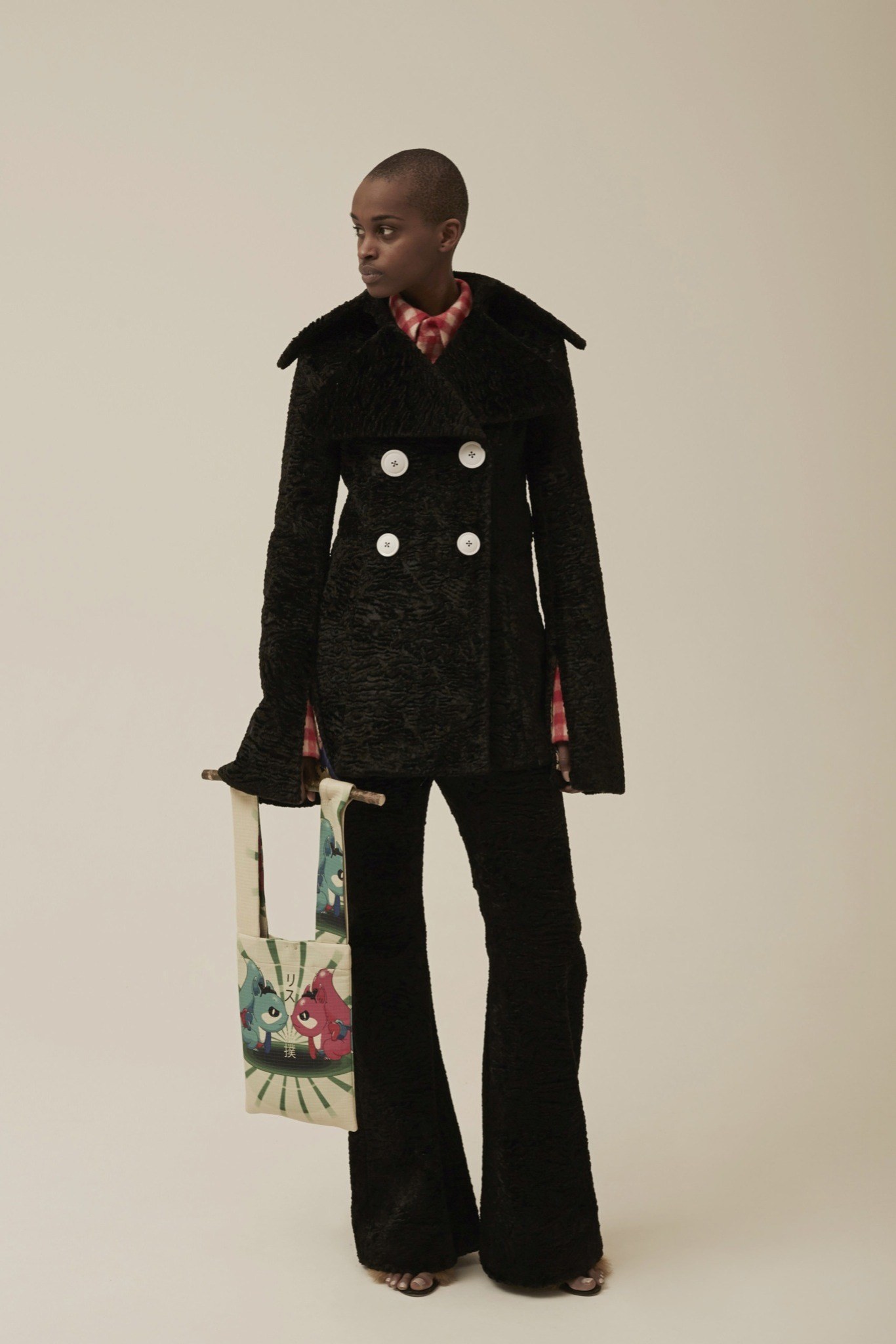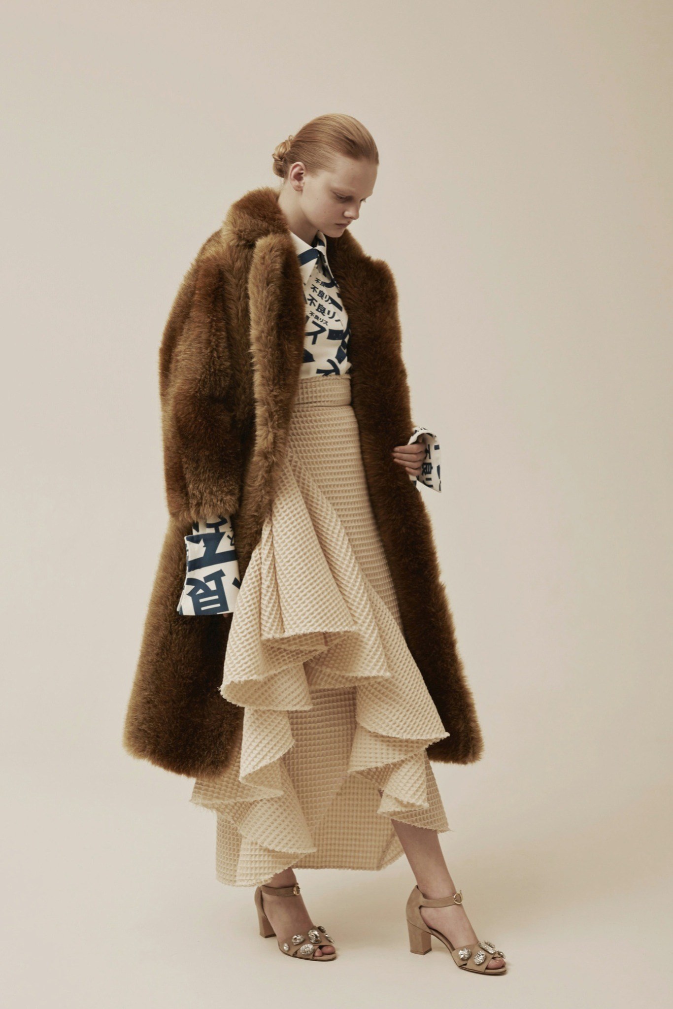 異素材的混搭風~有著70~80年代的色彩&外型 又混雜著星際大戰與神奇寶貝.皺褶 不對稱 有質地體積的布料 假毛皮 創造一種甜蜜卻又瘋狂的風格