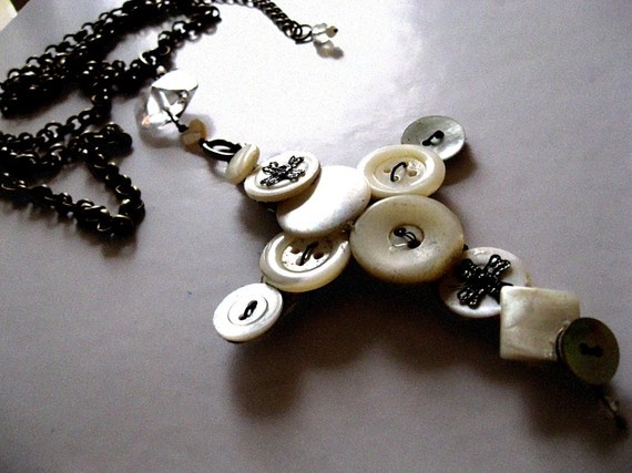 Button cross necklace