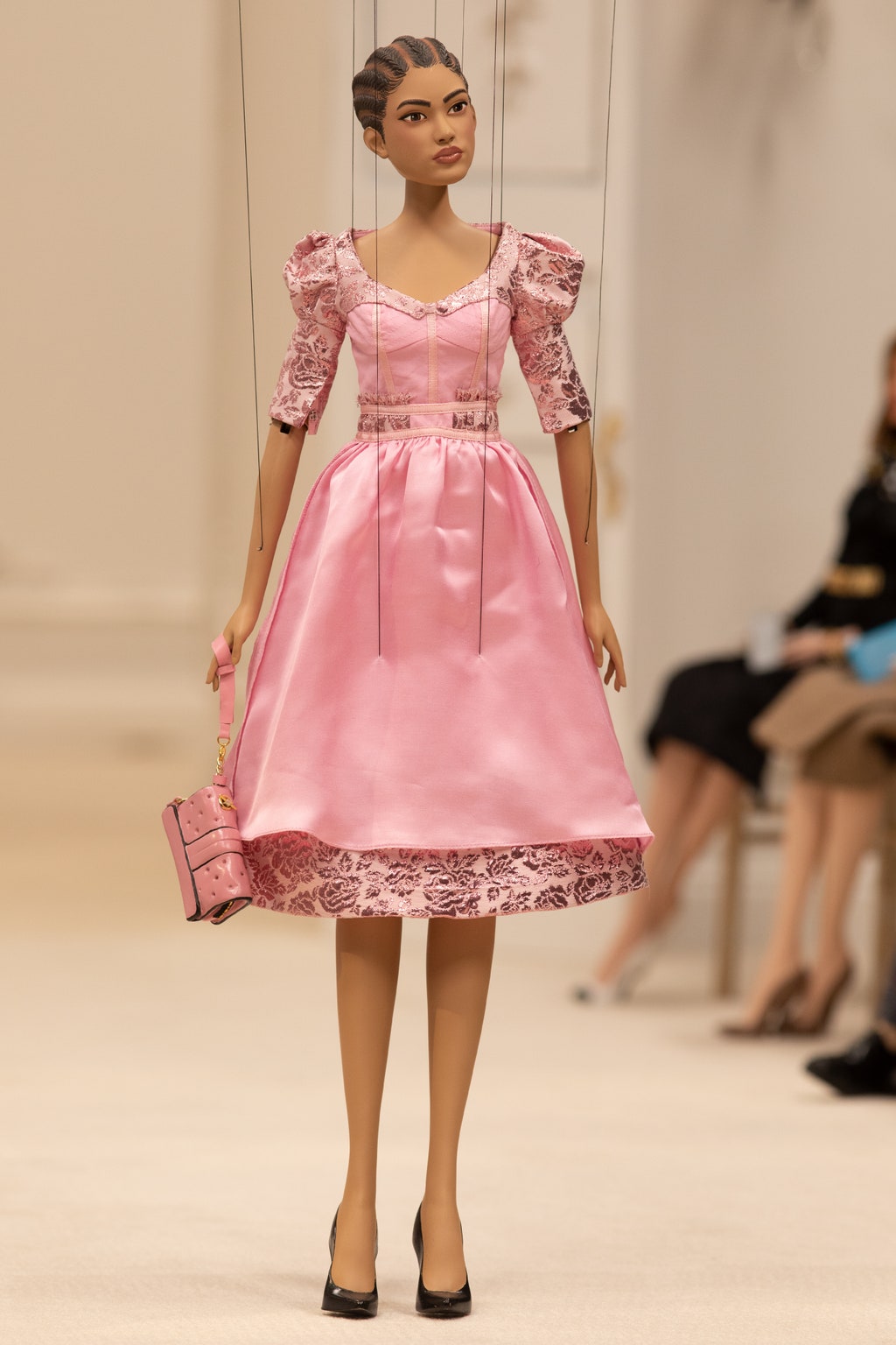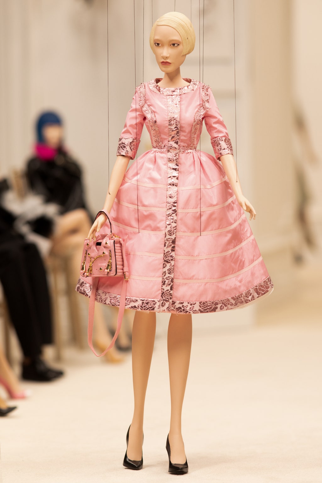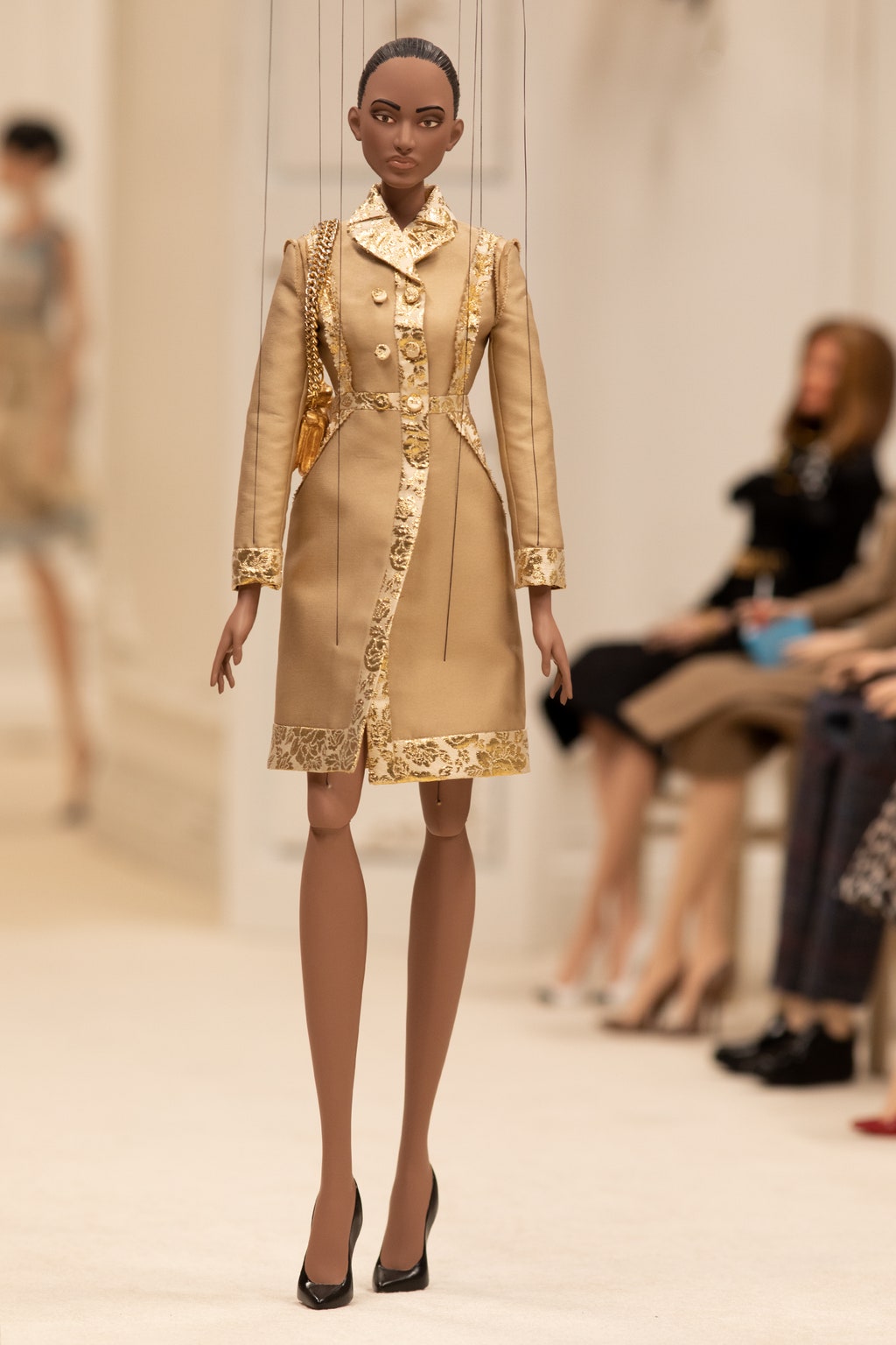 Moschino 2021春夏系列為我們帶來超乎想像的時尚世界!一場人偶時裝秀在眼前緩緩展開,不論是身著華服的人偶模特或是前排嘉賓,都將其服裝神韻捕捉的唯妙唯肖。 儘管為縮小的人偶尺寸,但其奢華精緻度勘比高級訂製服,緹花刺繡和羽毛燙鑽等細節都嶄露出精湛的工藝技術。