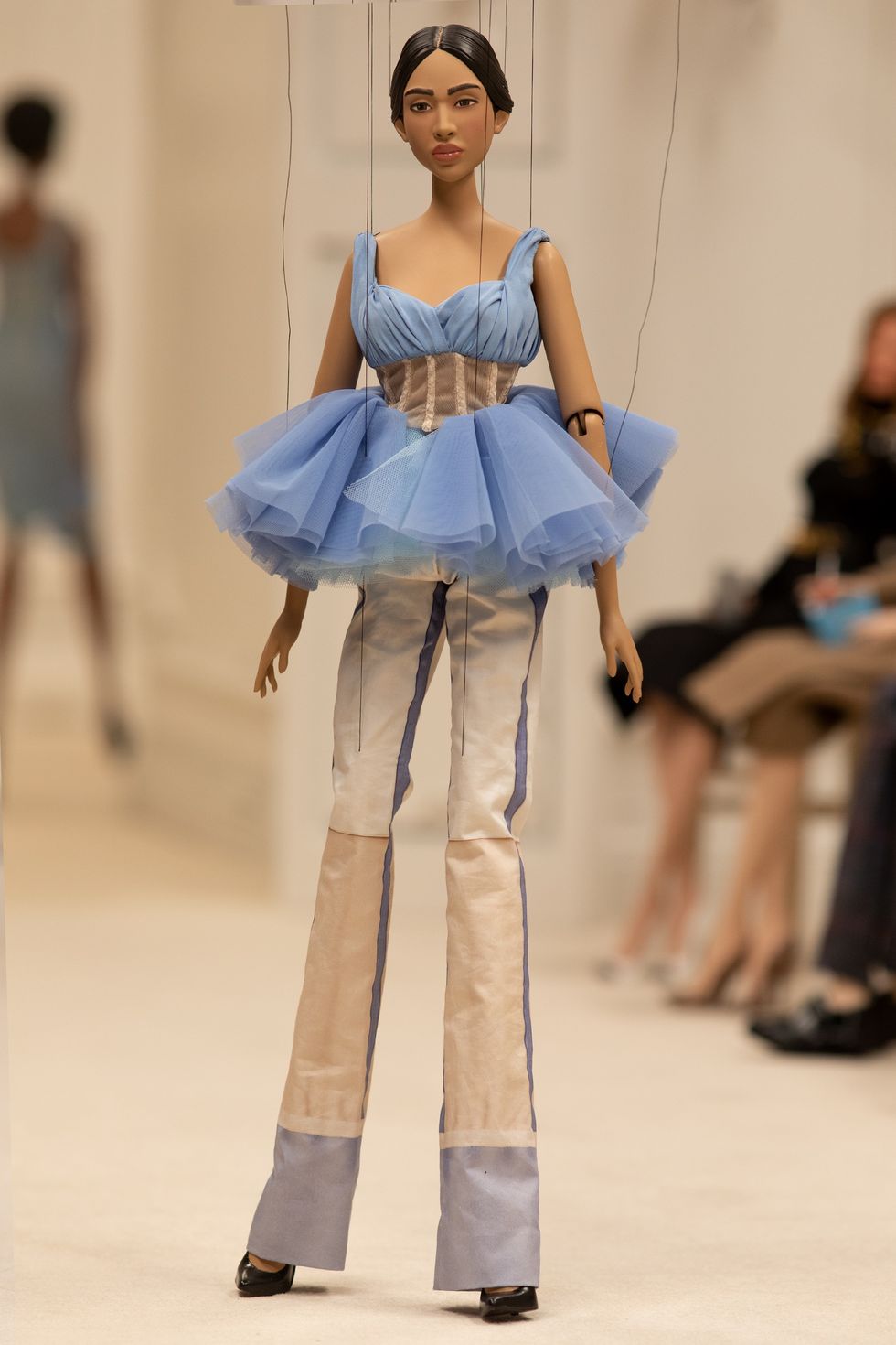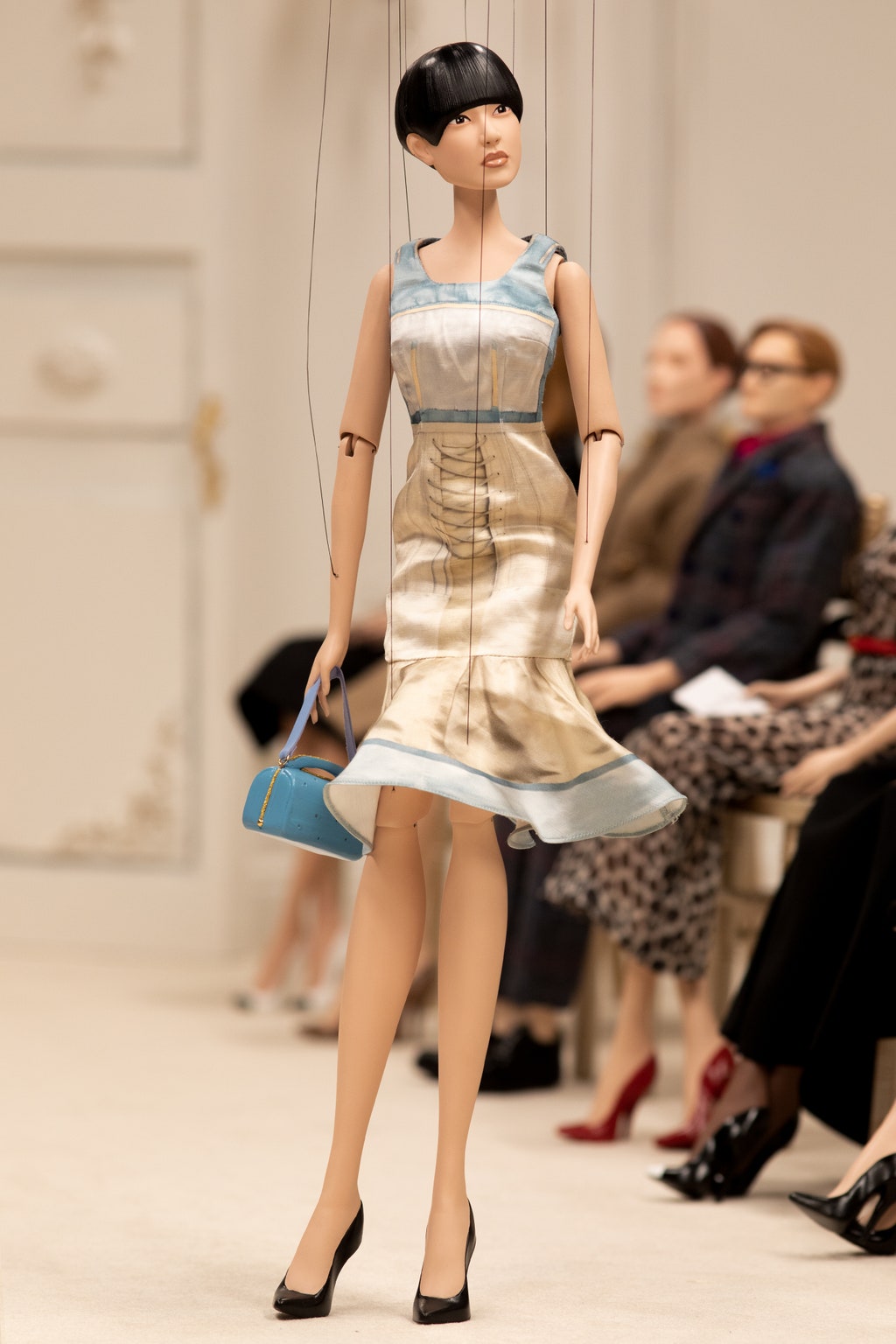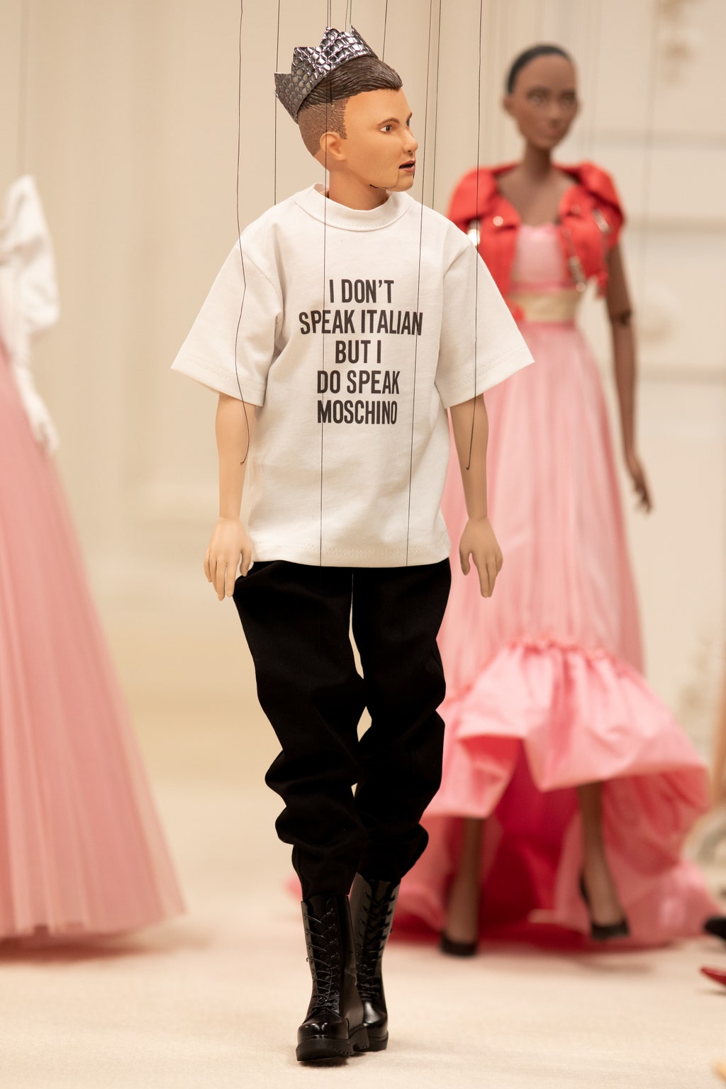 Moschino 2021春夏系列為我們帶來超乎想像的時尚世界!一場人偶時裝秀在眼前緩緩展開,不論是身著華服的人偶模特或是前排嘉賓,都將其服裝神韻捕捉的唯妙唯肖。 儘管為縮小的人偶尺寸,但其奢華精緻度勘比高級訂製服,緹花刺繡和羽毛燙鑽等細節都嶄露出精湛的工藝技術。
