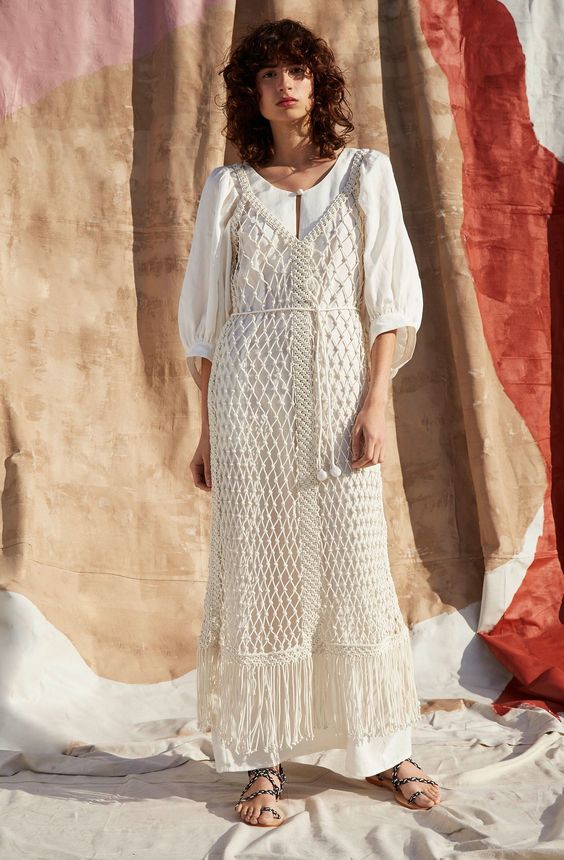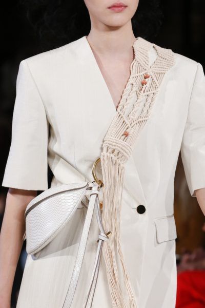 可持續性、升級再造、環保關注的崛起推動✂手工藝🧵美學發展,許多品牌將Macrame工藝與服飾結合。藉由繩結變化和排列方式營造不同氛圍,細膩的手法為造型融入了濃厚的手工藝格調。 Macrame小知識 繩結編織Macrame 是一種古老的編織法,不需使用勾針、棒針、梭織機等工具,單純用雙手將繩子編織成結的一種藝術。 近年來Macrame又再度崛起, 許多植栽、居家擺設和服飾配件等,都能看到Macrame元素運用其中。 #傳遞知識的副料大學