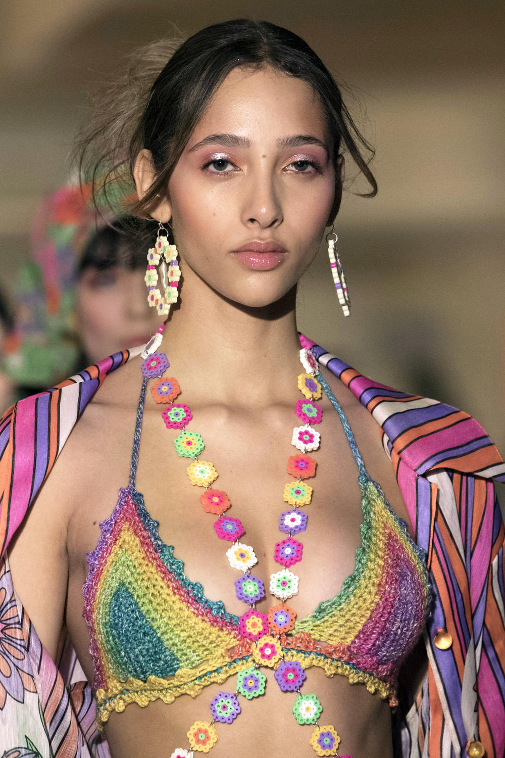 富有表現力和趣味性的DIY手工裝飾成為服裝配飾的流行趨勢,使用多彩繽紛的珠串或編織成小花珠飾,為造型提供振奮歡愉的趣味玩心。