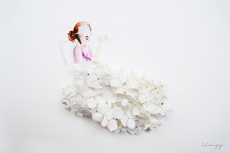 Limzy是位新加坡馬來西亞視覺藝術家。一個美術老師。每天下班後,她使用各種在她的房間裡,生活中發現的小東西來描繪她的人物。從食品到鮮花,鉛筆棉花。她讓作品充滿故事與靈性。www.lovelimzy.blogspot.com www.instagram.com / lovelimzy
