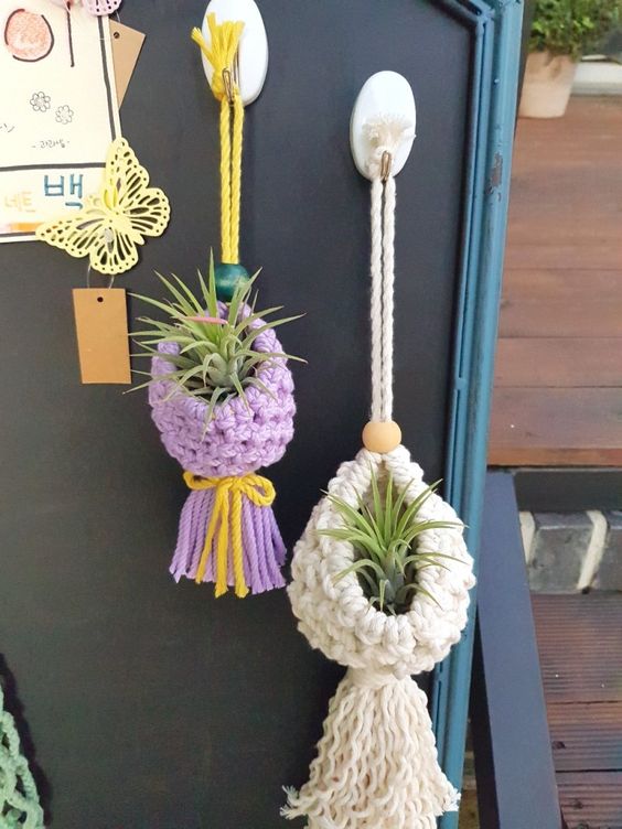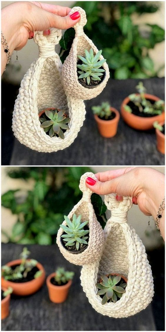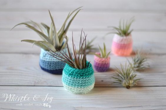 園藝 編織盆 是有用棒針去勾出來的 超適合最近很流行的 空氣植物 擺設 快來看網路高手們的編織盆的作品吧 圖片出處>https://www.pinterest.com