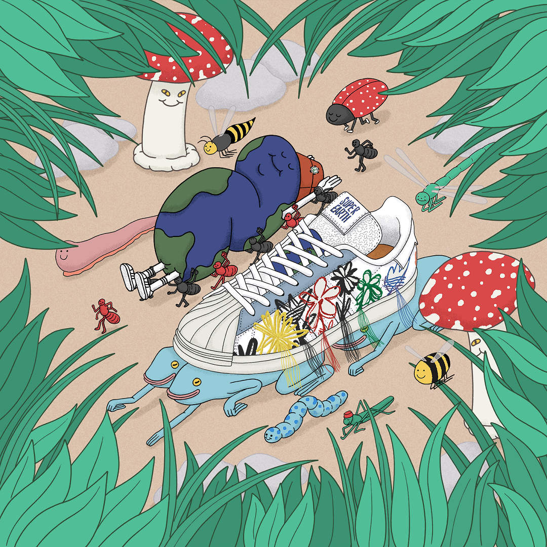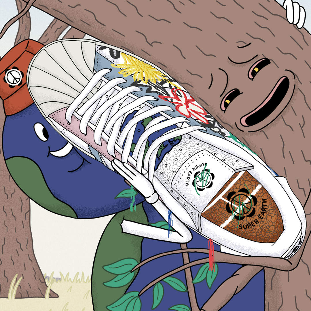 adidas Originals與Sean Wotherspoon聯手打造50周年限定款純素鞋款。 Sean本身為純素主義者,他現在將這個理念也帶入設計,以環保永續概念推出“ Super Earth”系列,從鞋身、鞋底到鞋帶,100%皆由可回收材質製成。鞋身以刺繡花朵為設計主軸,鞋舌印有地球印花與標語,細膩巧思貫穿永續風尚的理念。 傳遞知識的 #副料大學