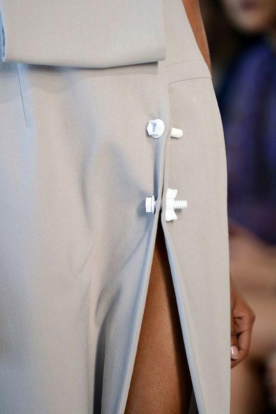 一般服裝上用於閉合功能的配件非鈕扣、拉鍊莫屬了,不過也有許多異想天開的設計師看膩了平淡的裝飾,發揮創意將生活中常見的門鎖、別針、螺絲等五金零件運用在服裝單品上,打造別出心意的裝飾扣具,讓造型更加突出且獨具特色! #傳遞知識的副料大學