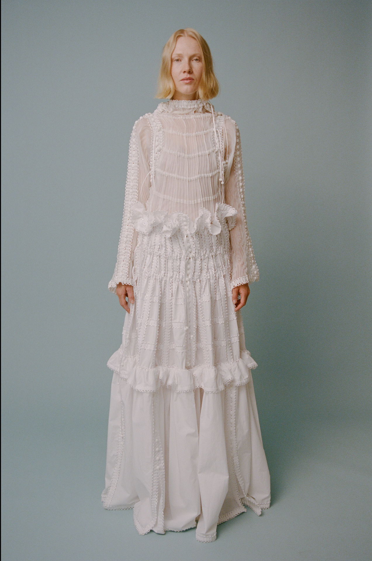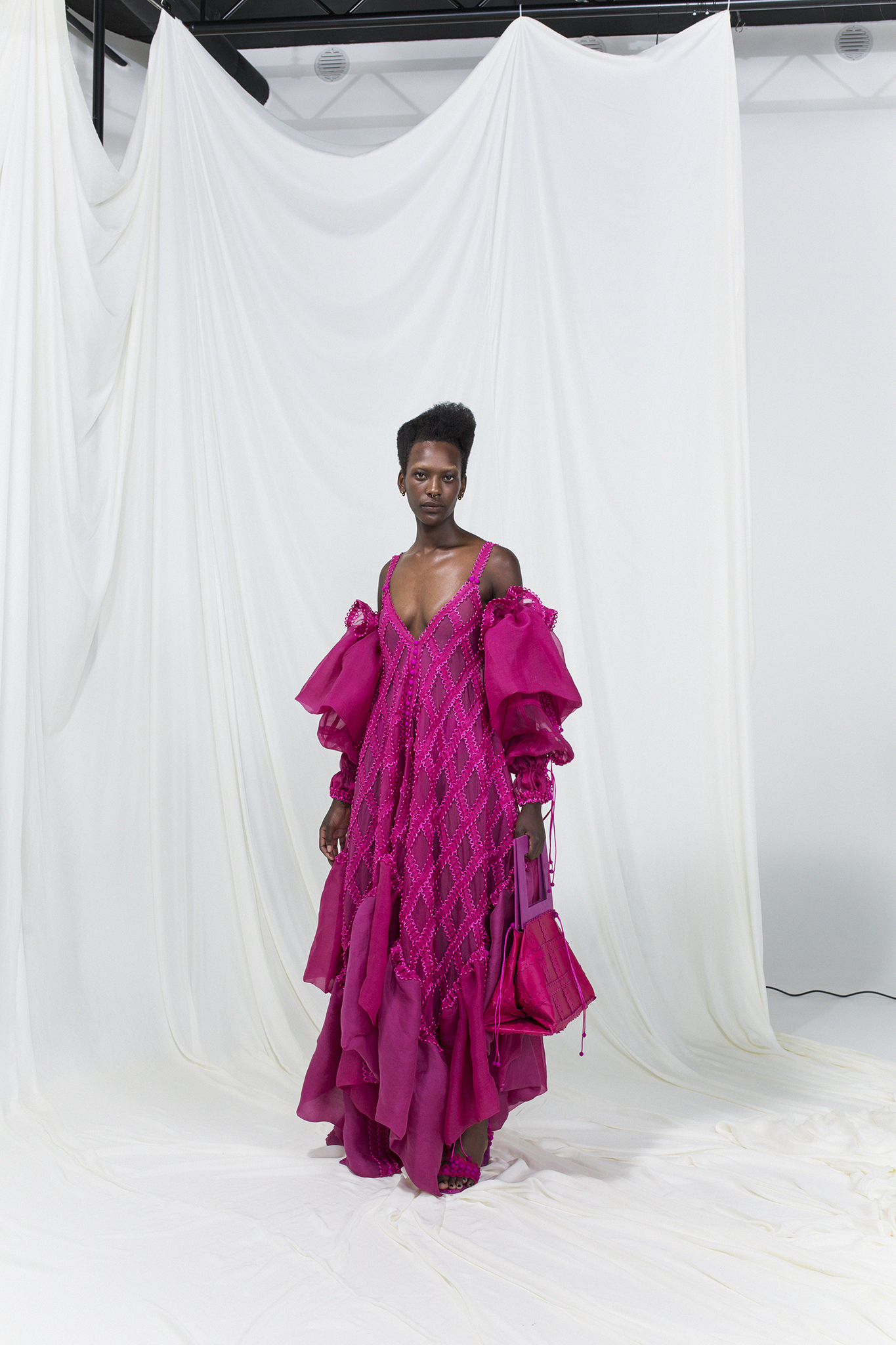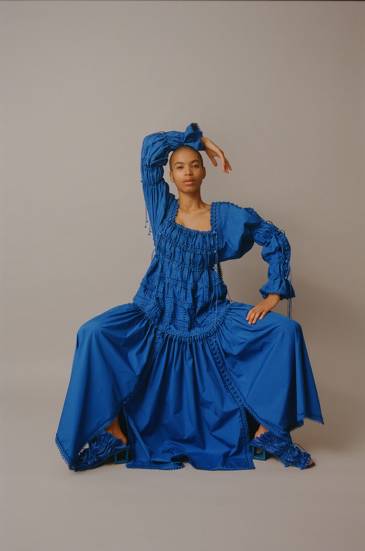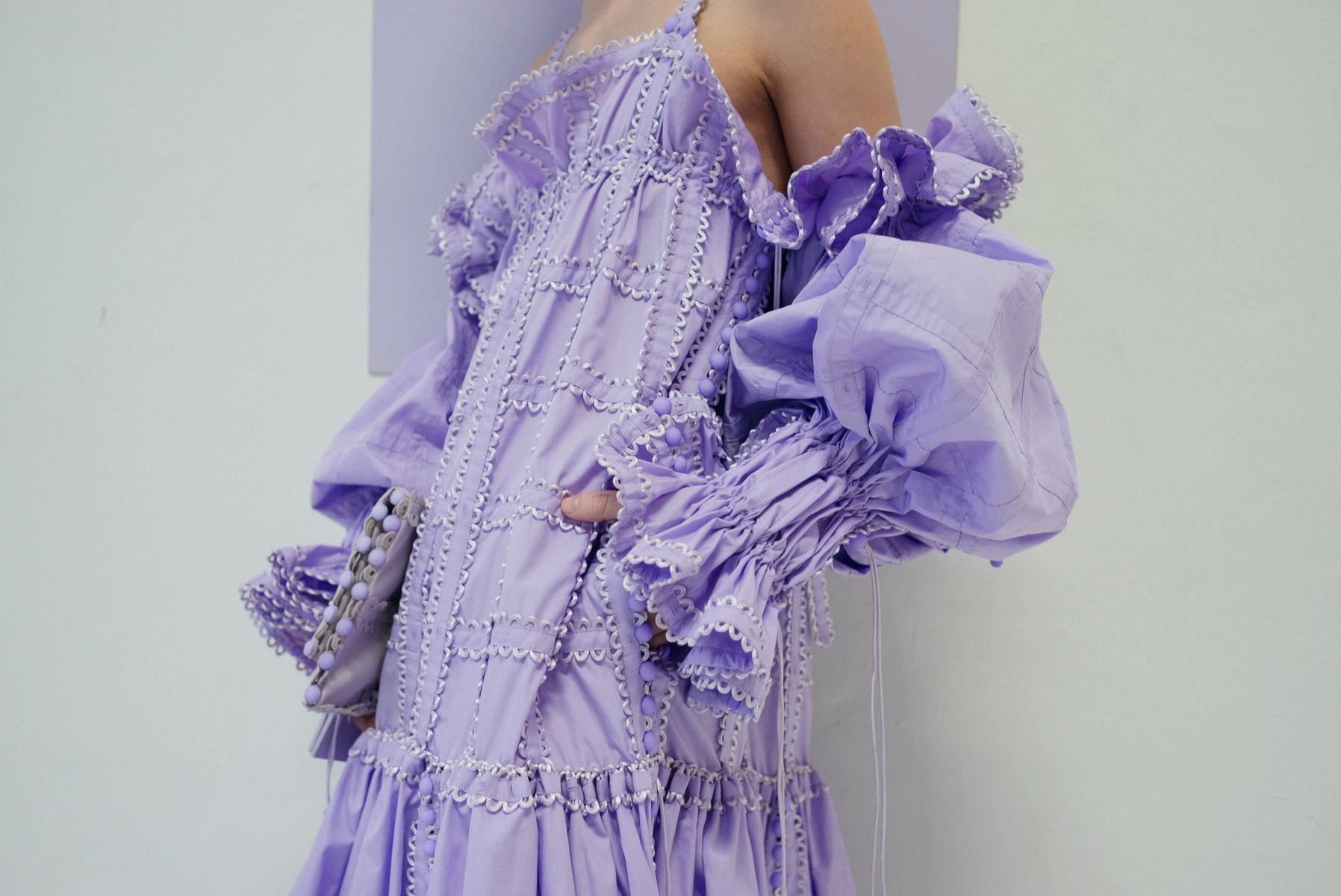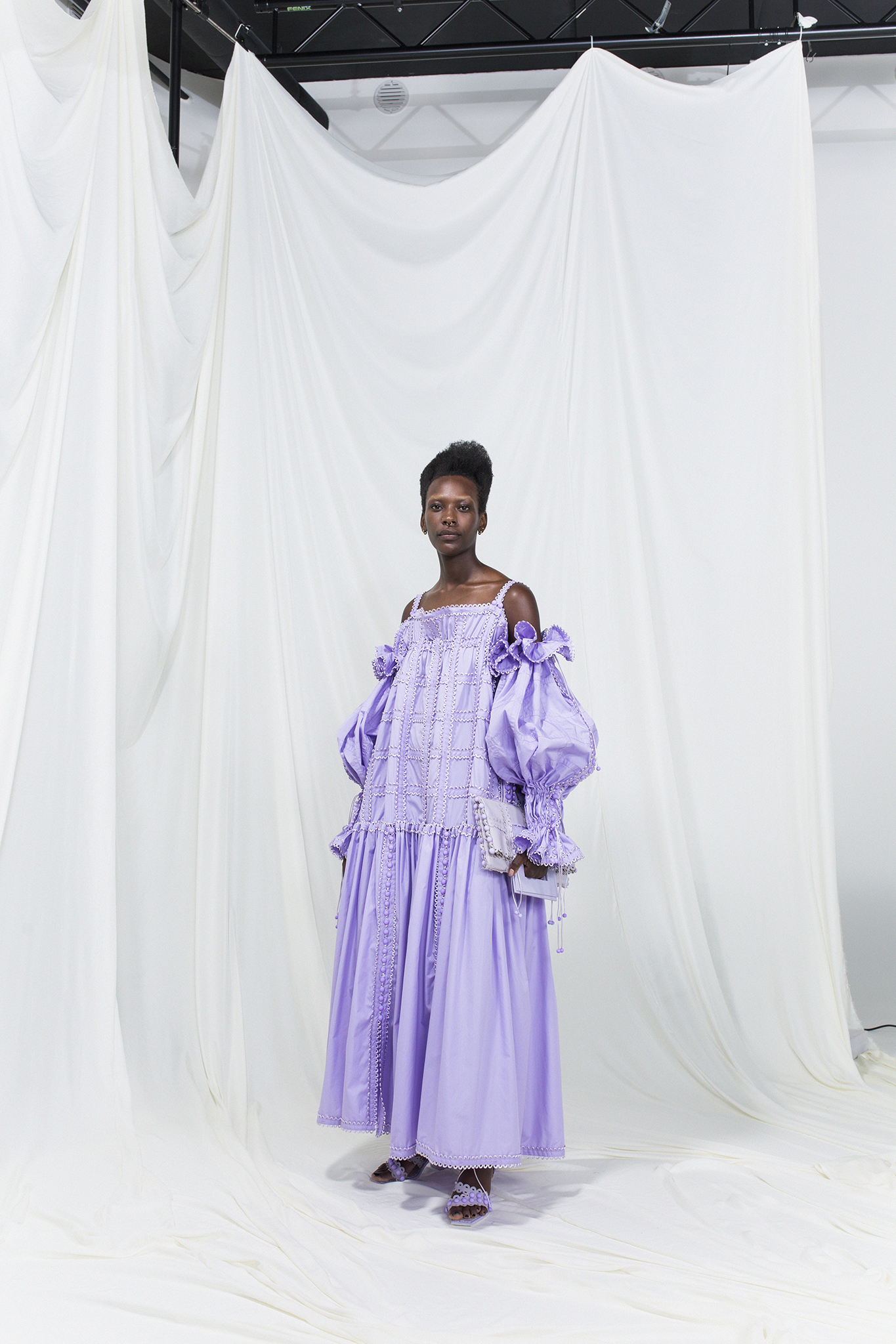 該系列的服裝採用相同尺寸的方形模塊創建,並通過鈕釦和扣環組裝在一起,無需縫合即可對款式進行無限的修改或轉換。