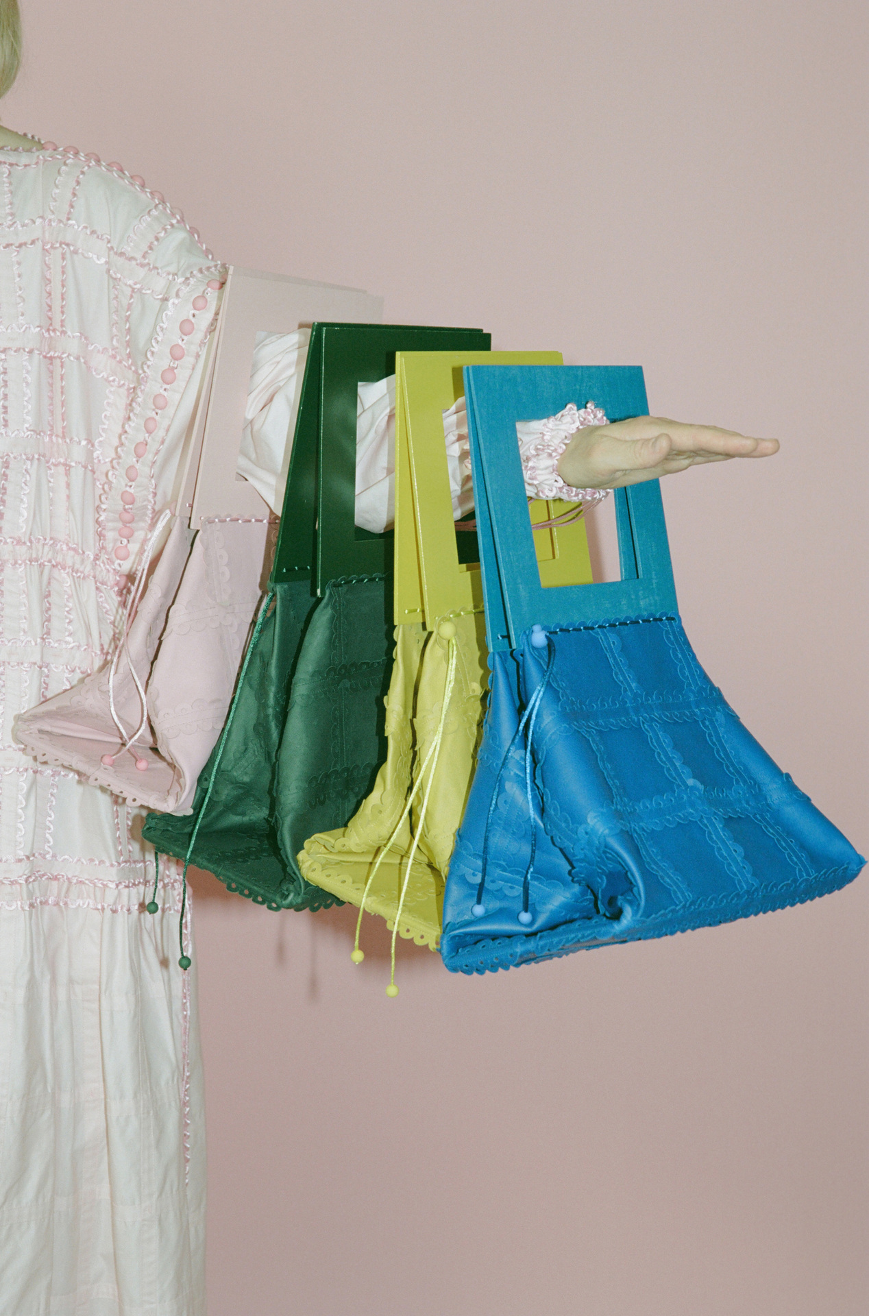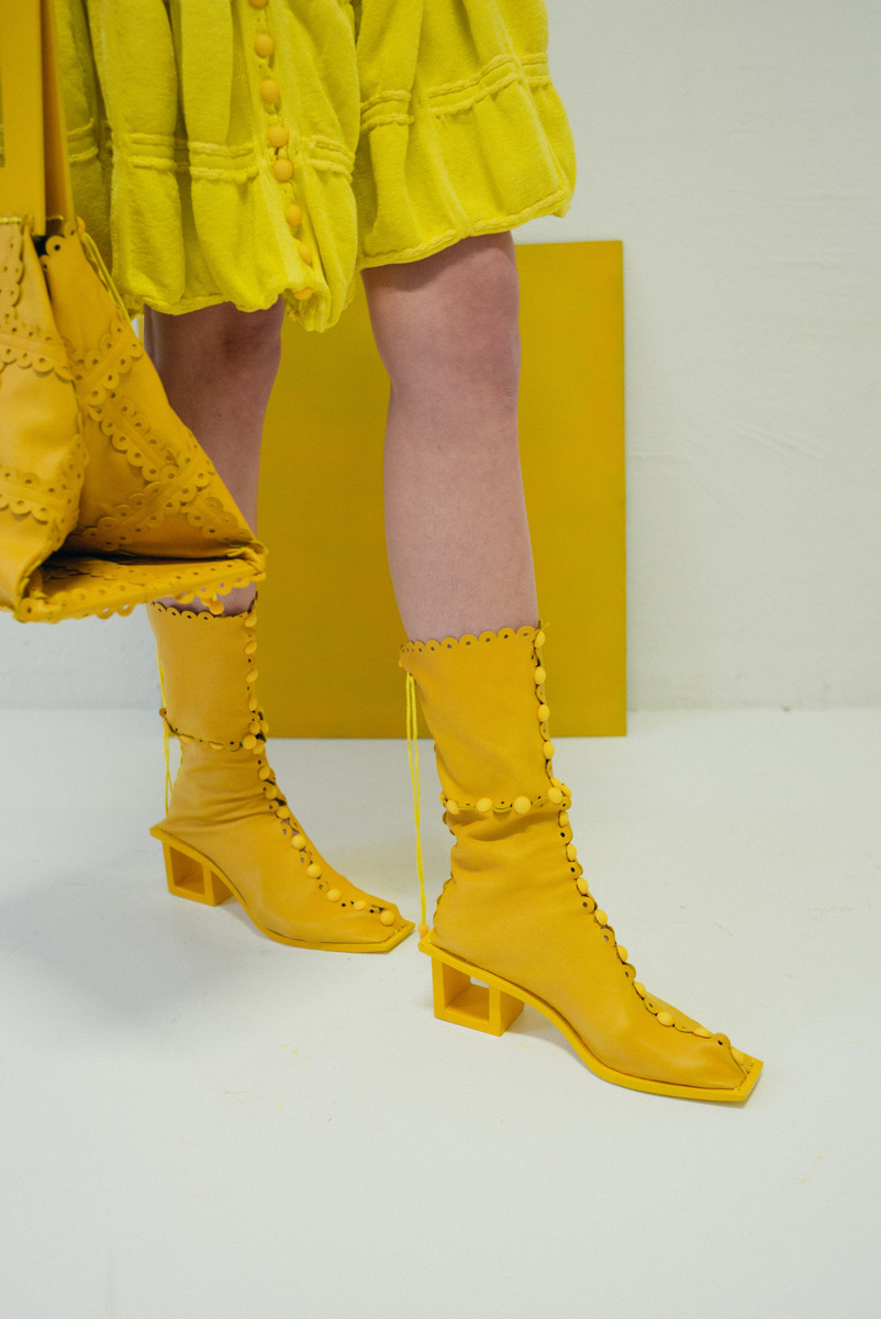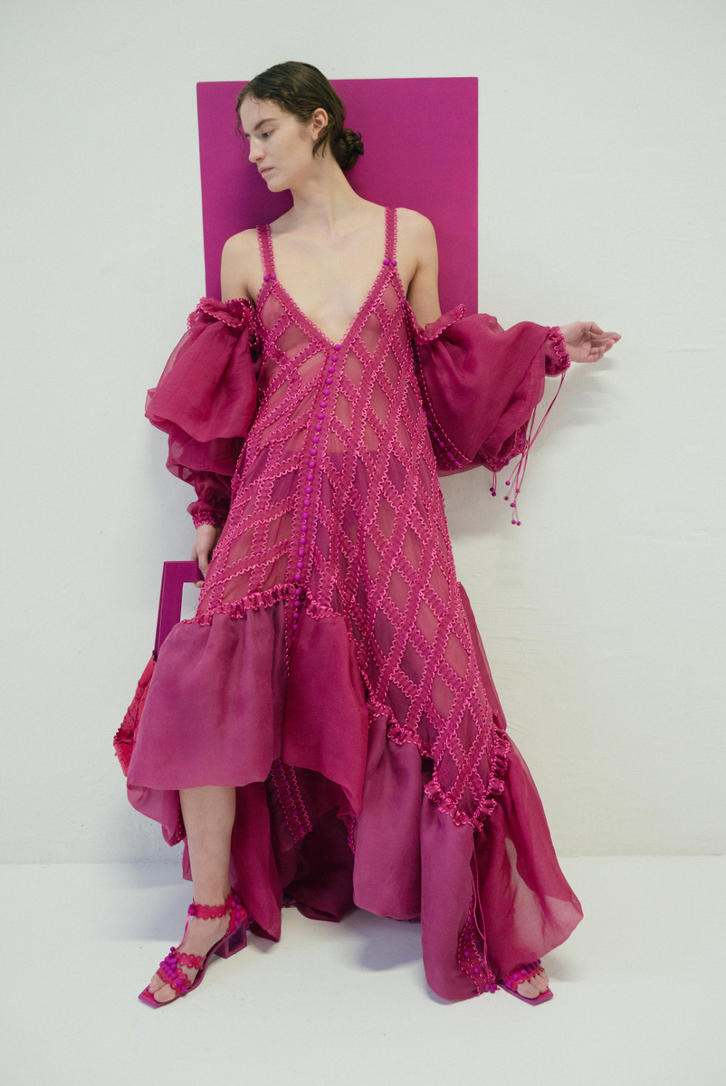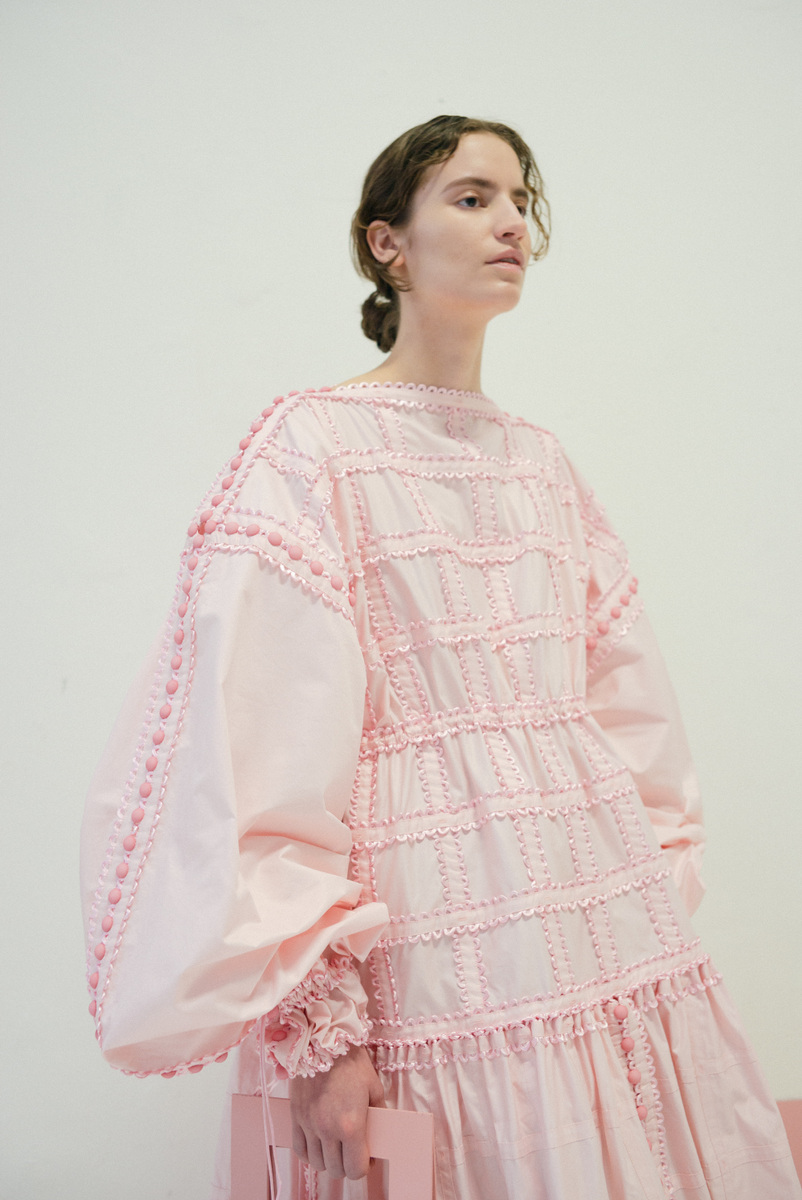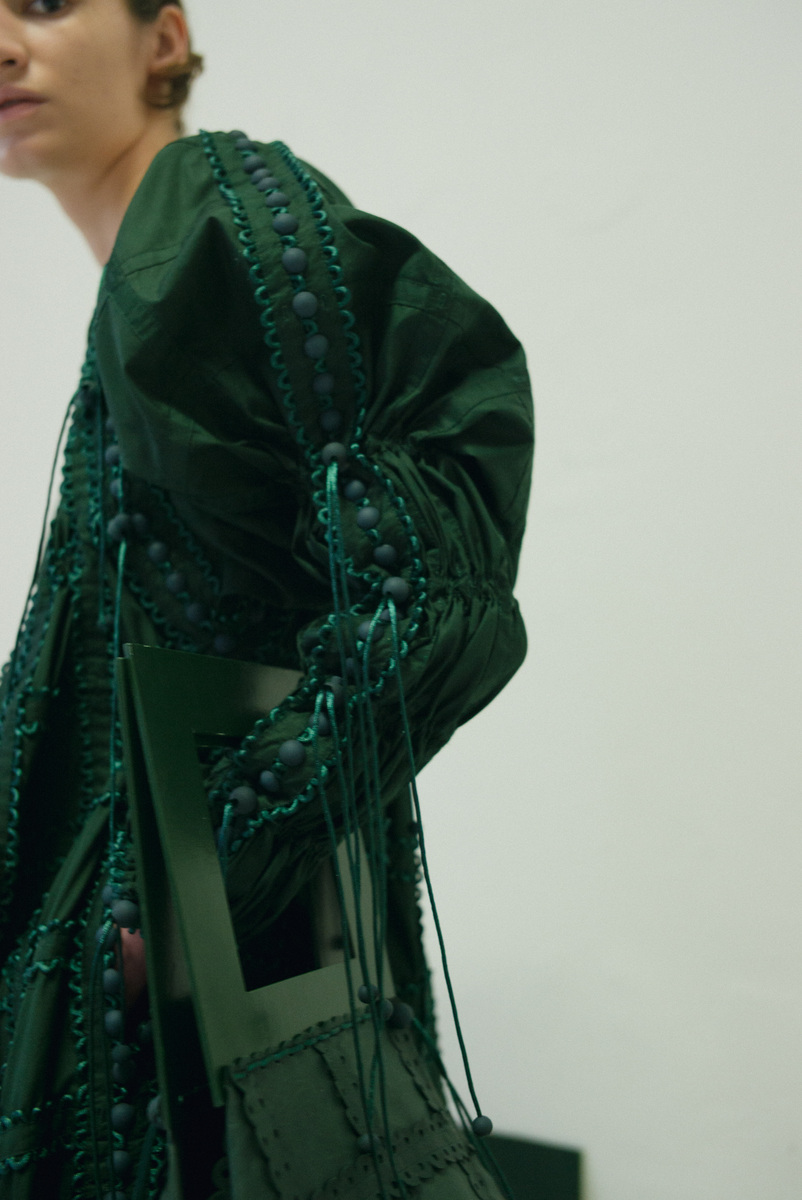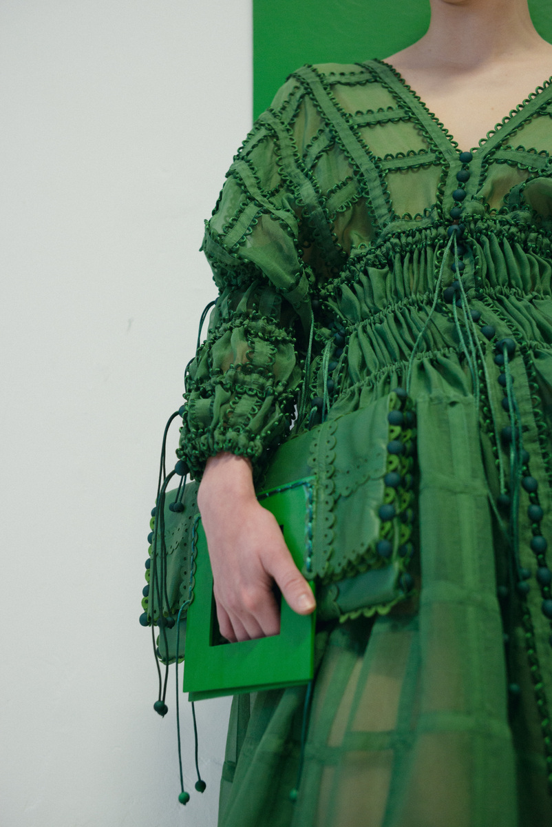 作品採用可再生面料,且以更環保的植物染料進行織物染色。