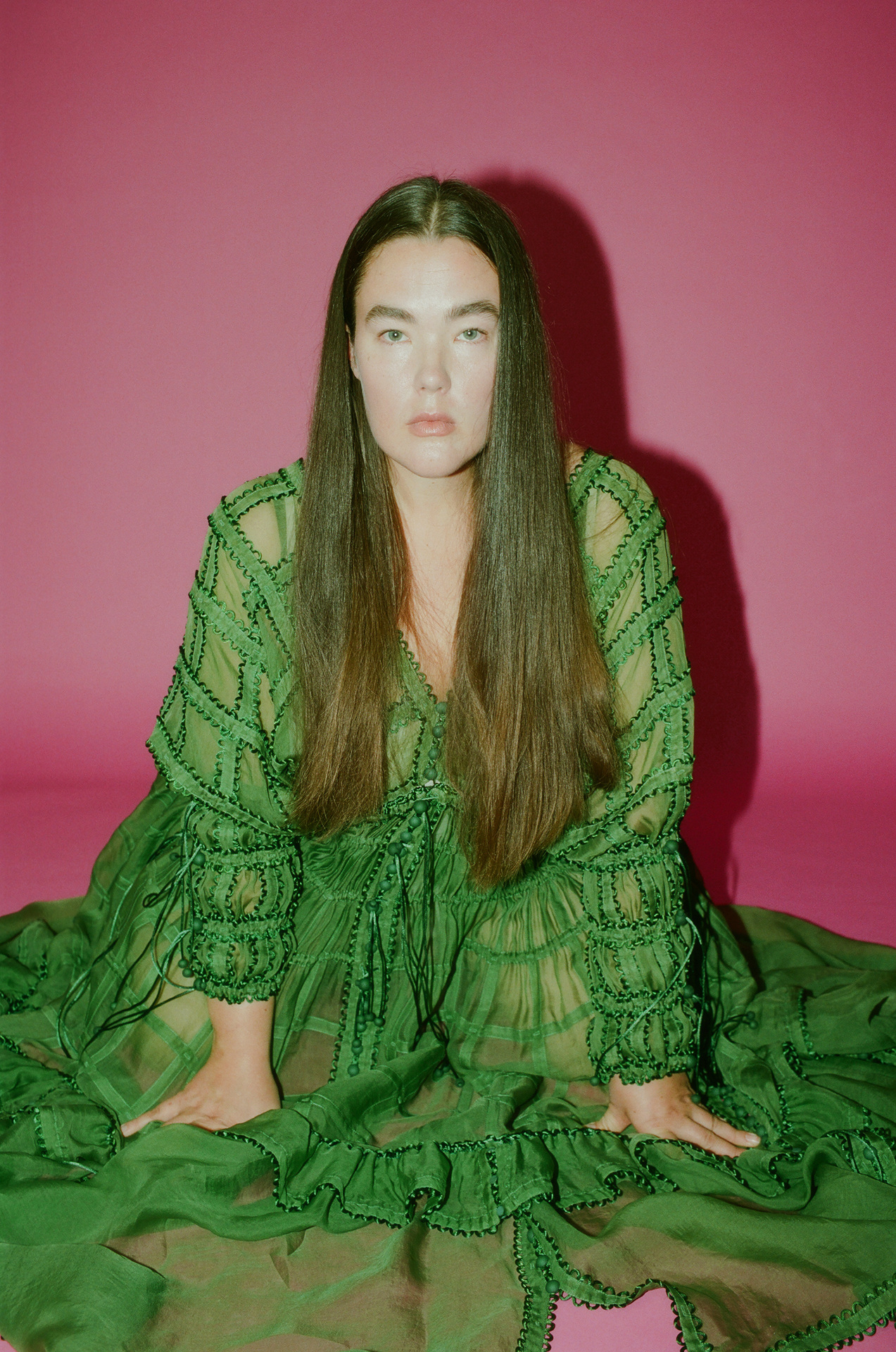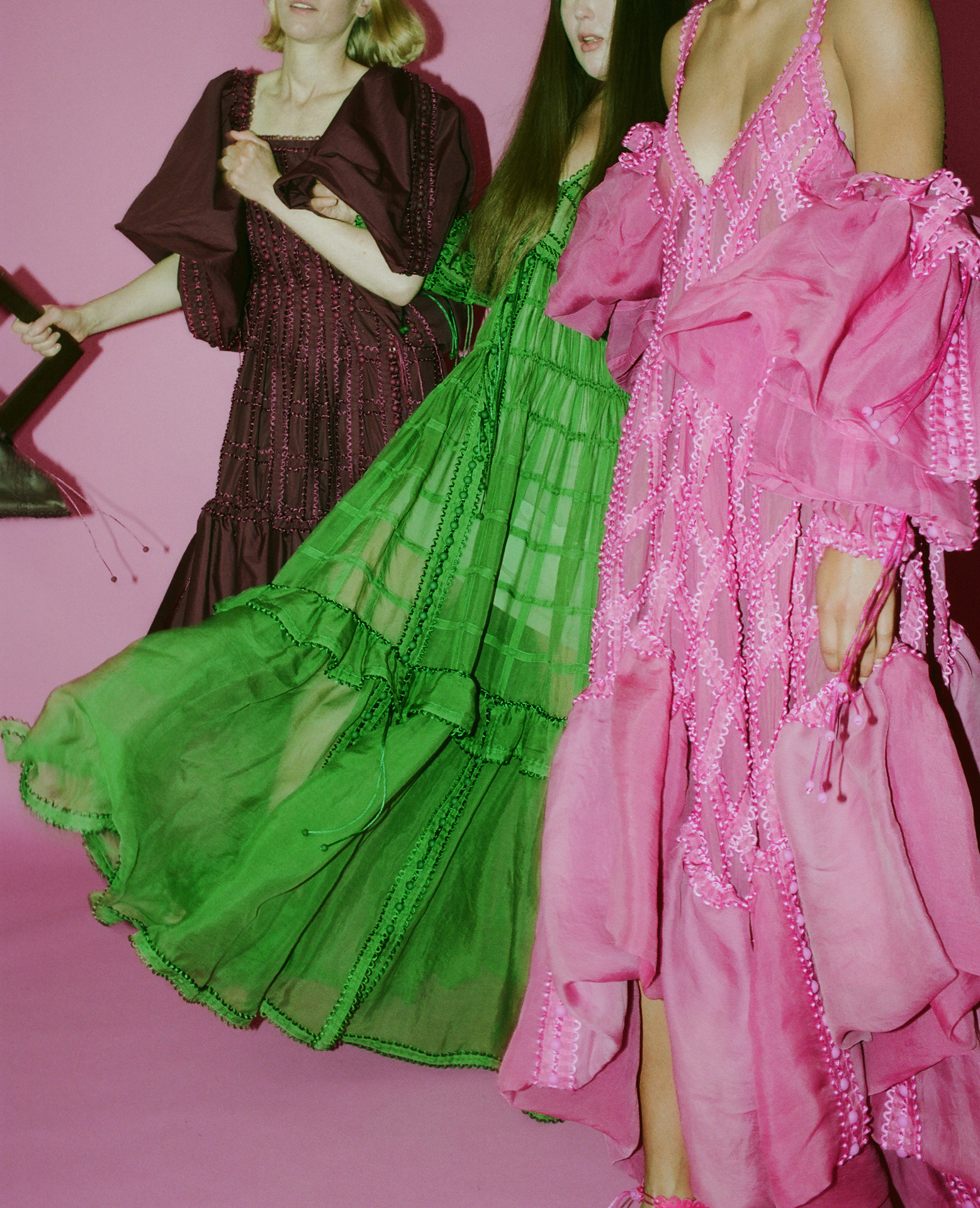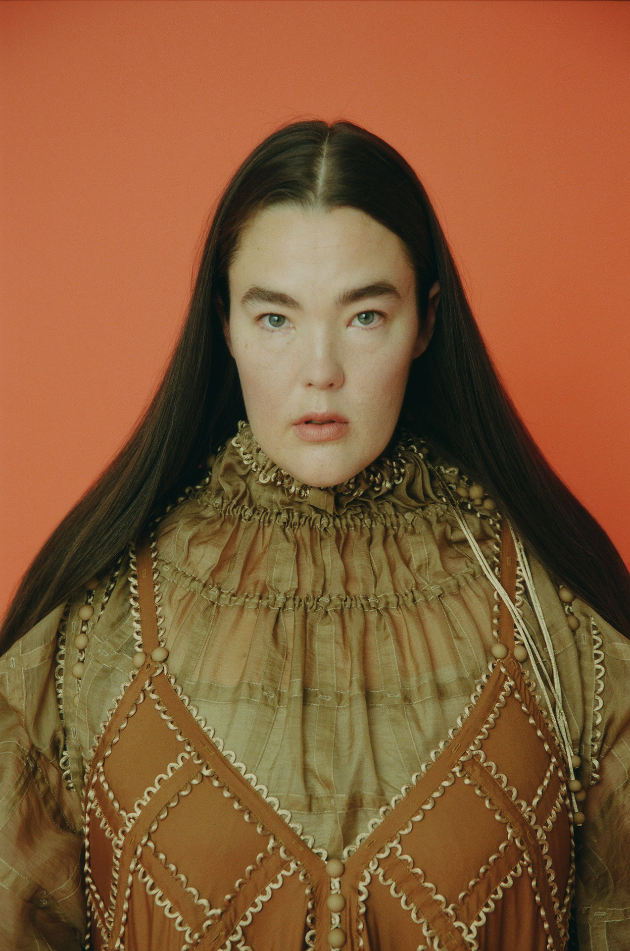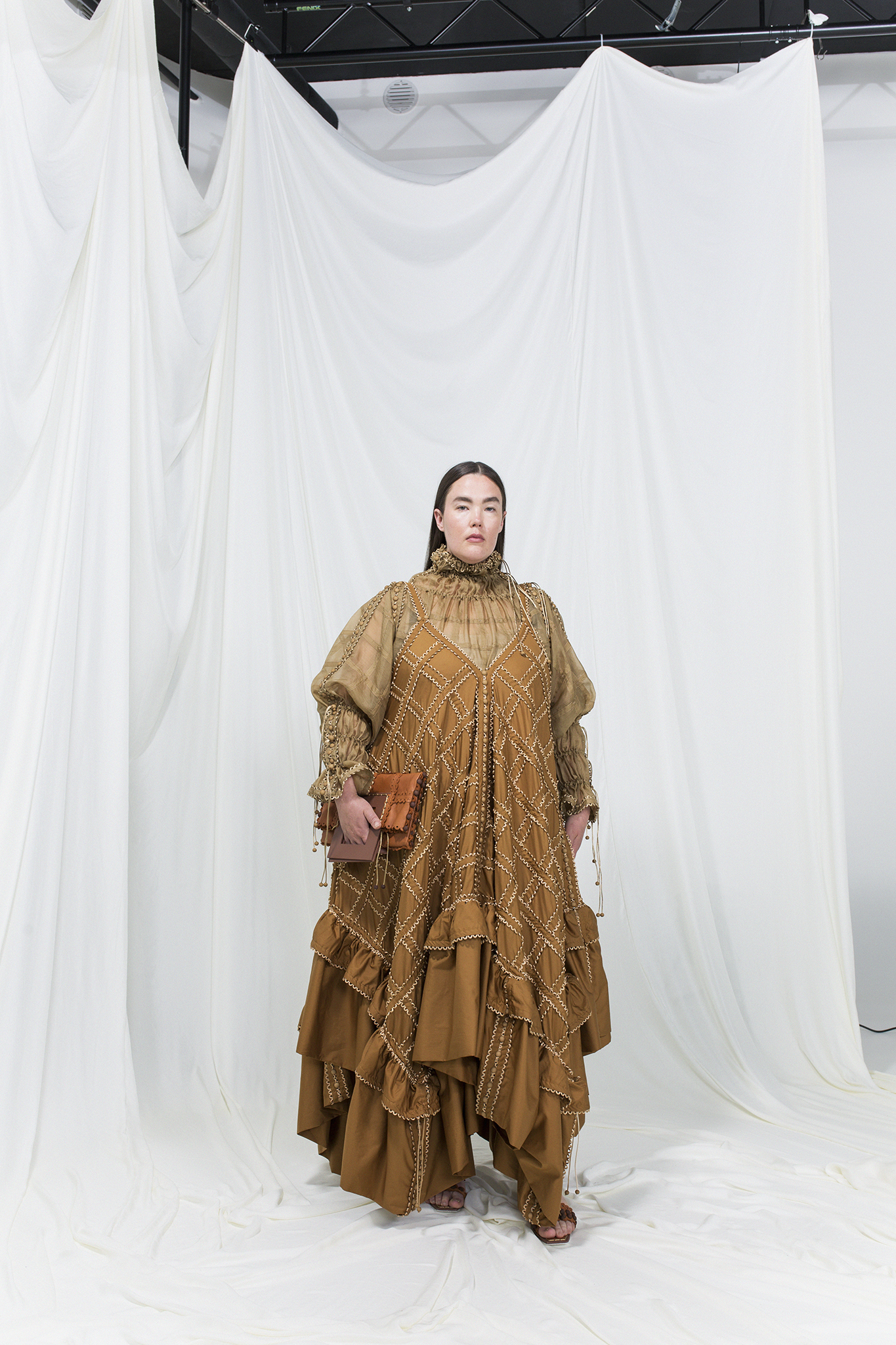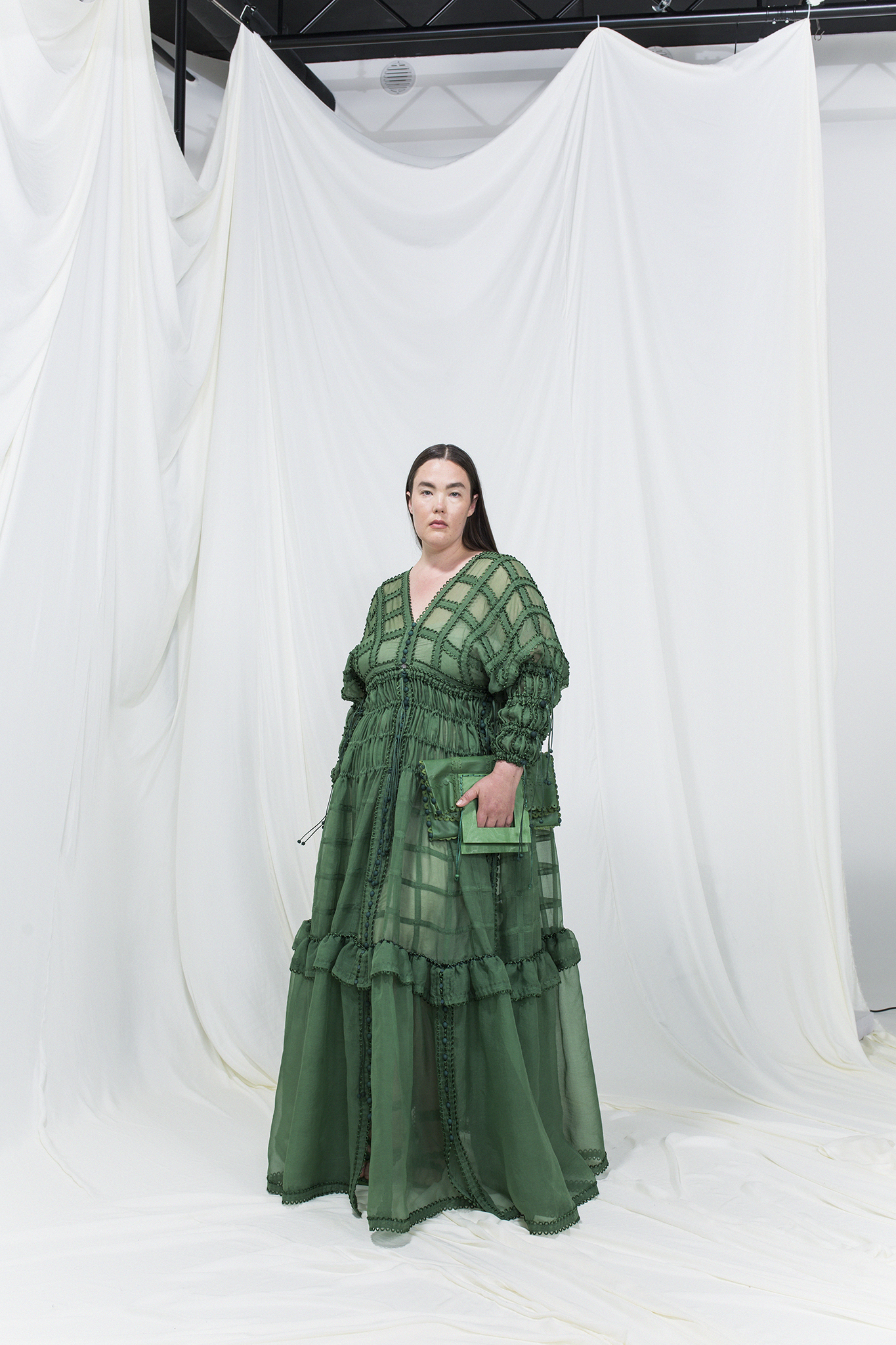 作品採用可再生面料,且以更環保的植物染料進行織物染色。