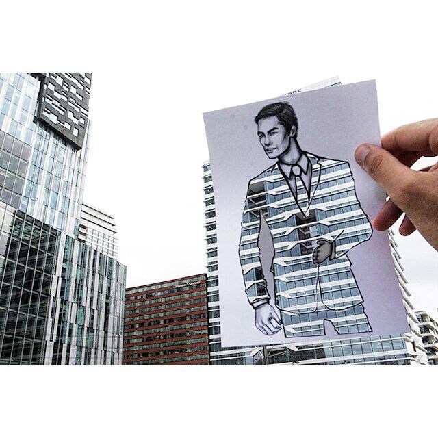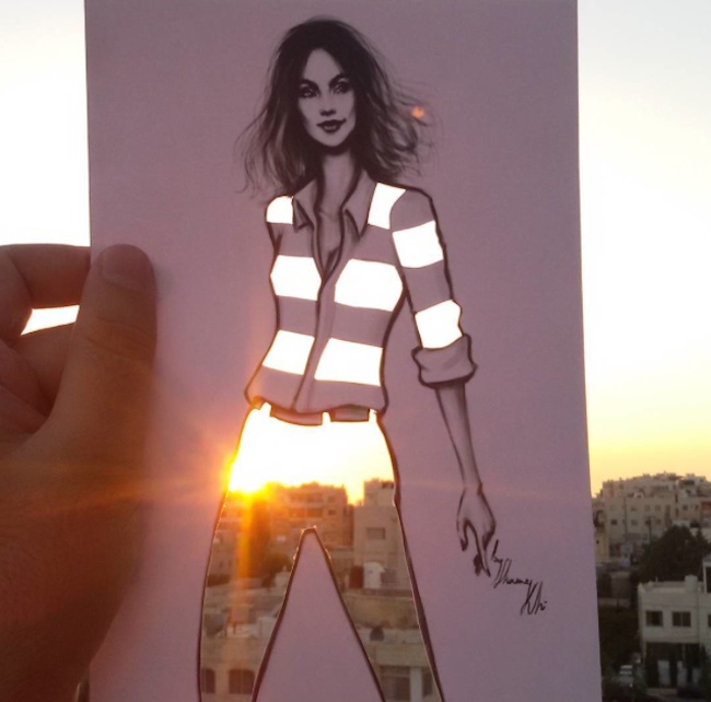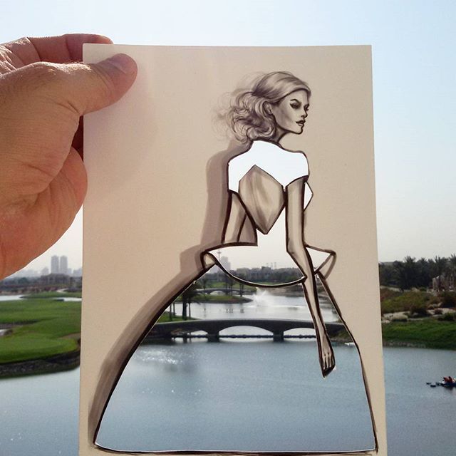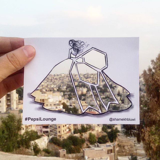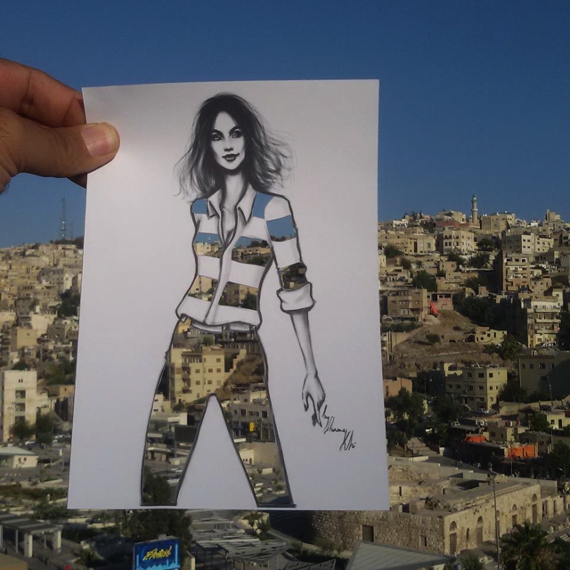 來自約旦的設計師 Shamekh Al-Bluwi,以特殊創意的方式,把他的時裝設計素描,結合不同風景,如城市、自然或建築,然後拍攝成一幅幅有趣而獨特的作品,也在網路上掀起一股仿效熱潮。 https://www.facebook.com/shamekhbluwi/