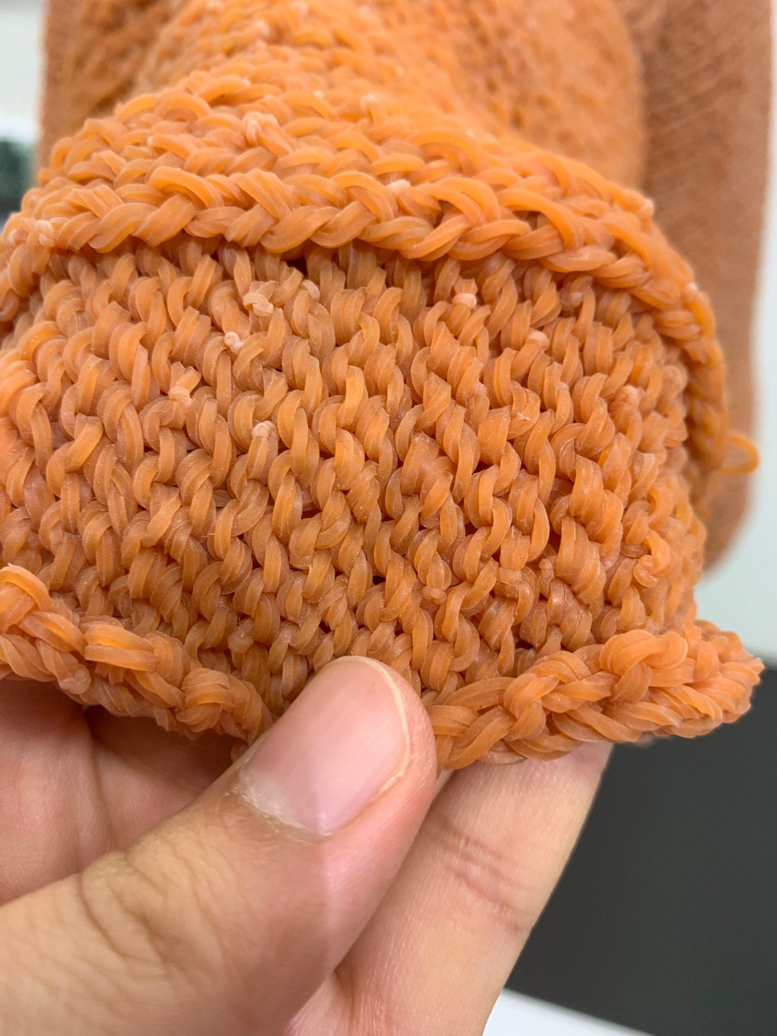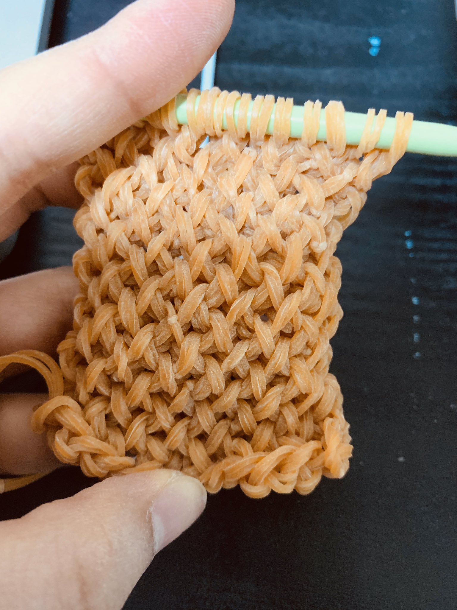 就讀多摩美術大學綜合設計系的坂本理惠,一直對於橡皮筋編織深感興趣,大學畢業製作以橡皮筋為創作元素,成品以藤編般的視覺效果和意外的舒適性讓人為之驚艷。 她表示,在普遍重視事物的功能和稀有性的社會裡,希望「探索其他人沒注意到的屬性,並將之發展成藝術」,因此選用橡皮筋當作設計服裝的材料。 圖片來源/Twitter@sakamoto_entame