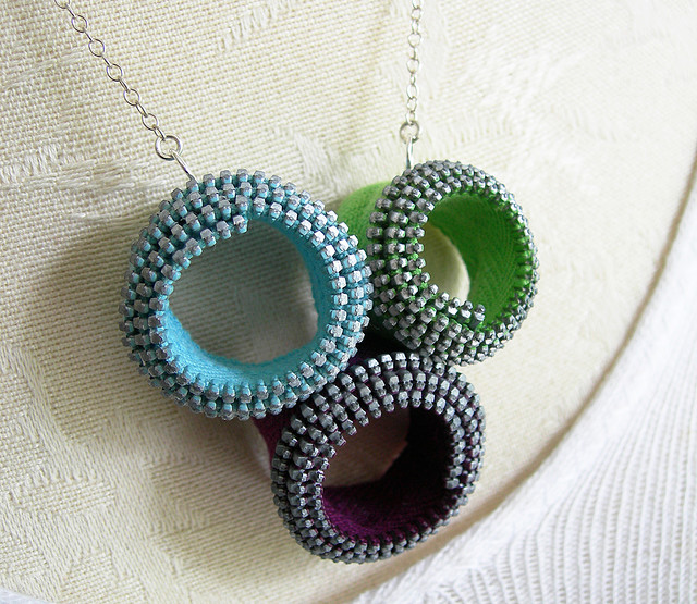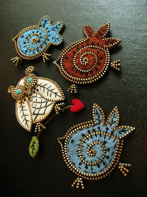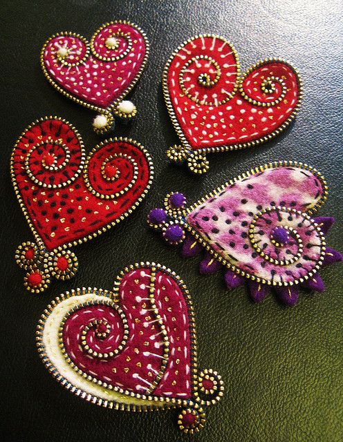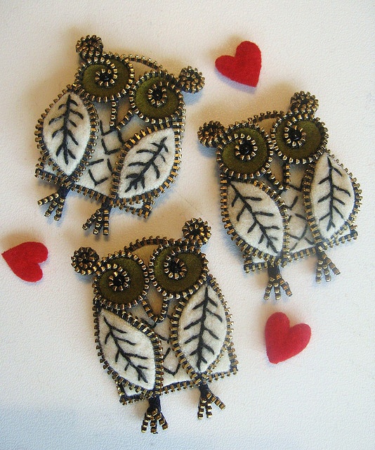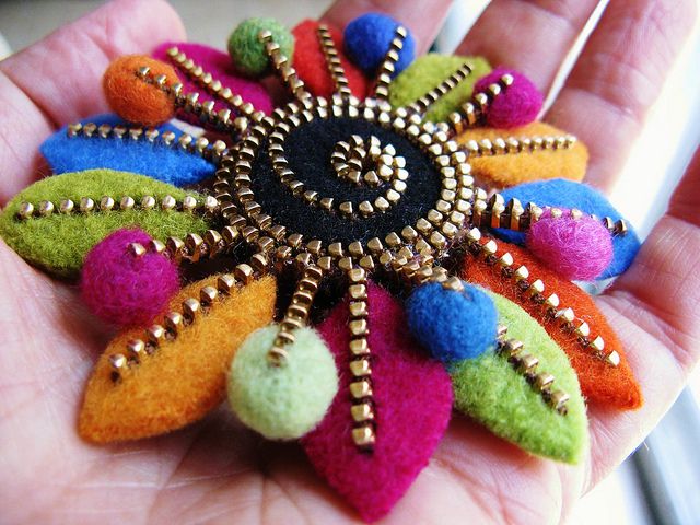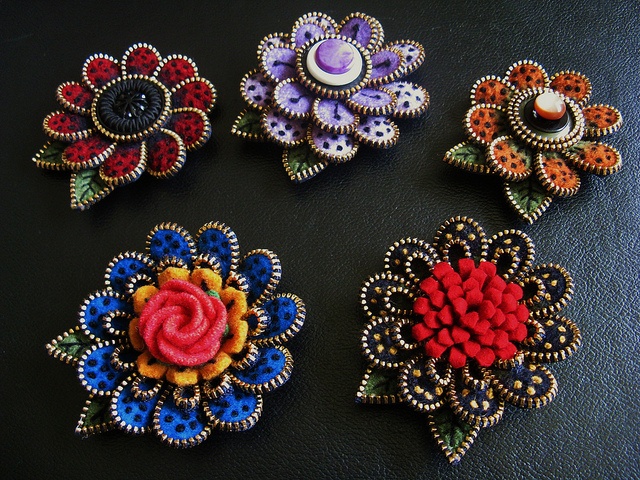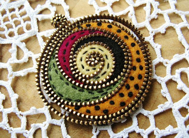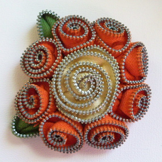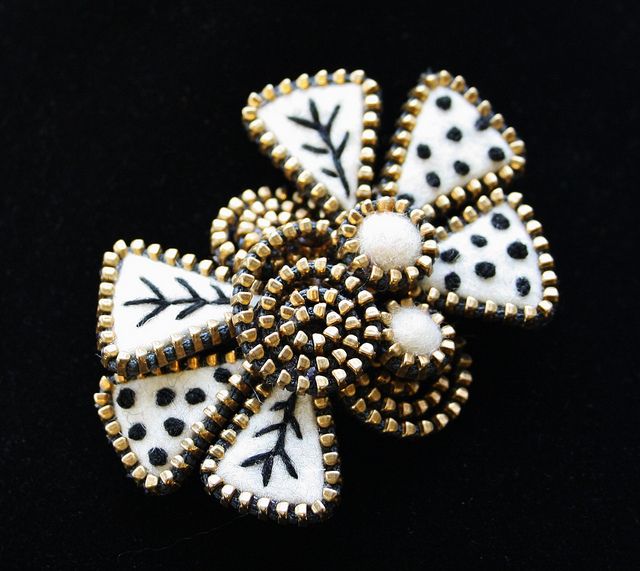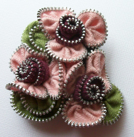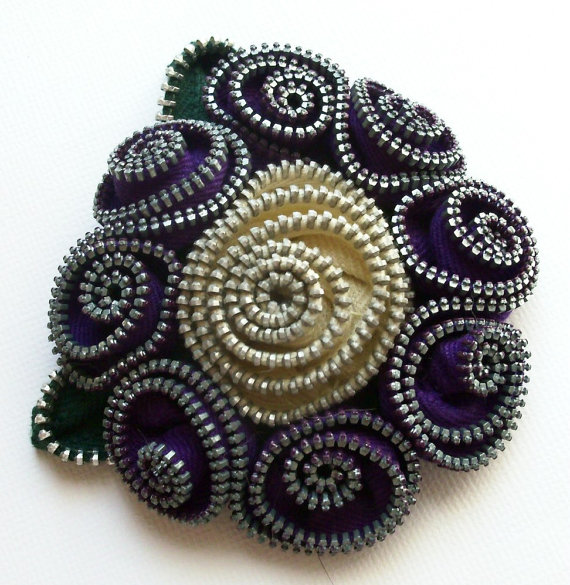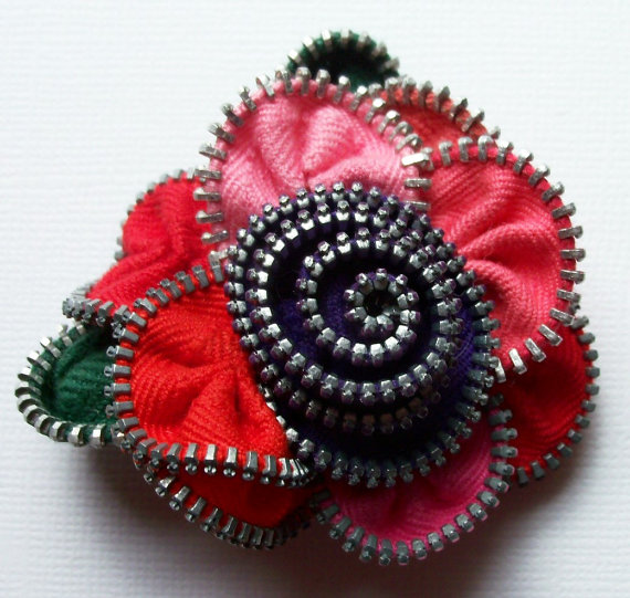 原來拉鍊不只是上下開關的功能 經過設計的回收和重新利用!復古拉鍊被轉化為美麗的作品。 http://www.etsy.com/shop/ZipPinning?ref=l2-shopheader-name