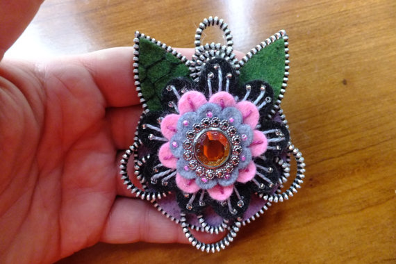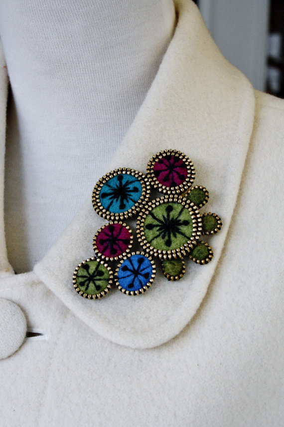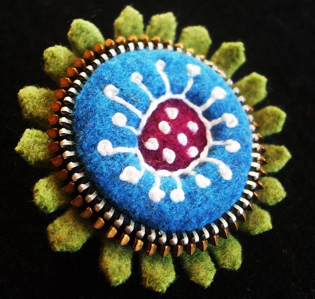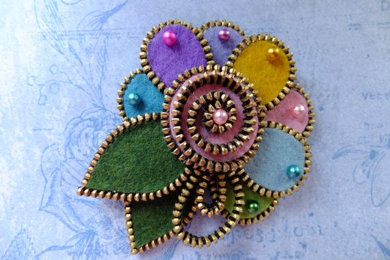 Flower Felt Zipper Brooch by MsLolaCreates 4