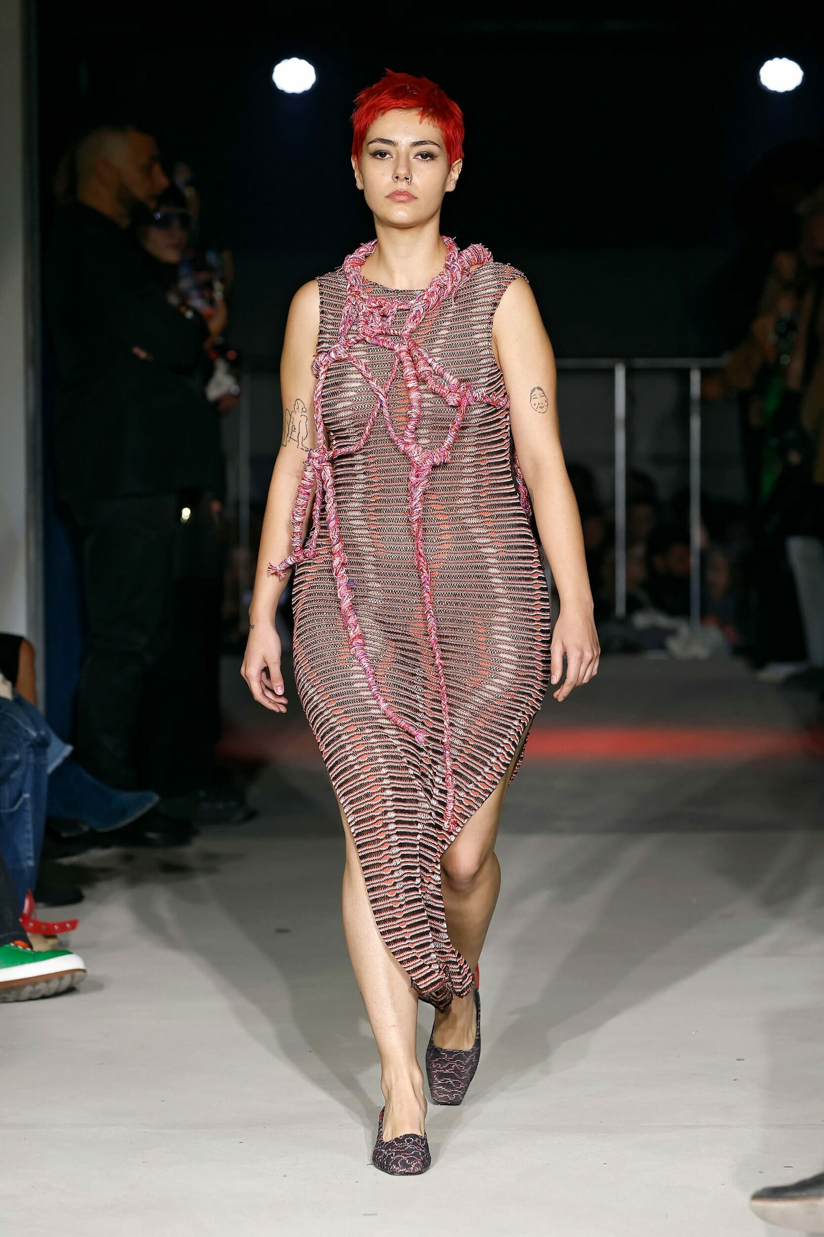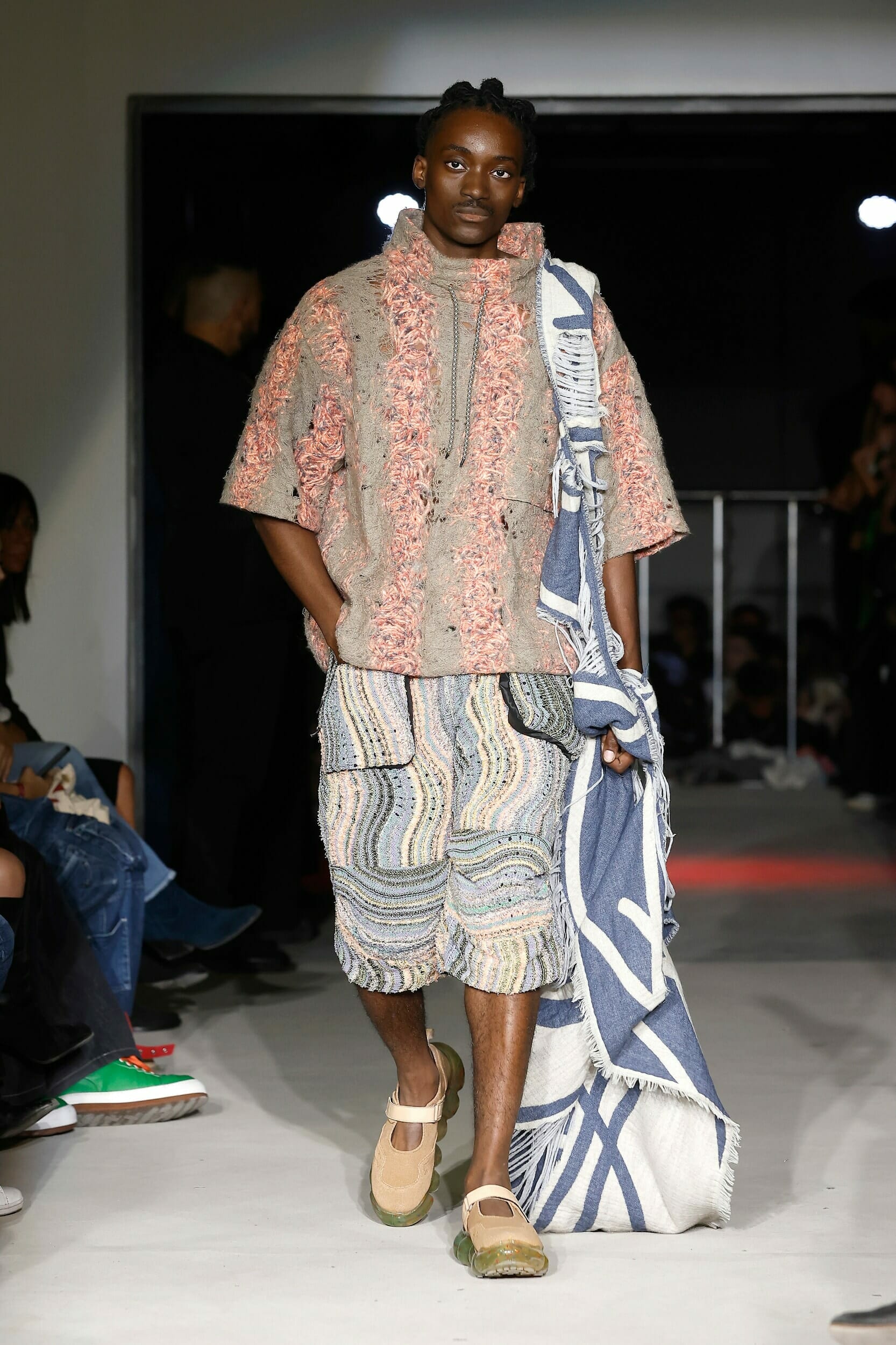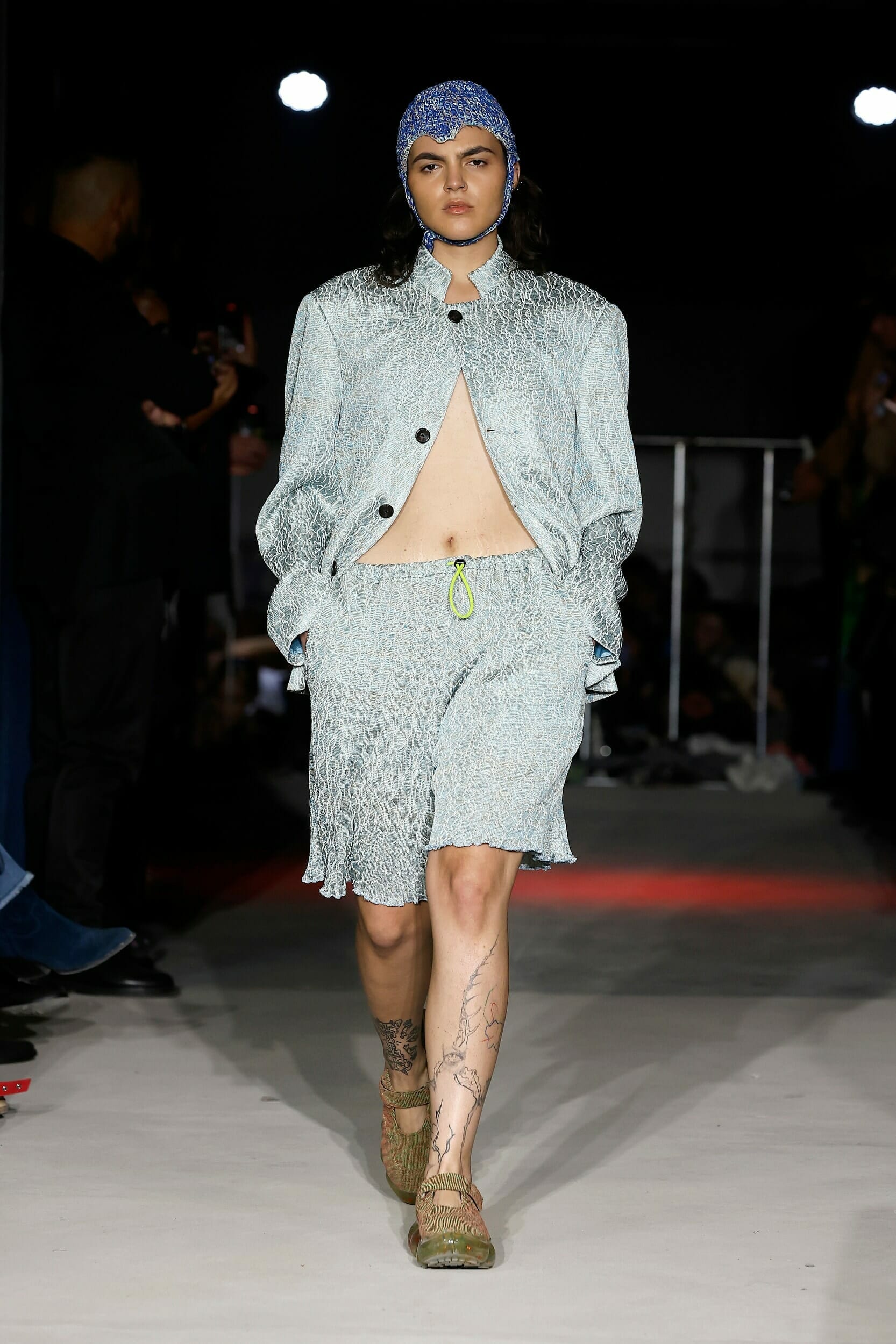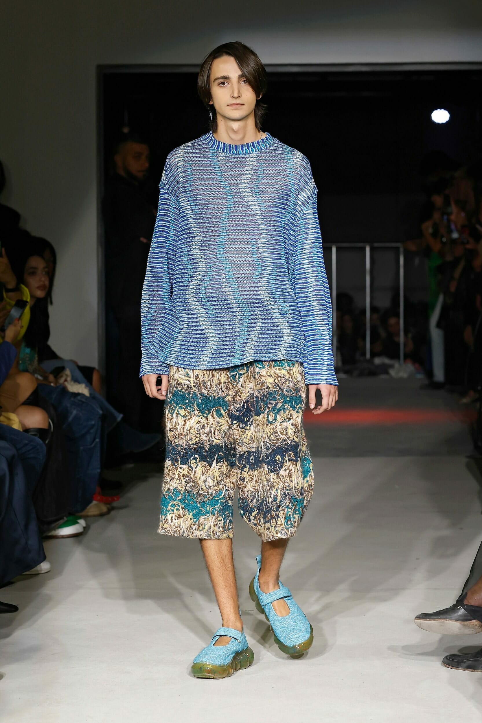 Vitelli是一個以創新和藝術著稱的無性別品牌,由Mauro Simionato攜手針織設計師Giulia Bortoli創立于2016的義大利本土品牌,始終貫徹零浪費生產的環保理念。 本季設計團隊收集廢棄的織物和紗線收集,升級再製成可利用的面料,並使用獨創的針法將多種面料拼接縫製。 Vitelli 2023 SS #傳遞知識的副料大學