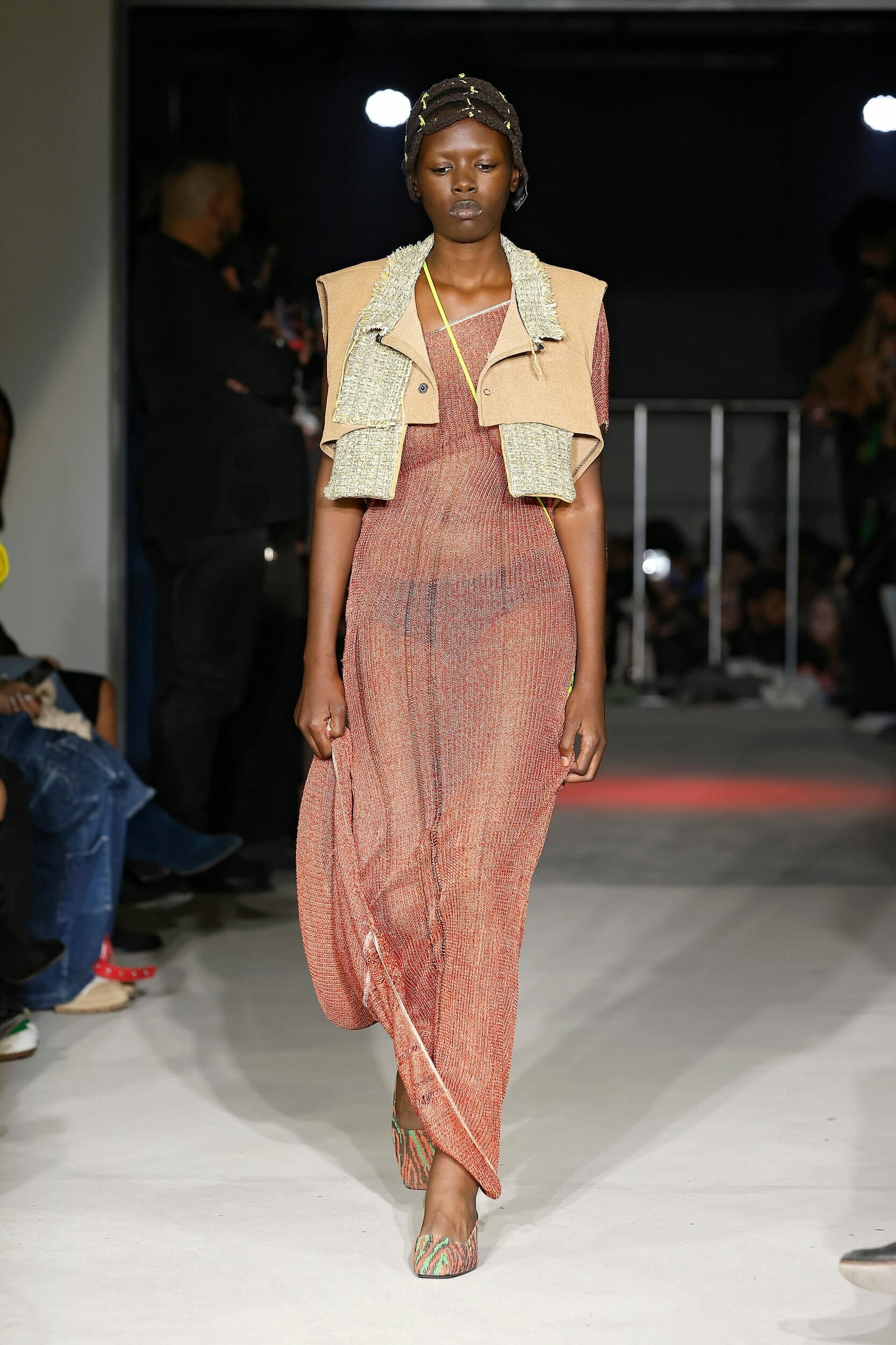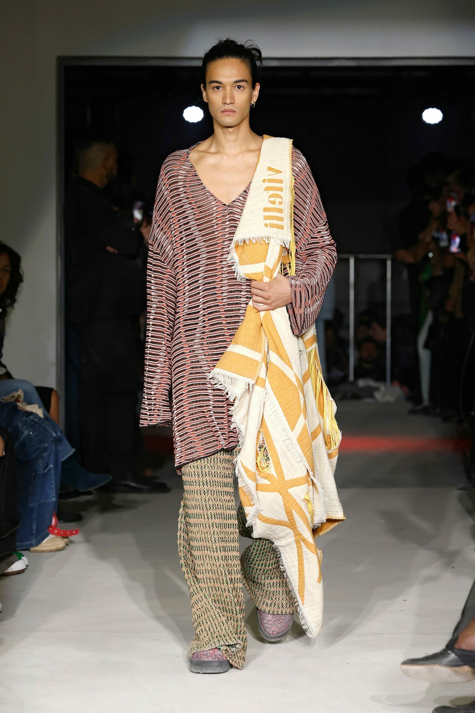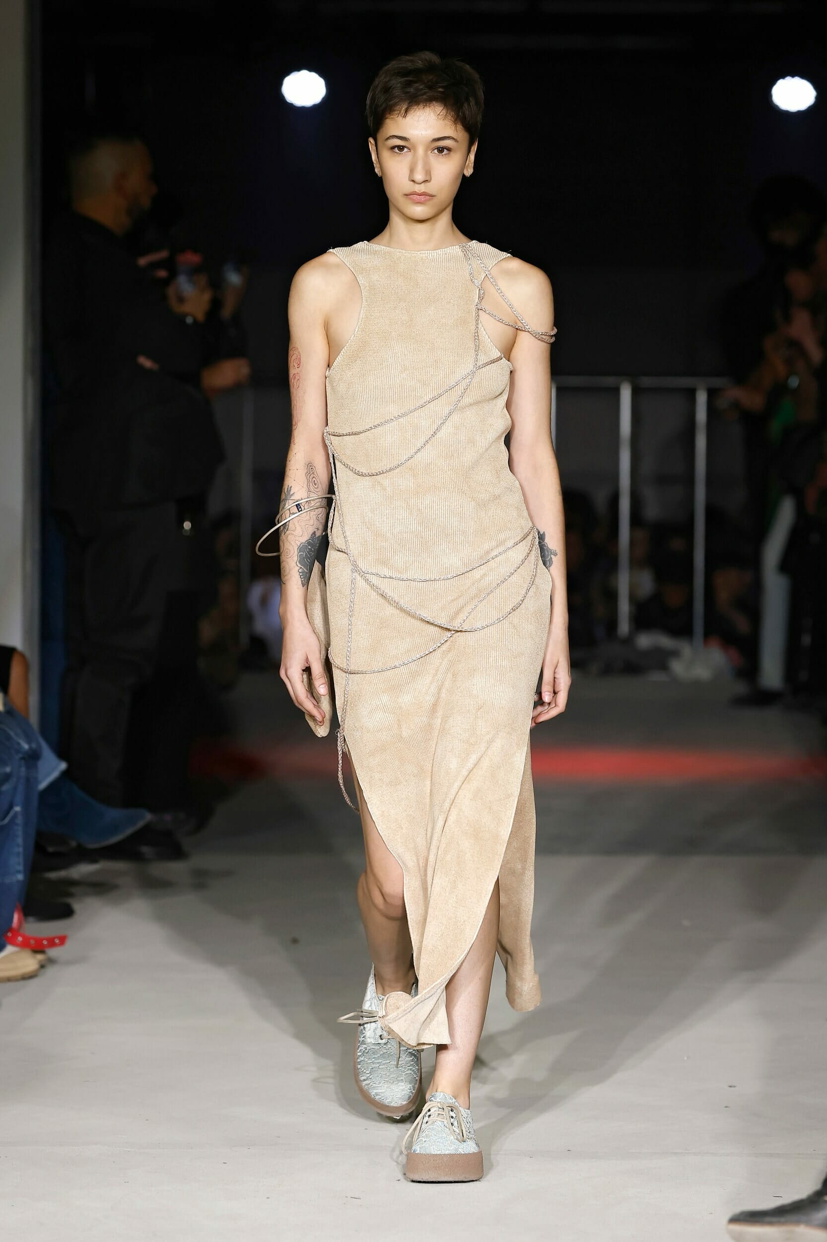 Vitelli是一個以創新和藝術著稱的無性別品牌,由Mauro Simionato攜手針織設計師Giulia Bortoli創立于2016的義大利本土品牌,始終貫徹零浪費生產的環保理念。 本季設計團隊收集廢棄的織物和紗線收集,升級再製成可利用的面料,並使用獨創的針法將多種面料拼接縫製。 Vitelli 2023 SS #傳遞知識的副料大學