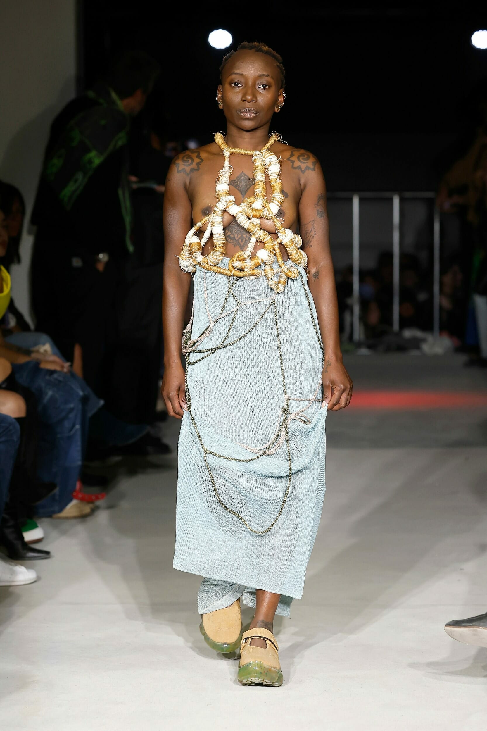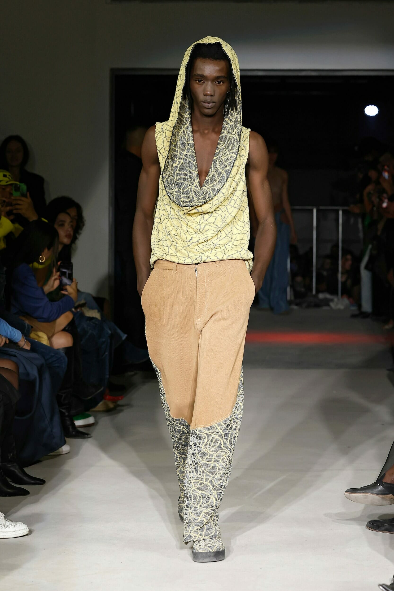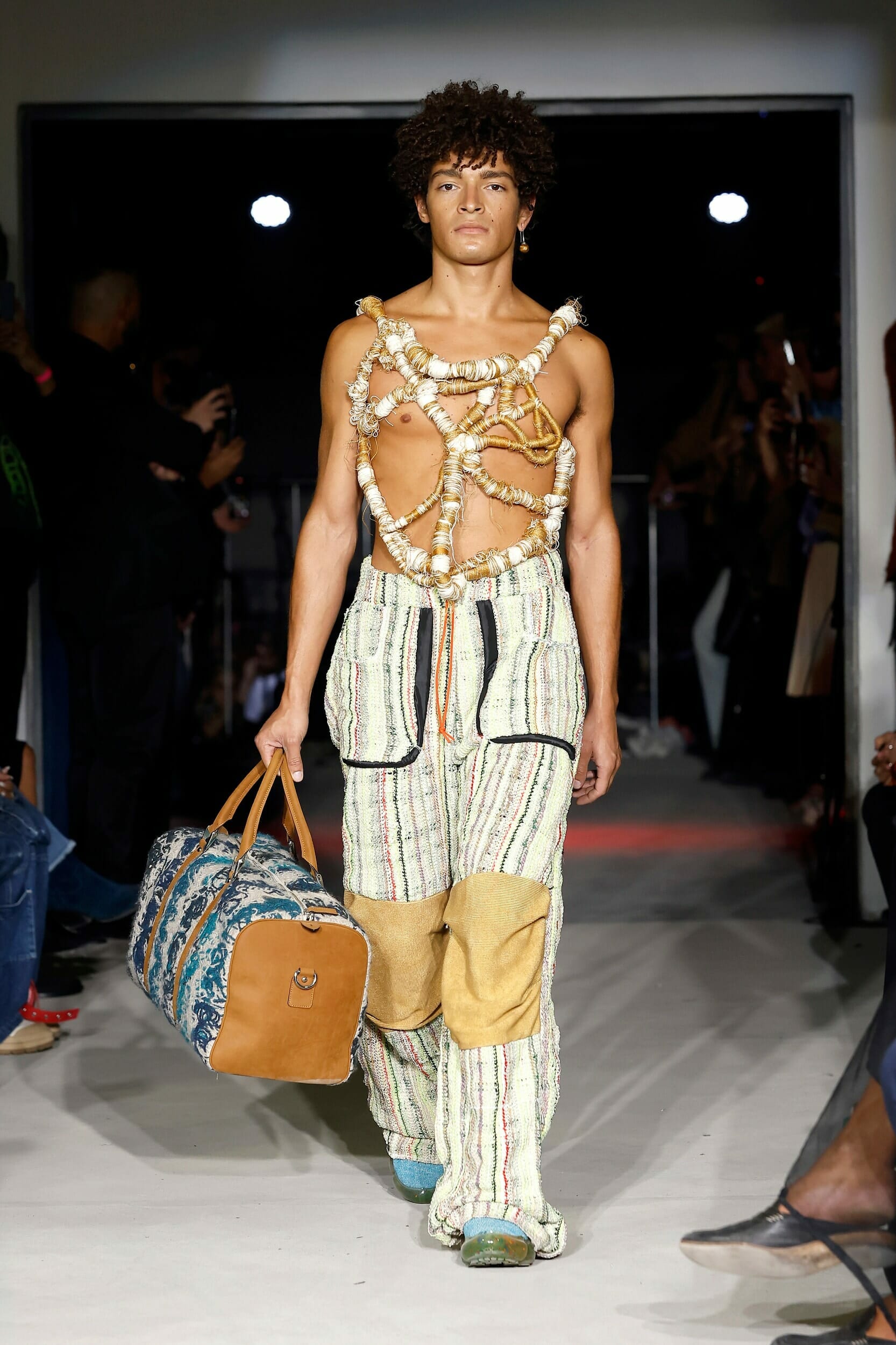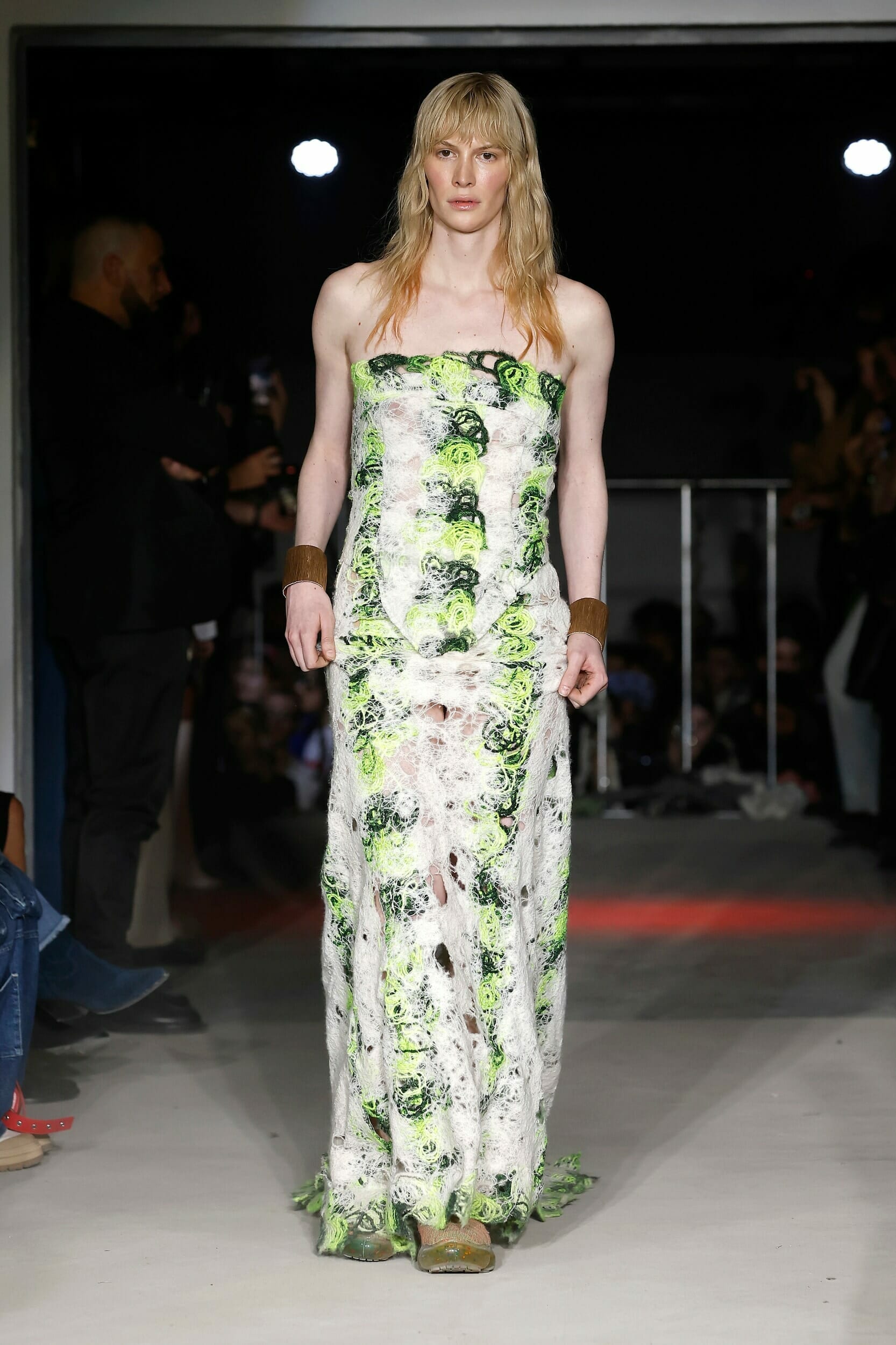 Vitelli是一個以創新和藝術著稱的無性別品牌,由Mauro Simionato攜手針織設計師Giulia Bortoli創立于2016的義大利本土品牌,始終貫徹零浪費生產的環保理念。 本季設計團隊收集廢棄的織物和紗線收集,升級再製成可利用的面料,並使用獨創的針法將多種面料拼接縫製。 Vitelli 2023 SS #傳遞知識的副料大學